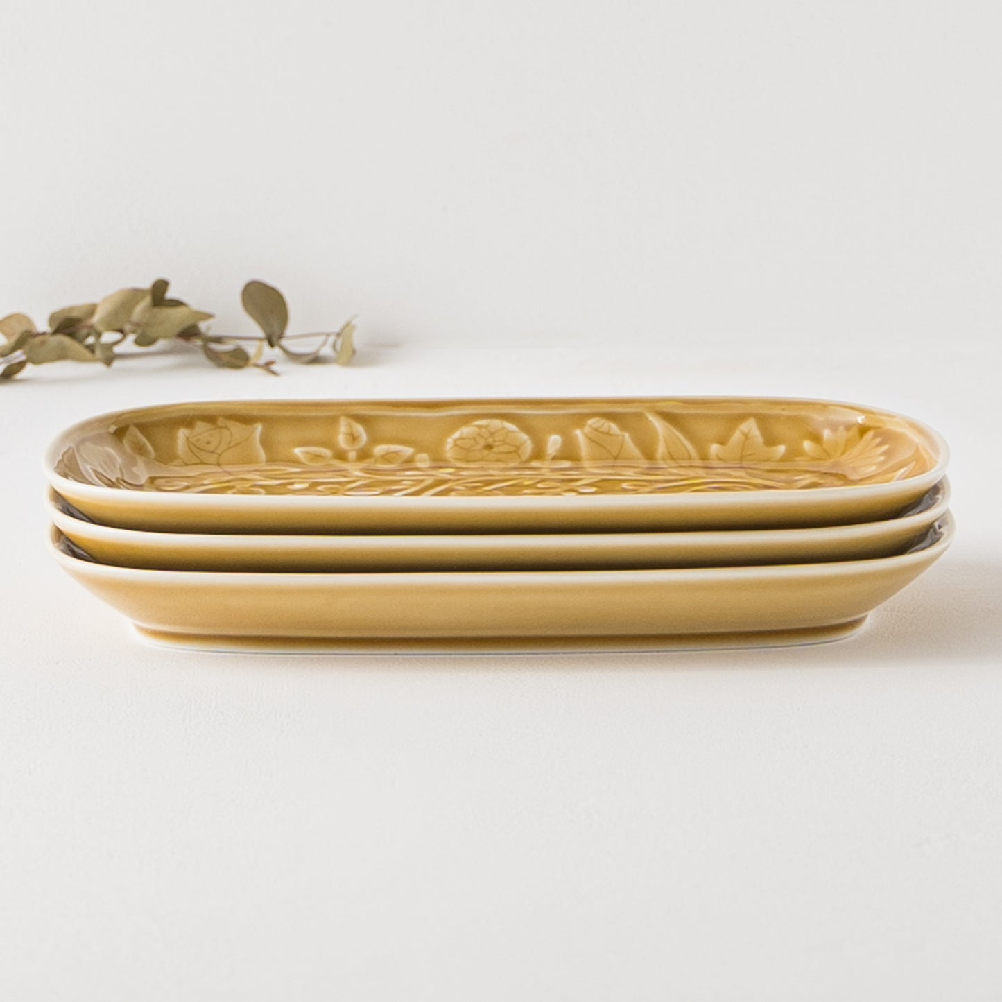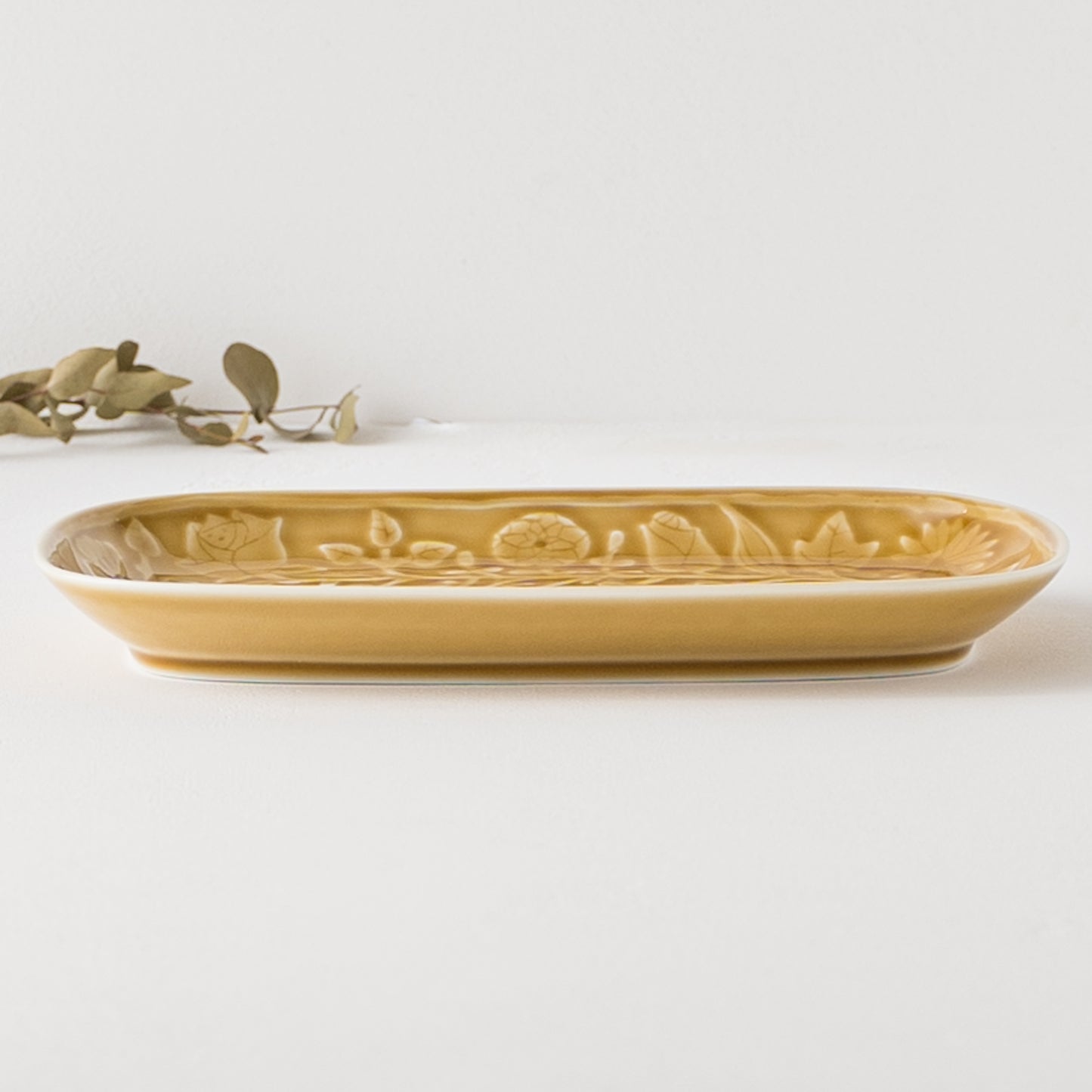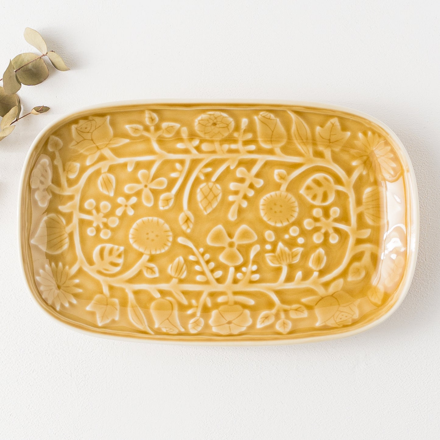 レリーフフラワーパレード 長角皿 キャメル|波佐見焼 和山 Hasamiyaki Wazan Square Plate