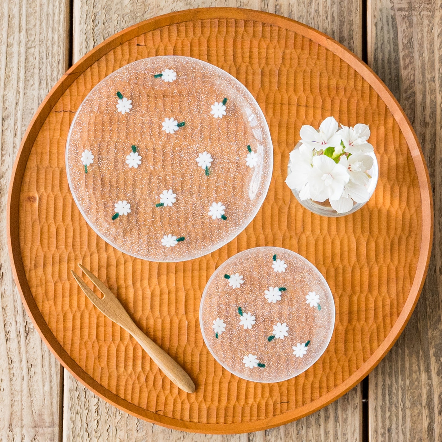 光によってさまざまな表情を見せてくれるガラスのお皿。ガラスの食器を置いてあるだけで温かみのある雰囲気に包まれ、やさしい空間を演出してくれます。