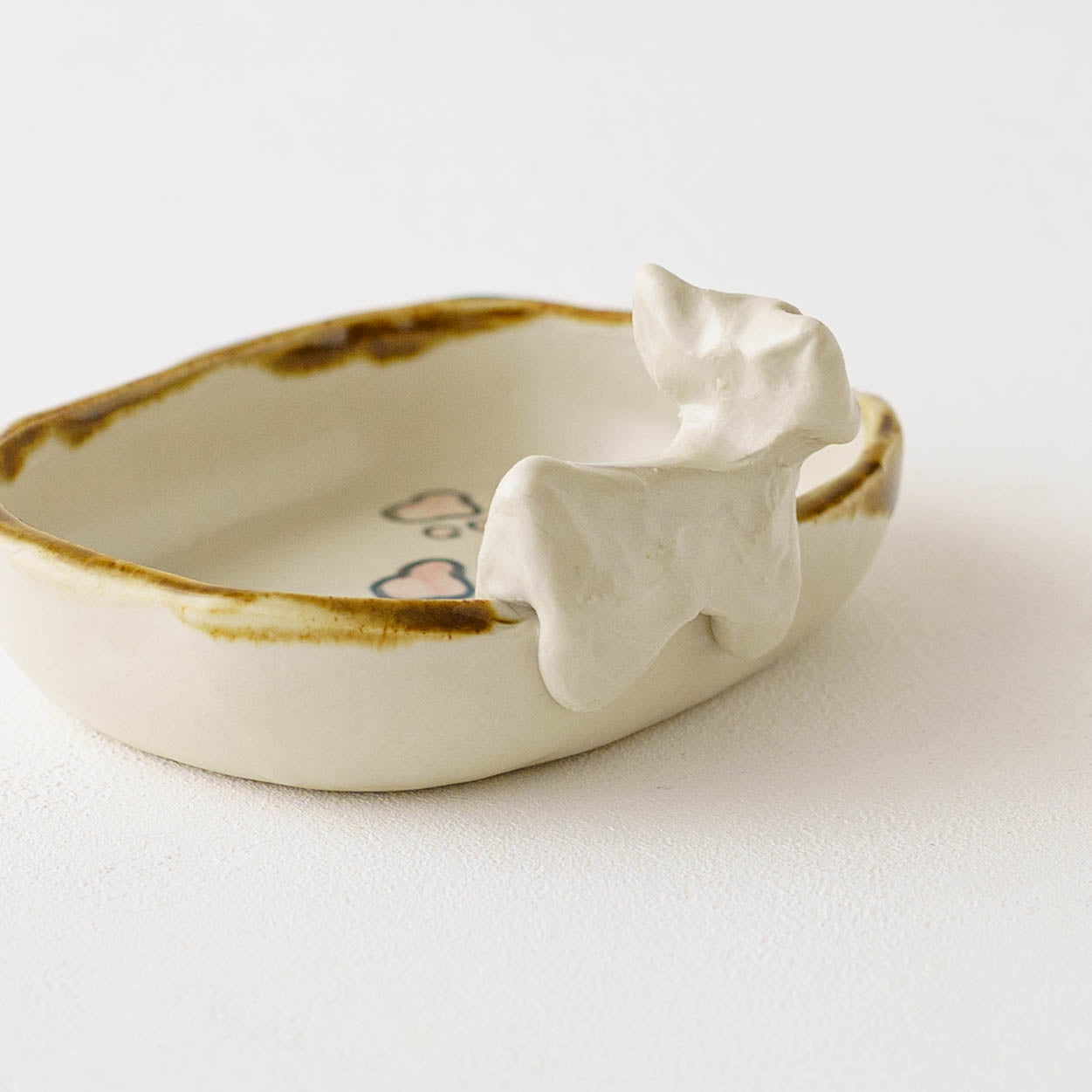 楽しげなかたちとつるりとしたやさしい手触りも魅力のひとつ。おやつ皿としてはもちろん、アクセサリーや小物を置いたり、デスクまわりのちょっとしたトレイとして使うのもおすすめです。使い方を決めすぎず、暮らしの中で自由に楽しめるところも、このうつわならではの楽しさ。今日何をのせようか考える時間さえ、ちょっとしたワクワクに変えてくれます。