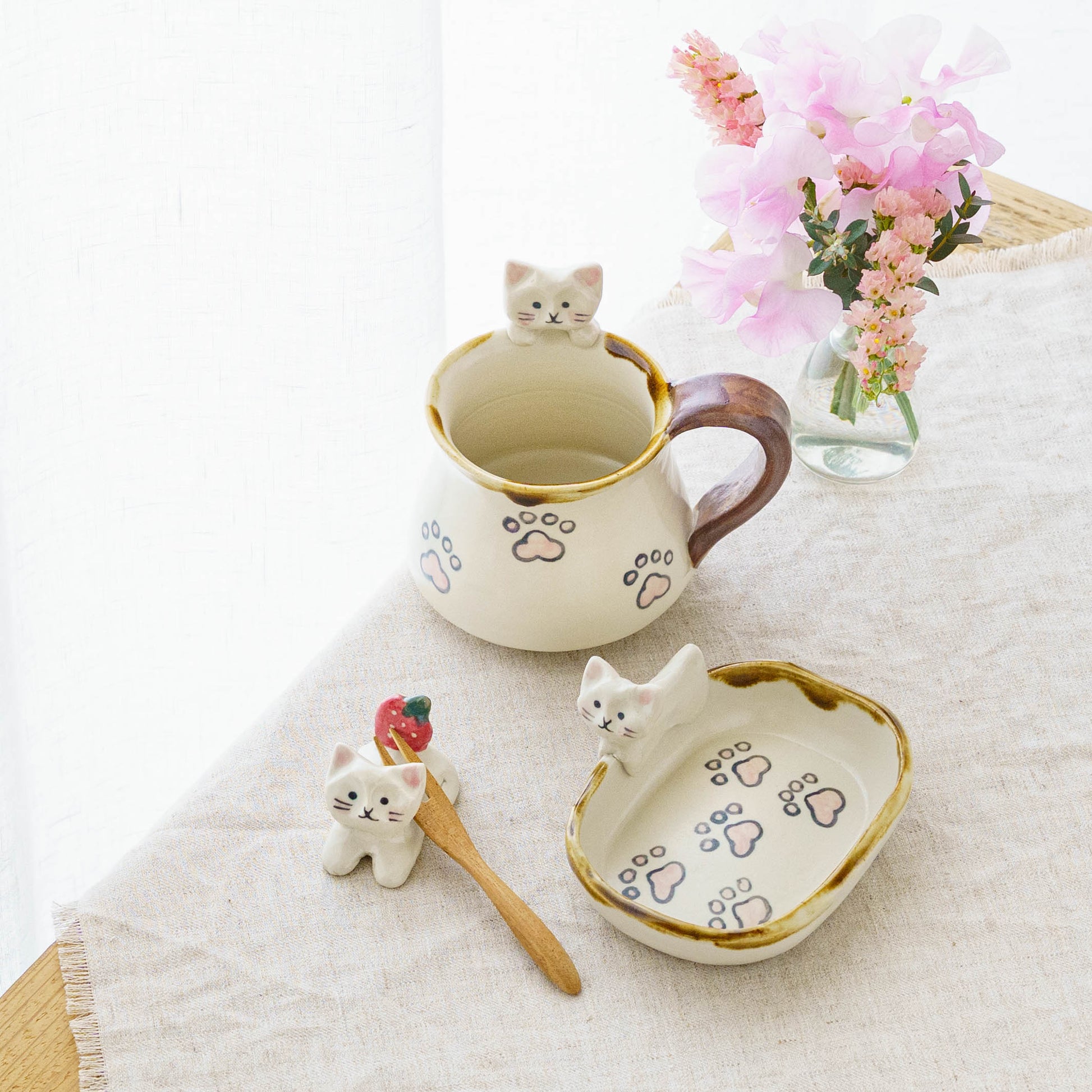 思わず「かわいい…!」と声が出てしまうほど愛らしいうつわは、眺めているだけでも、ふんわり甘いやさしい気持ちに包まれます。オリジナリティー豊かな存在感があり、食卓やお部屋をそっと明るくしてくれるうつわです。