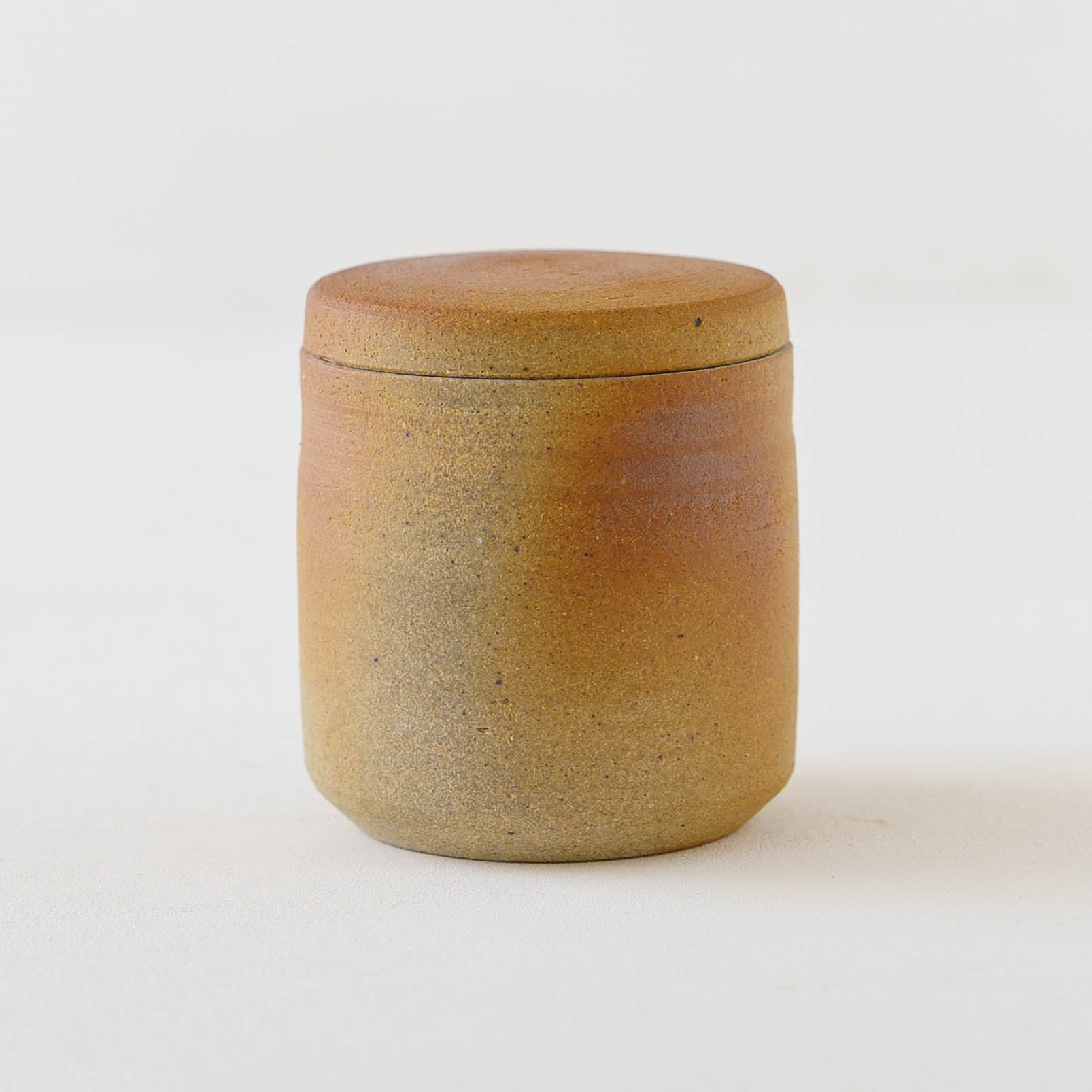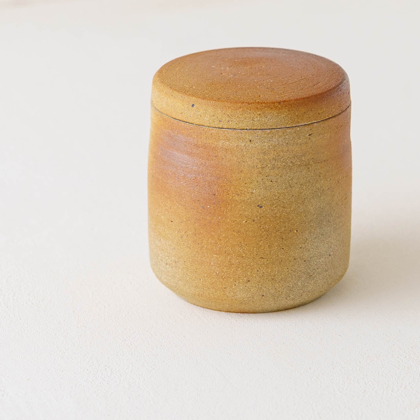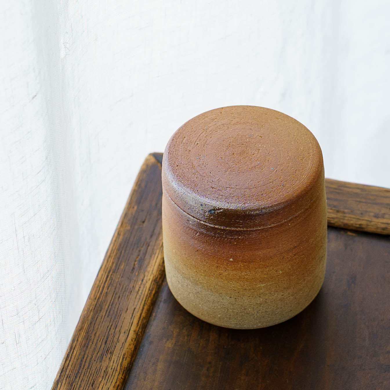 砂糖壷は、内側に釉薬が施してあるので、余分な水分の出入りをやわらかく整えてくれます。お砂糖はもちろん、冷蔵庫にも入るサイズなので、梅干しやらっきょう、新生姜などの保存食を入れても。そして、そのまま食卓へ。素朴な外観と実用性が美しく共存している、用と美を兼ね備えた焼き締め小壺です。