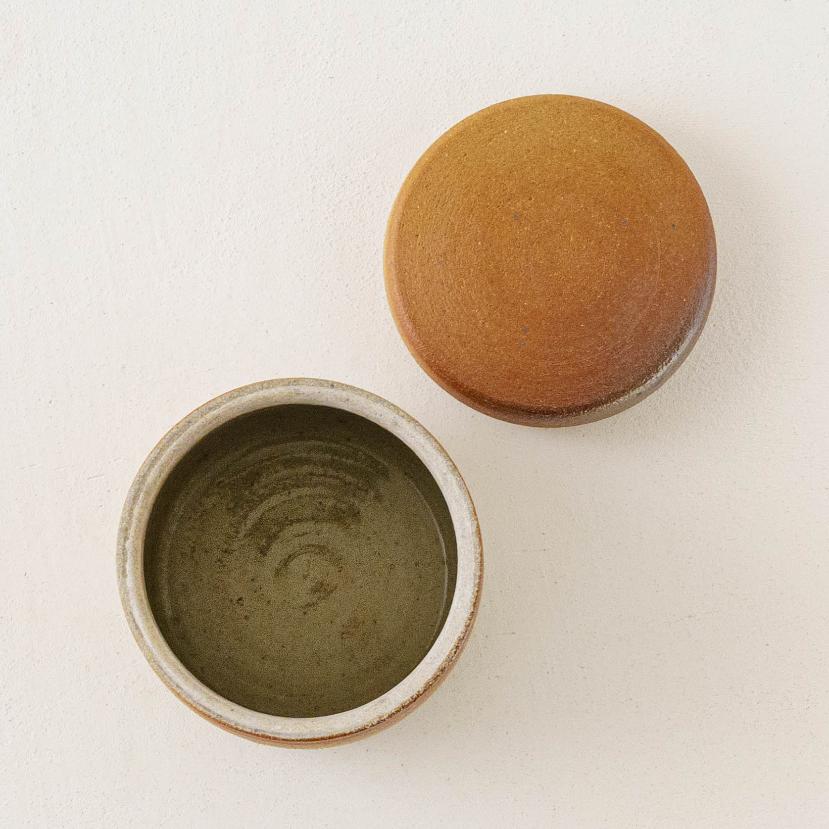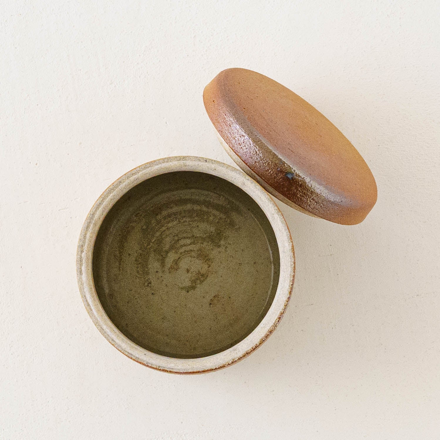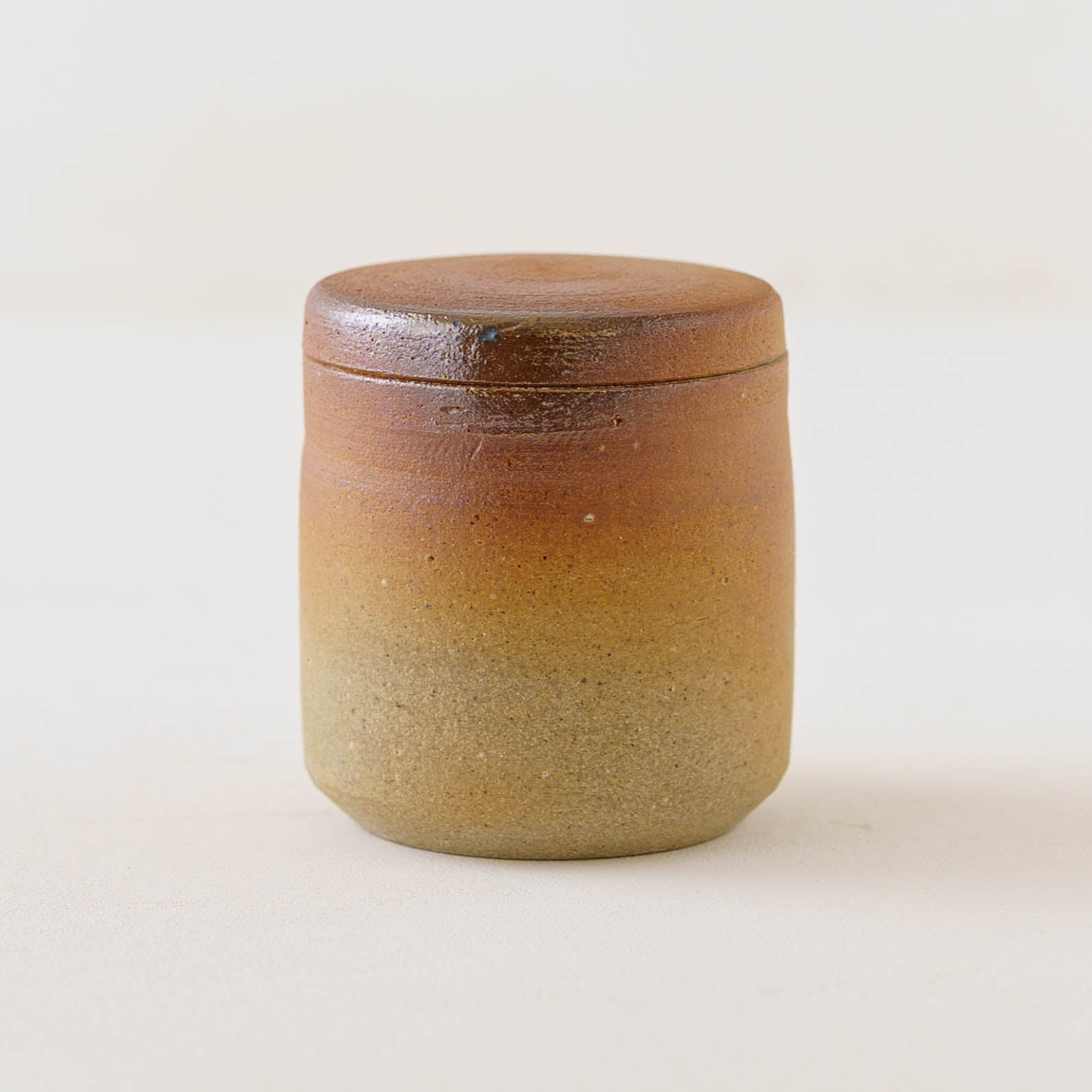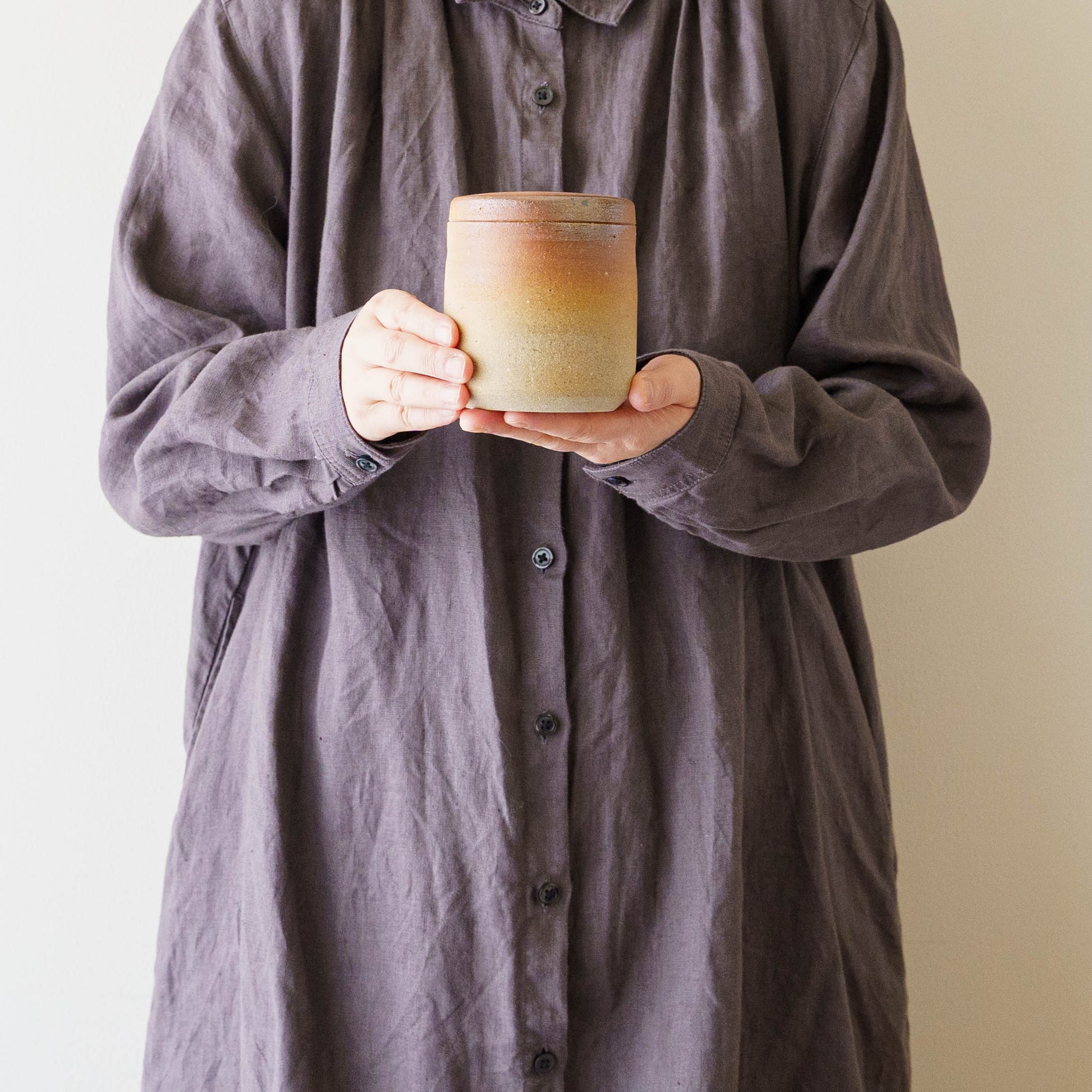 砂糖壷は、内側に釉薬が施してあるので、余分な水分の出入りをやわらかく整えてくれます。お砂糖はもちろん、冷蔵庫にも入るサイズなので、梅干しやらっきょう、新生姜などの保存食を入れても。そして、そのまま食卓へ。素朴な外観と実用性が美しく共存している、用と美を兼ね備えた焼き締め小壺です。