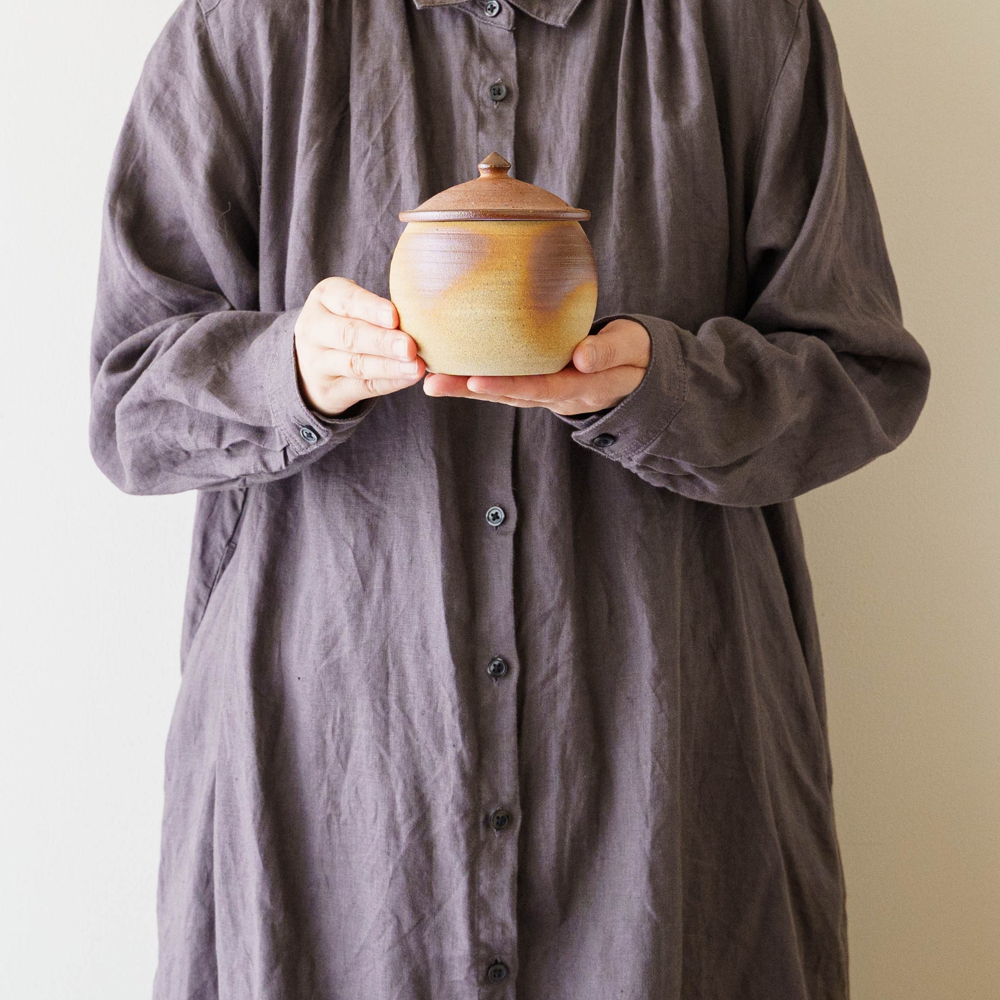 塩壷は、内側に釉薬をかけない焼き締め仕上げ。優れた通気性と調湿性で、お塩をいつでもふんわりと保ちます。どうしてもごちゃごちゃしてしまう、使いかけのにんにくや生姜などを入れてすっきりと。余分な湿気を調整しながら旨みを保ってくれます。※内側はコーティングしていないため、汁気のあるものや色移りしやすいものはお避けください。