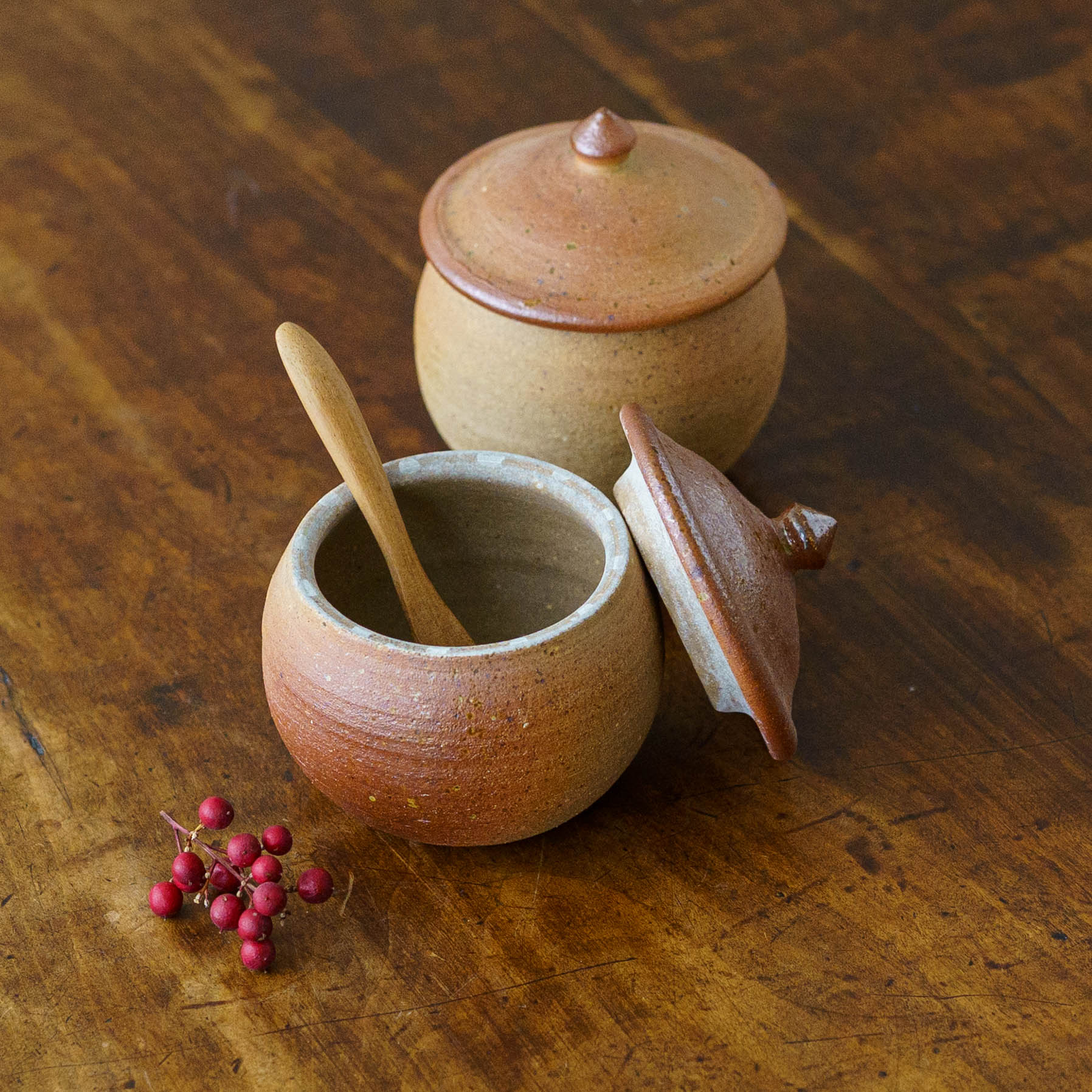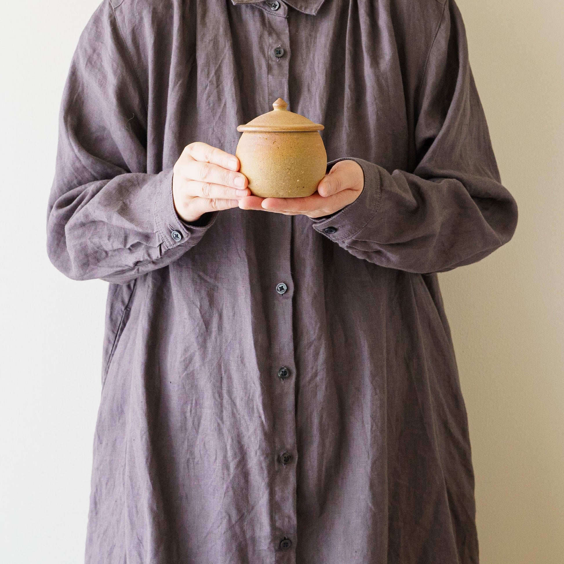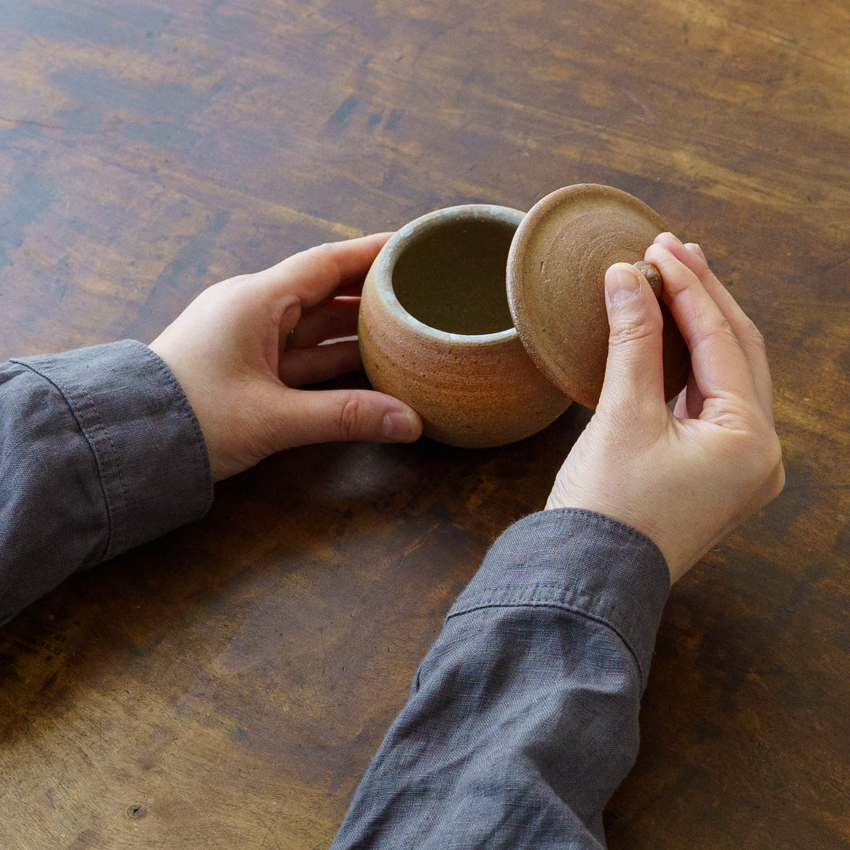 塩壷は、内側に釉薬をかけない焼き締め仕上げ。優れた通気性と調湿性で、お塩をいつでもふんわりと保ちます。どうしてもごちゃごちゃしてしまう、使いかけのにんにくや生姜などを入れてすっきりと。余分な湿気を調整しながら旨みを保ってくれます。※内側はコーティングしていないため、汁気のあるものや色移りしやすいものはお避けください。