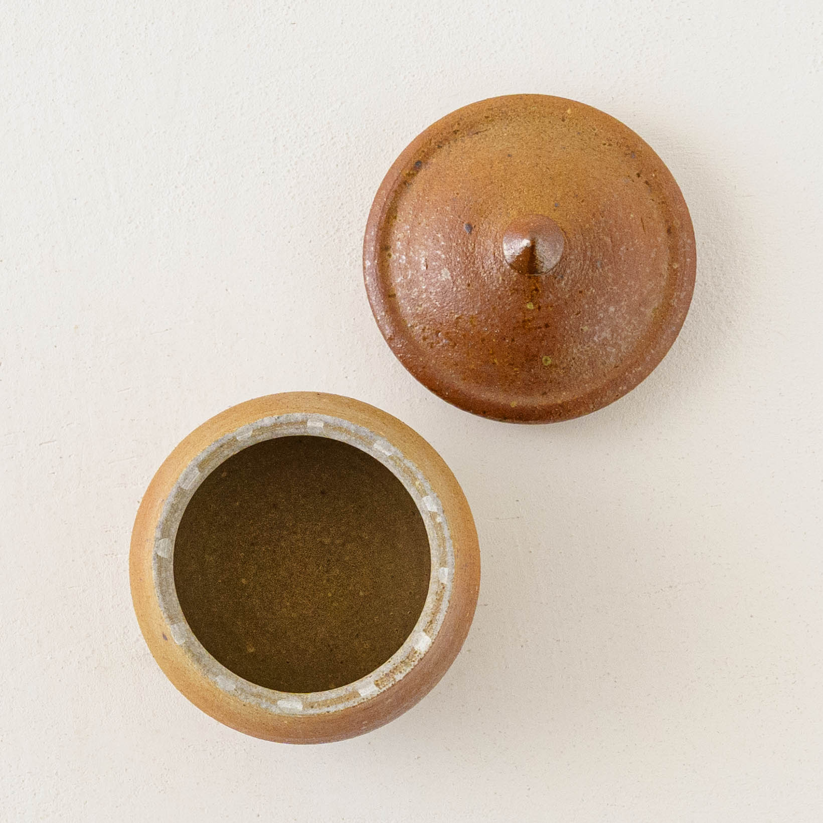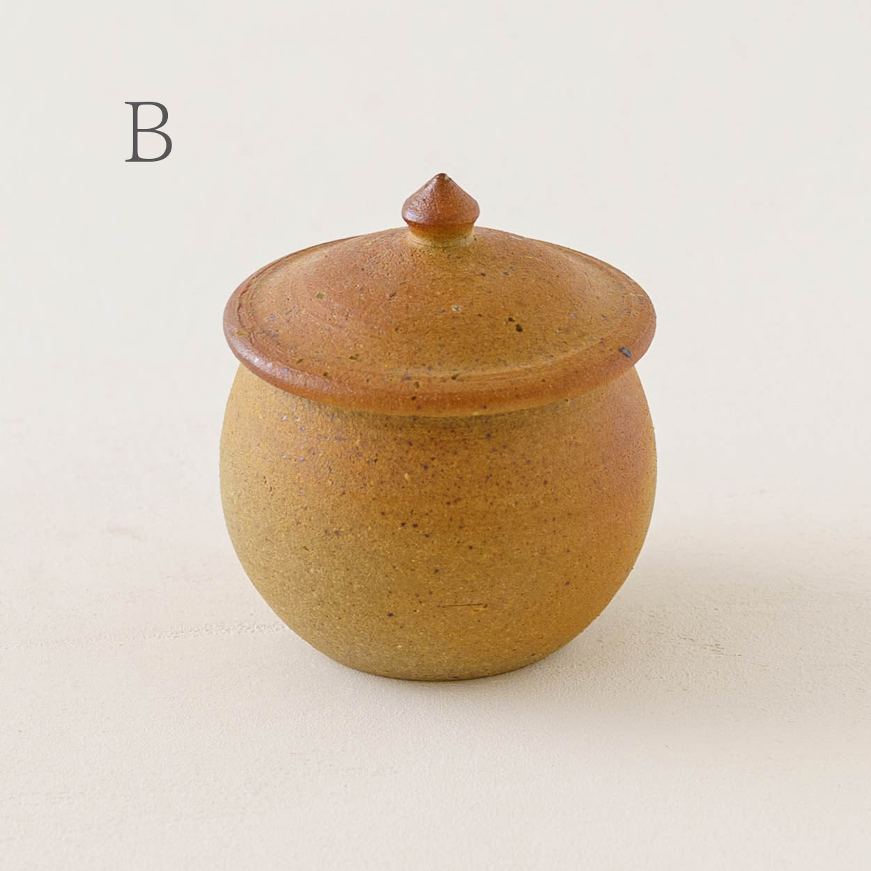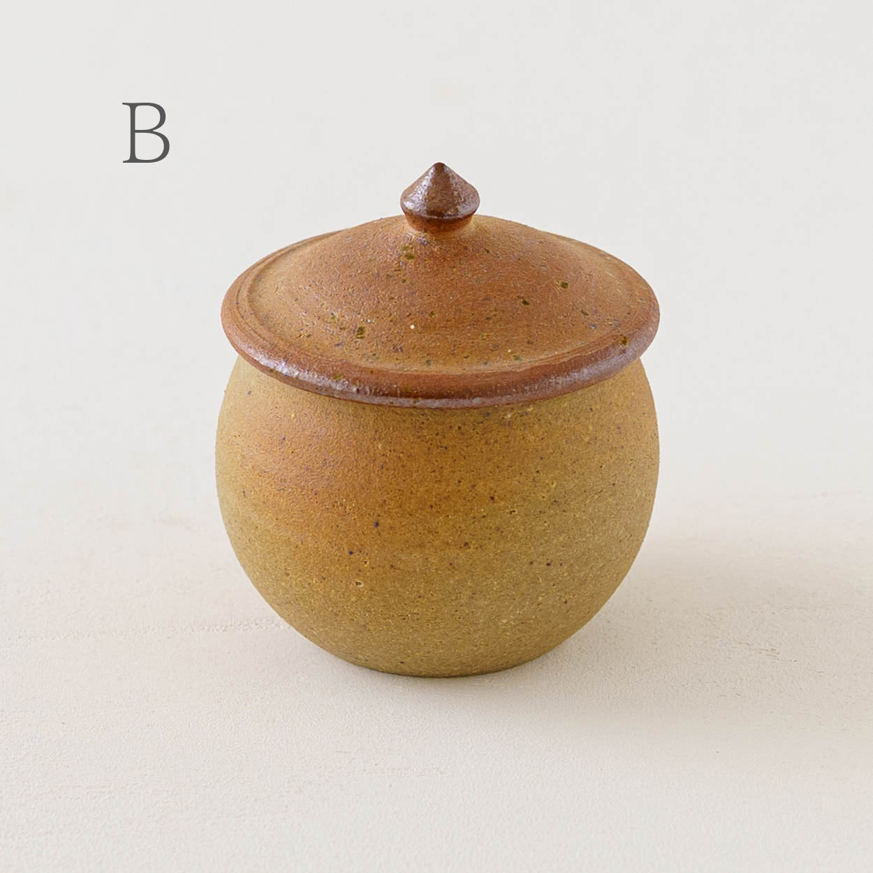 塩壷は、内側に釉薬をかけない焼き締め仕上げ。優れた通気性と調湿性で、お塩をいつでもふんわりと保ちます。どうしてもごちゃごちゃしてしまう、使いかけのにんにくや生姜などを入れてすっきりと。余分な湿気を調整しながら旨みを保ってくれます。※内側はコーティングしていないため、汁気のあるものや色移りしやすいものはお避けください。
