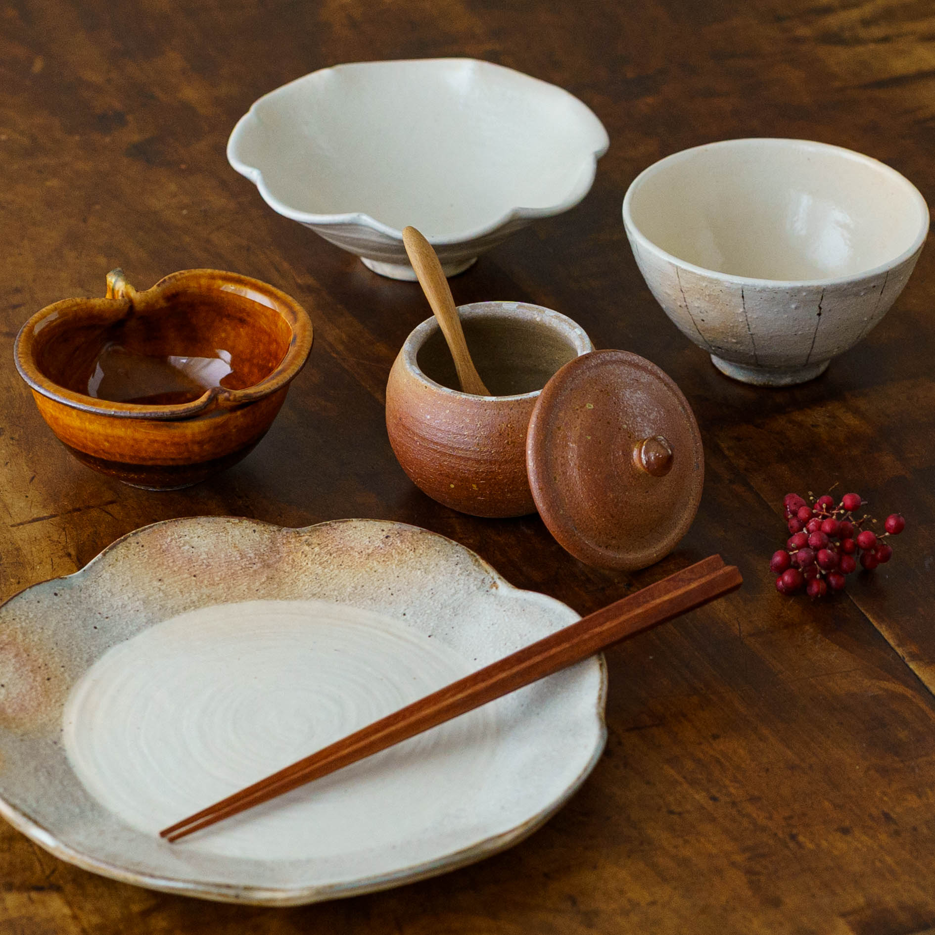 効率よりも味わいを大切にする登り窯ならではの焼き色と質感は、使うほどに深みを増し、ふたつとない表情や風合いに変化していきます。手間や時間を惜しまず向き合うことで生まれた土のぬくもりが感じられる佇まい。毎日そばに置くものだからこそ、丁寧につくられたものを選びたい、そんな想いに応えてくれる器です。