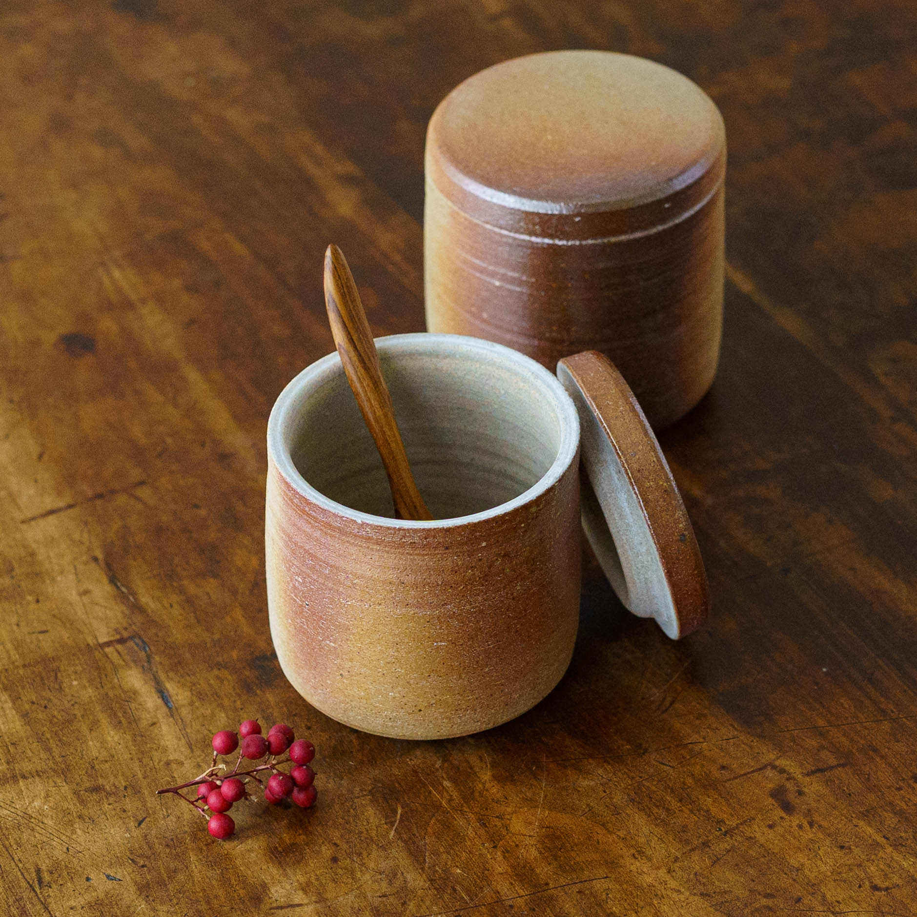 塩壷は、内側に釉薬をかけない焼き締め仕上げ。優れた通気性と調湿性で、お塩をいつでもふんわりと保ちます。どうしてもごちゃごちゃしてしまう、使いかけのにんにくや生姜などを入れてすっきりと。余分な湿気を調整しながら旨みを保ってくれます。※内側はコーティングしていないため、汁気のあるものや色移りしやすいものはお避けください。