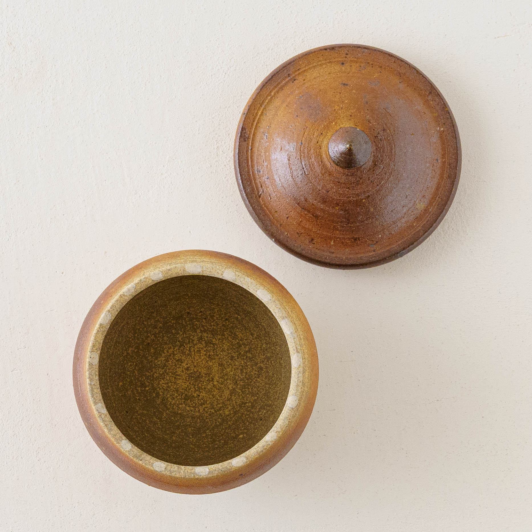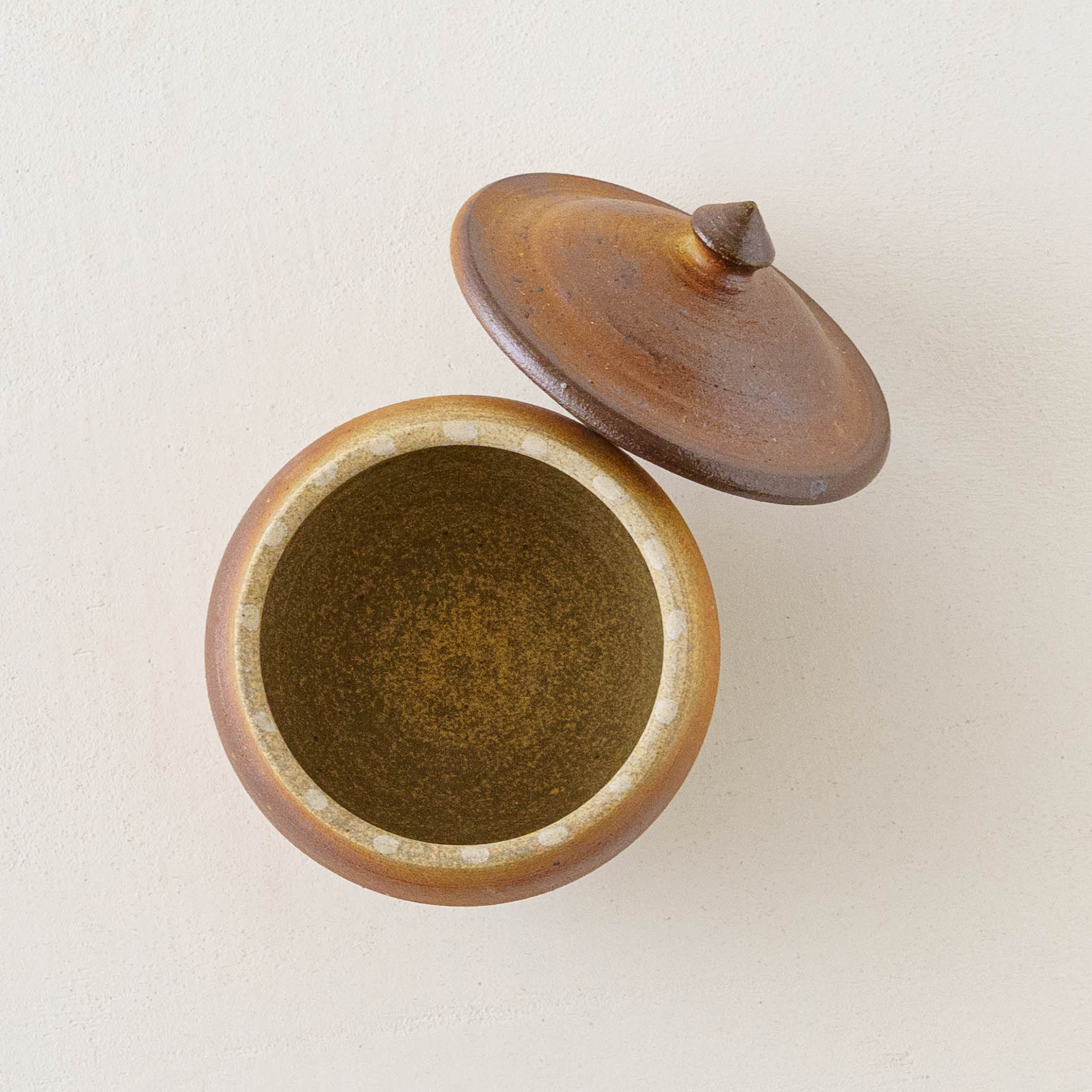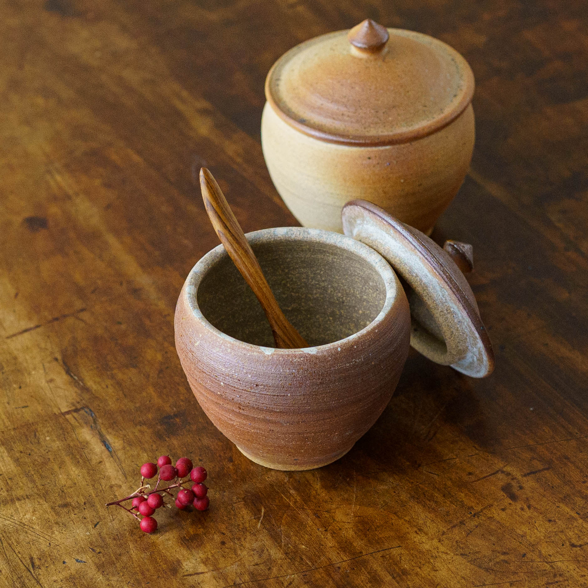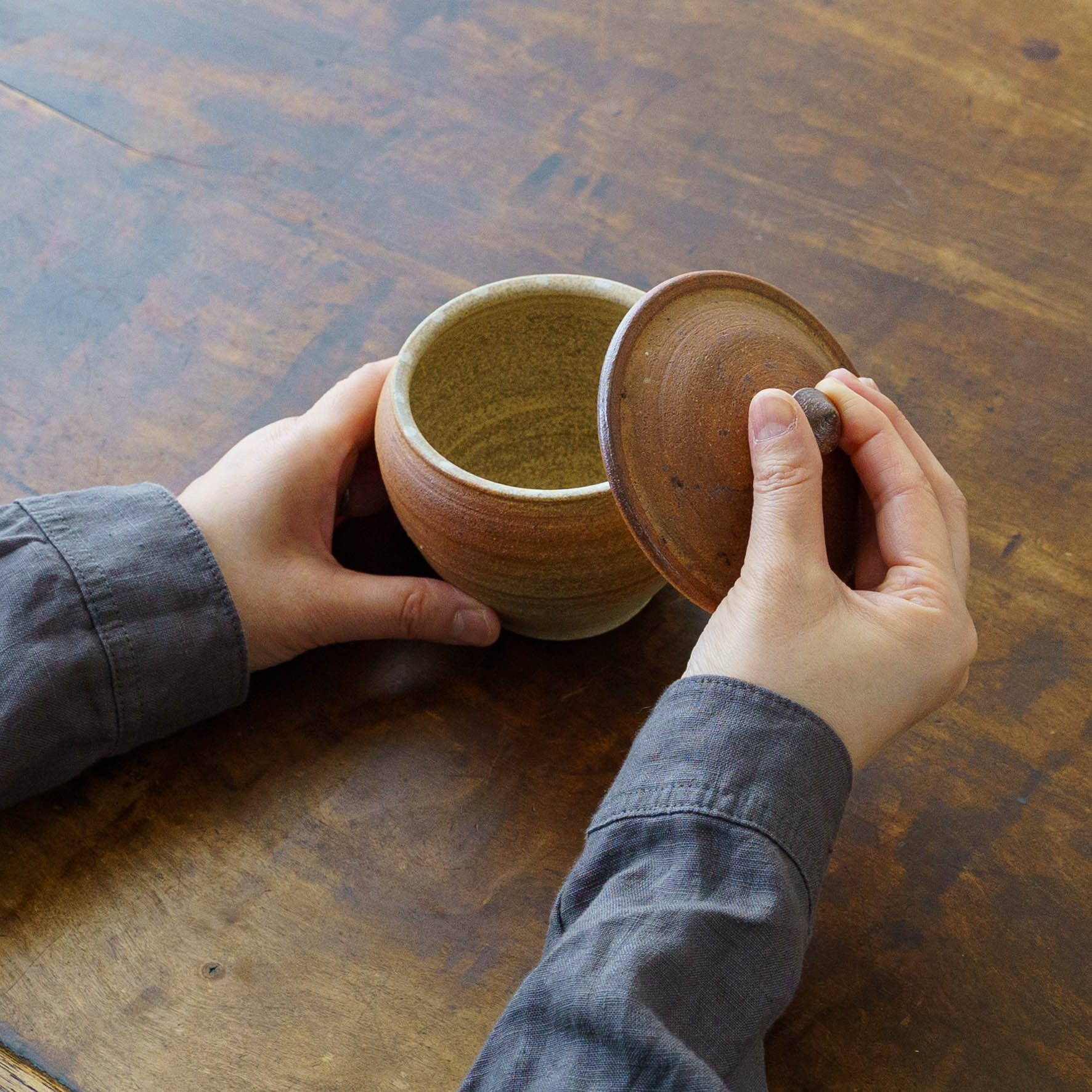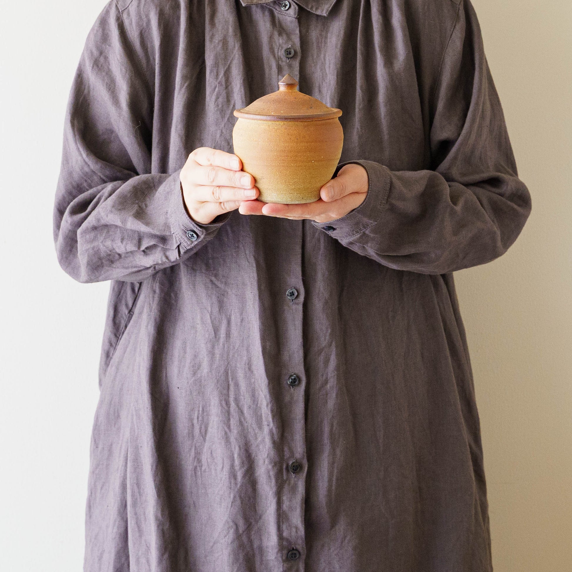 塩壷は、内側に釉薬をかけない焼き締め仕上げ。優れた通気性と調湿性で、お塩をいつでもふんわりと保ちます。どうしてもごちゃごちゃしてしまう、使いかけのにんにくや生姜などを入れてすっきりと。余分な湿気を調整しながら旨みを保ってくれます。※内側はコーティングしていないため、汁気のあるものや色移りしやすいものはお避けください。
