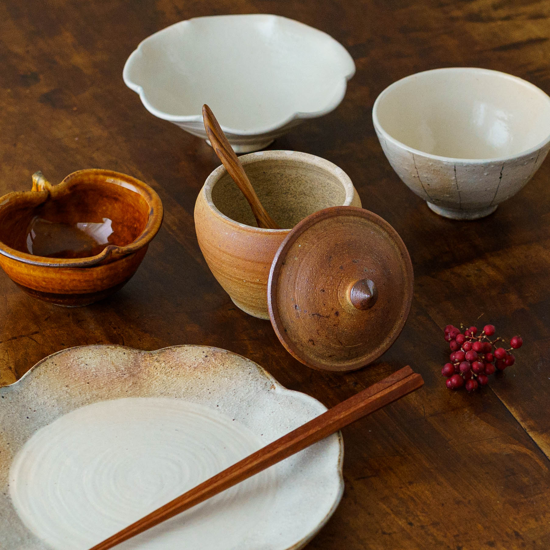 効率よりも味わいを大切にする登り窯ならではの焼き色と質感は、使うほどに深みを増し、ふたつとない表情や風合いに変化していきます。手間や時間を惜しまず向き合うことで生まれた土のぬくもりが感じられる佇まい。毎日そばに置くものだからこそ、丁寧につくられたものを選びたい、そんな想いに応えてくれる器です。