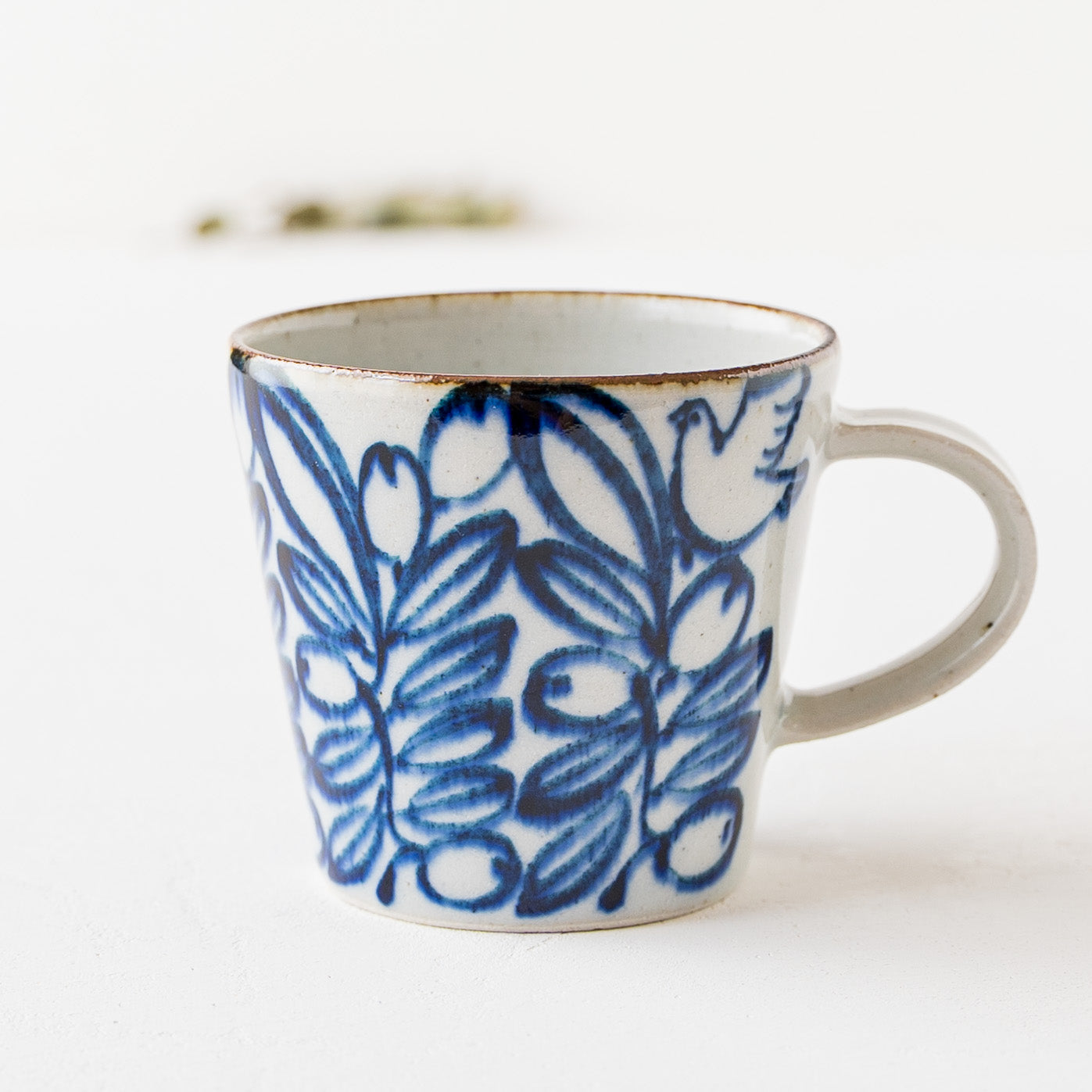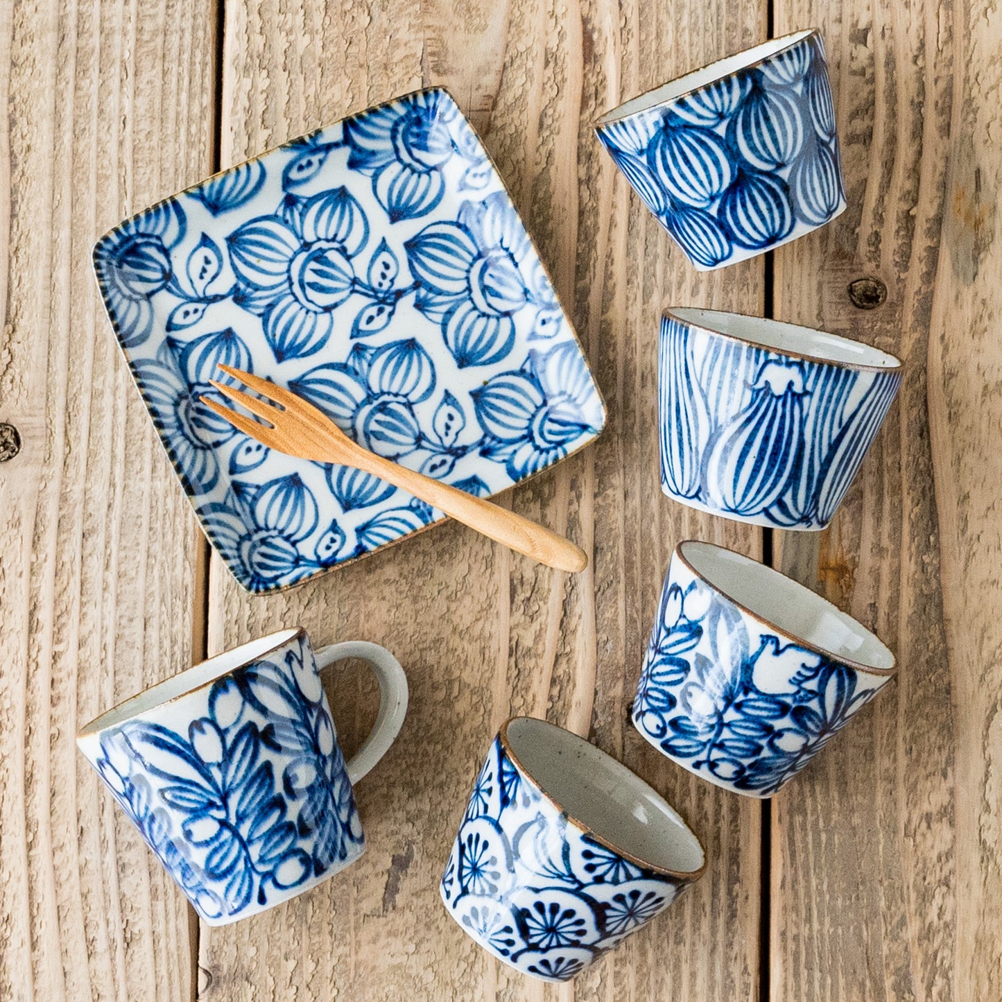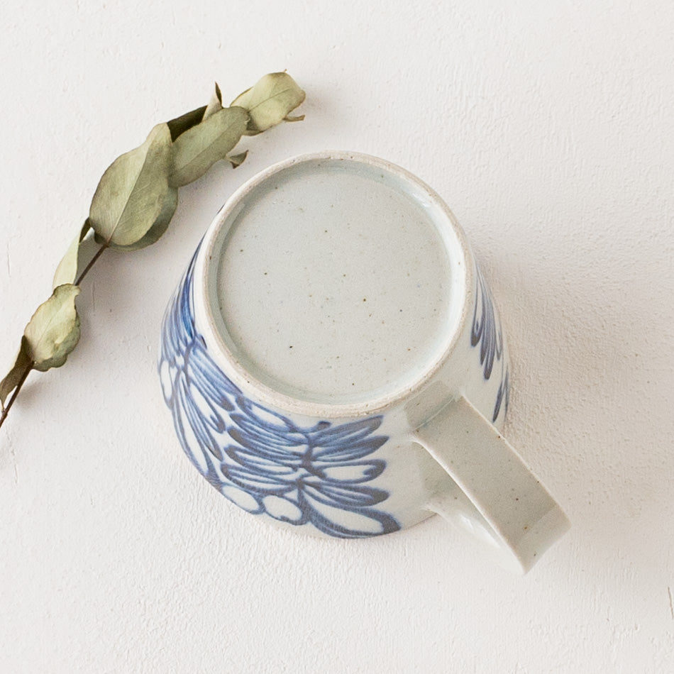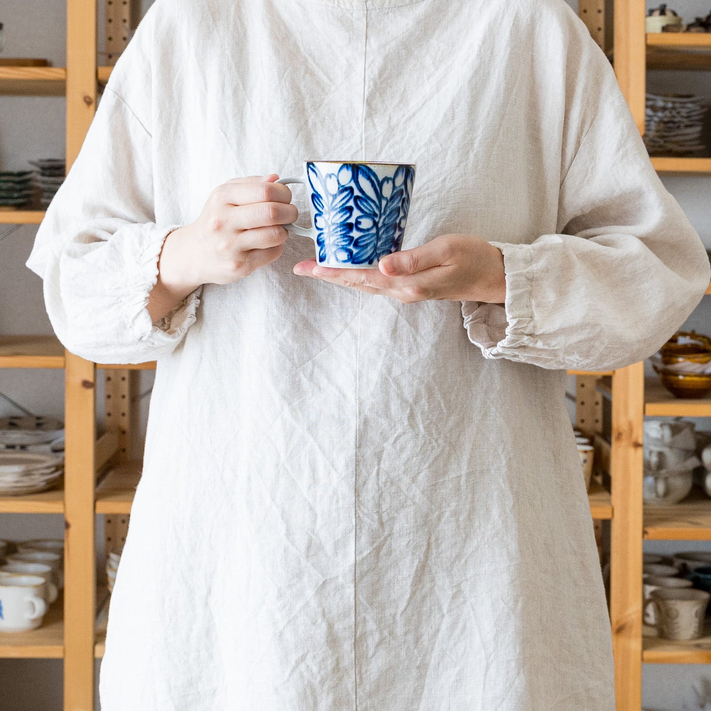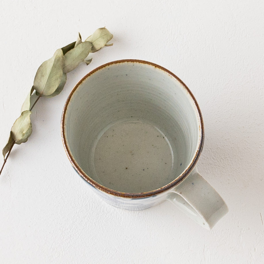 青系のうつわがあると食卓が涼やかで爽やかな雰囲気になりますね。ひとり時間をのんびり愉しむ時や長時間のデスクワークのお供など心に安らぎを与えてくれるマグです。