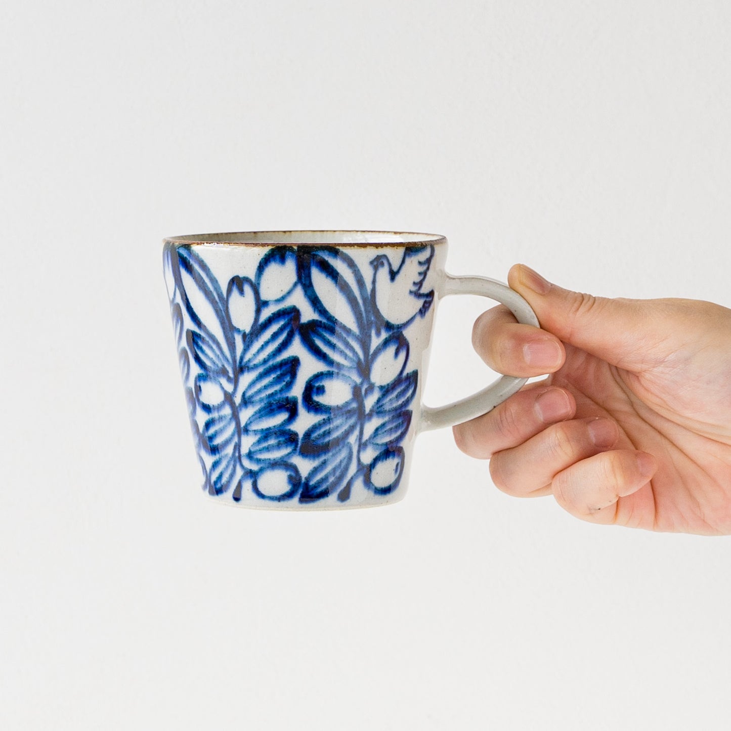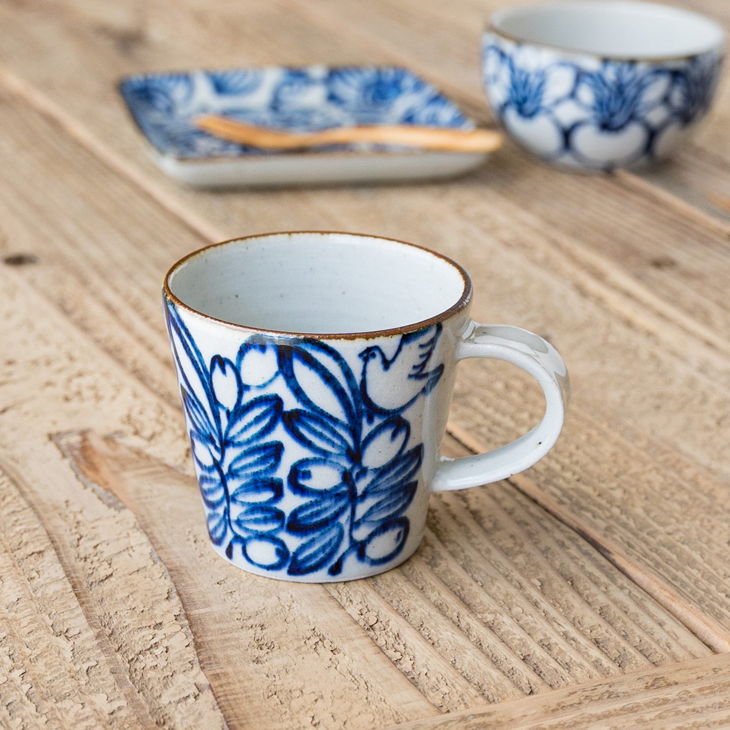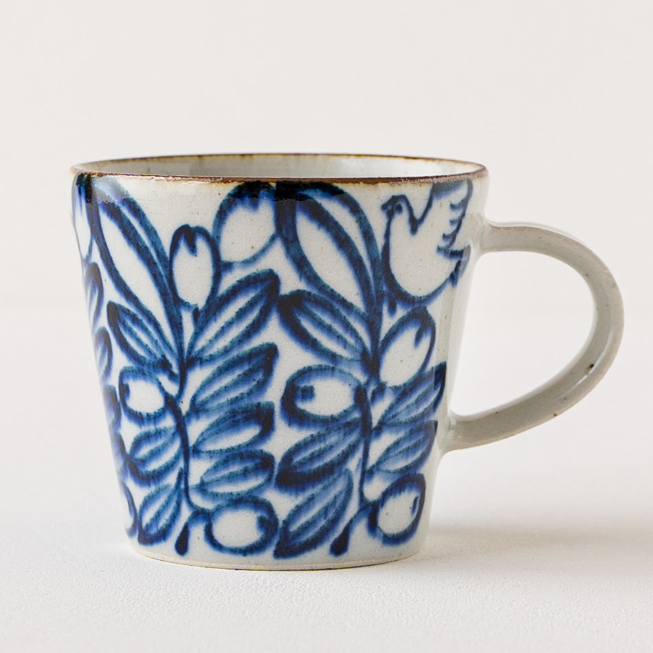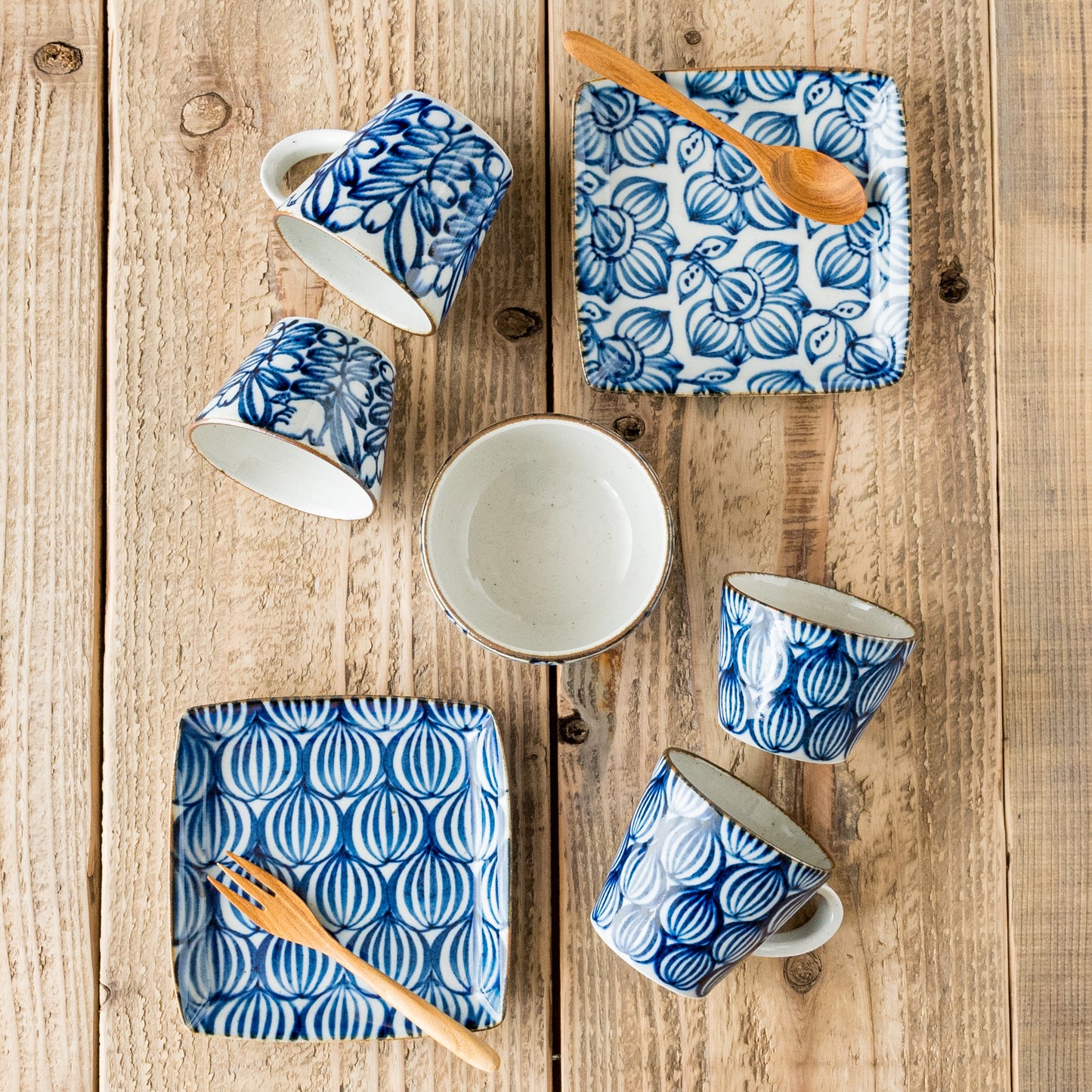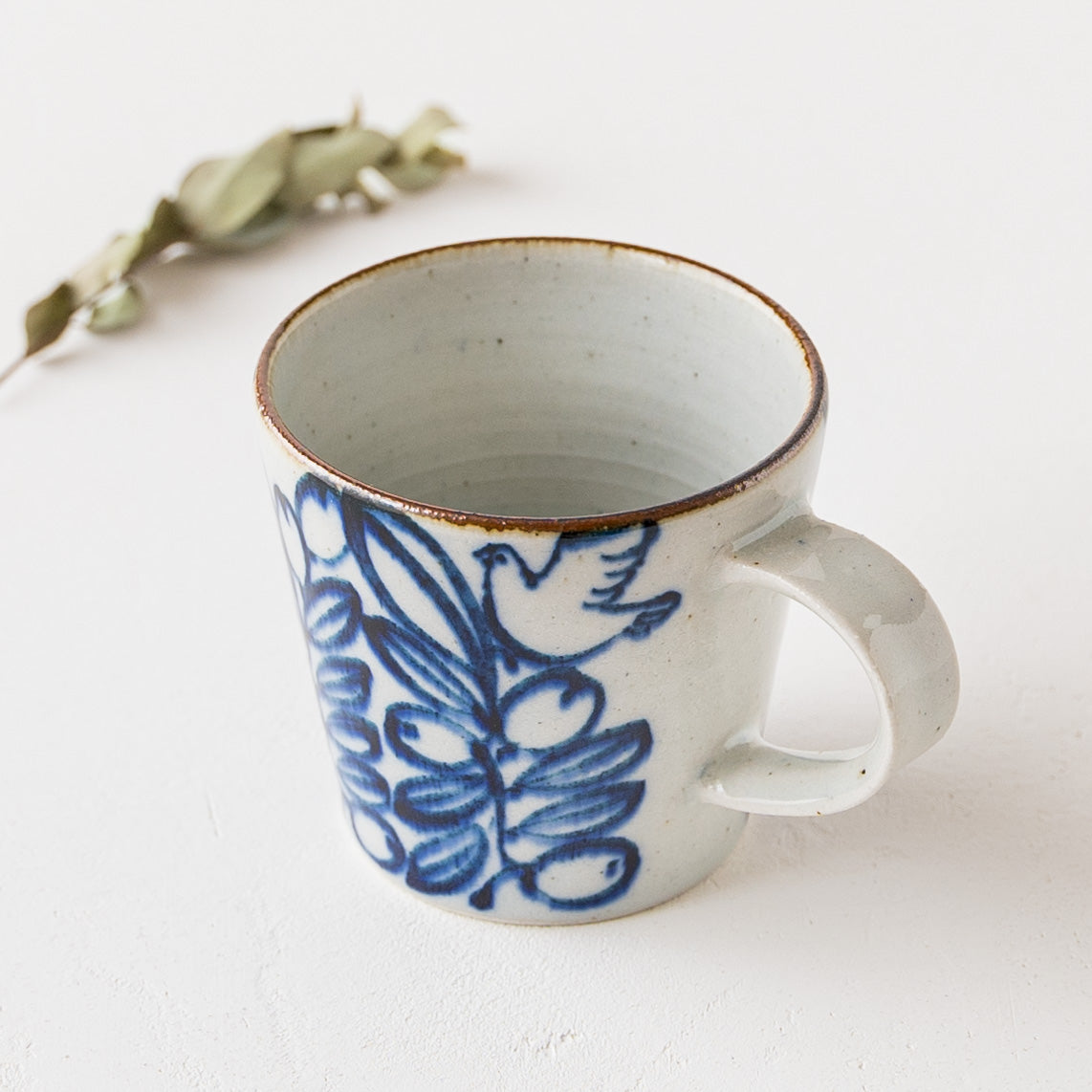 青系のうつわがあると食卓が涼やかで爽やかな雰囲気になりますね。ひとり時間をのんびり愉しむ時や長時間のデスクワークのお供など心に安らぎを与えてくれるマグです。