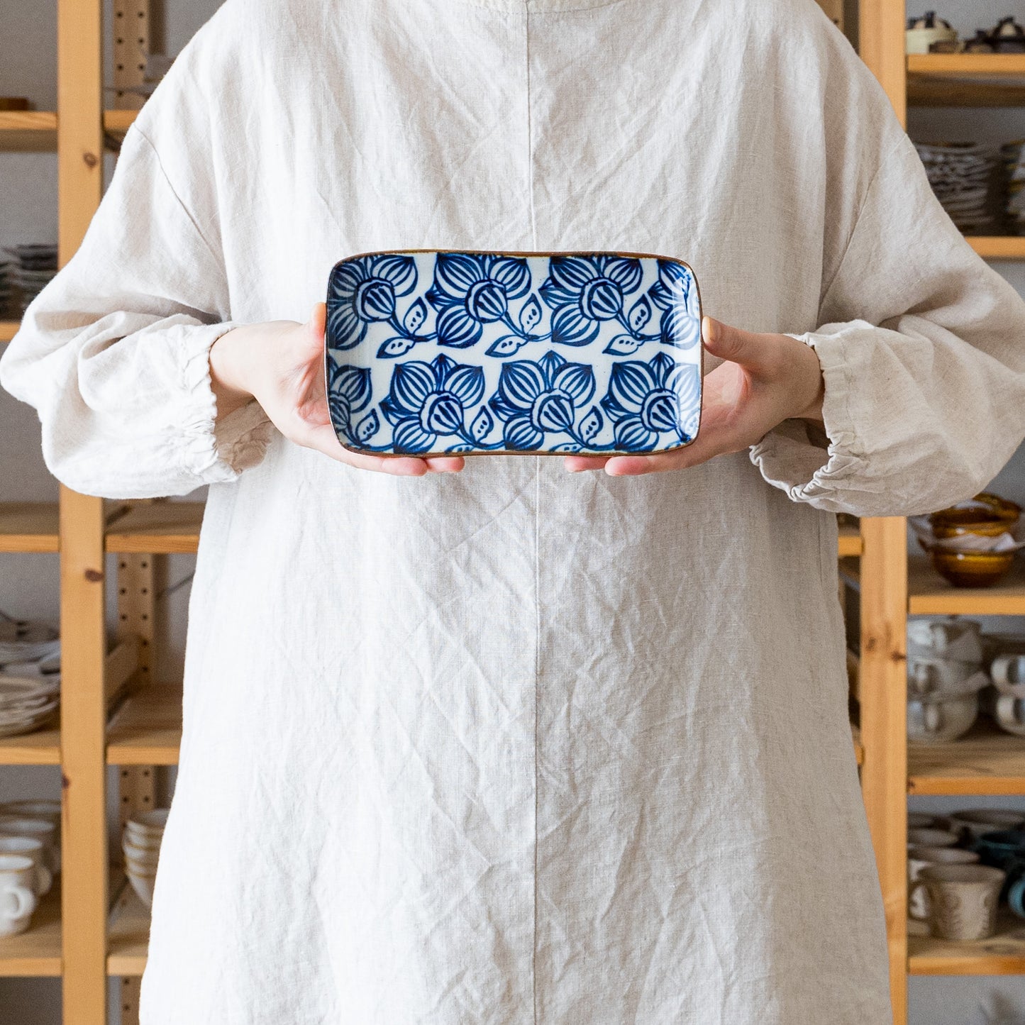 白地に映える深みのある染付の藍色。置いてあるだけで穏やかで落ち着きのある雰囲気に。食卓にすっと馴染むやさしさが伝わってくるうつわです。