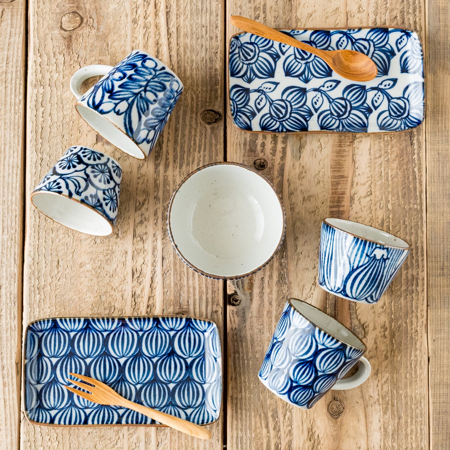 青系のうつわがあると食卓が涼やかで爽やかな雰囲気になりますね。焼き魚や玉子焼き、生春巻き、お新香など何を載せてもかわいくおしゃれにしてくれます。