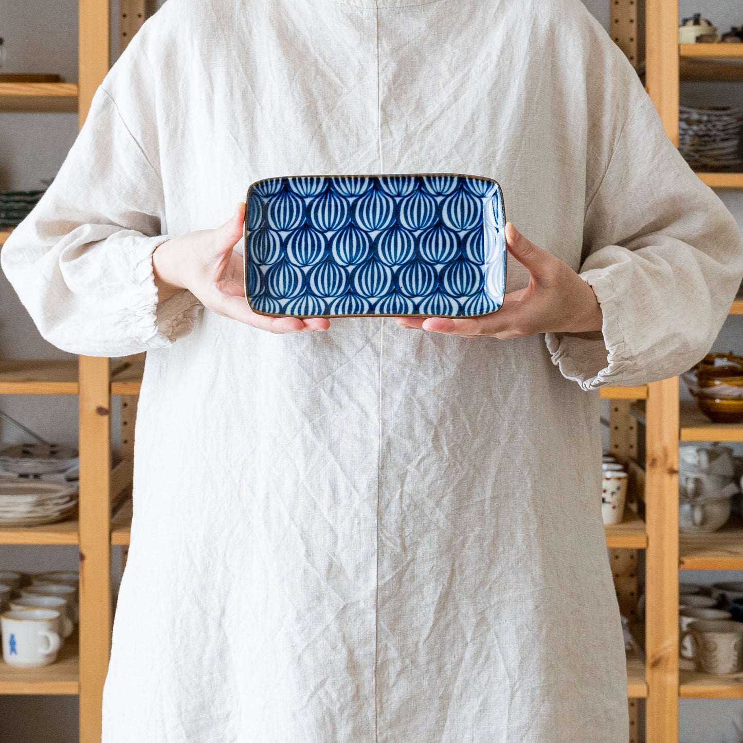 白地に映える深みのある染付の藍色。置いてあるだけで穏やかで落ち着きのある雰囲気に。食卓にすっと馴染むやさしさが伝わってくるうつわです。