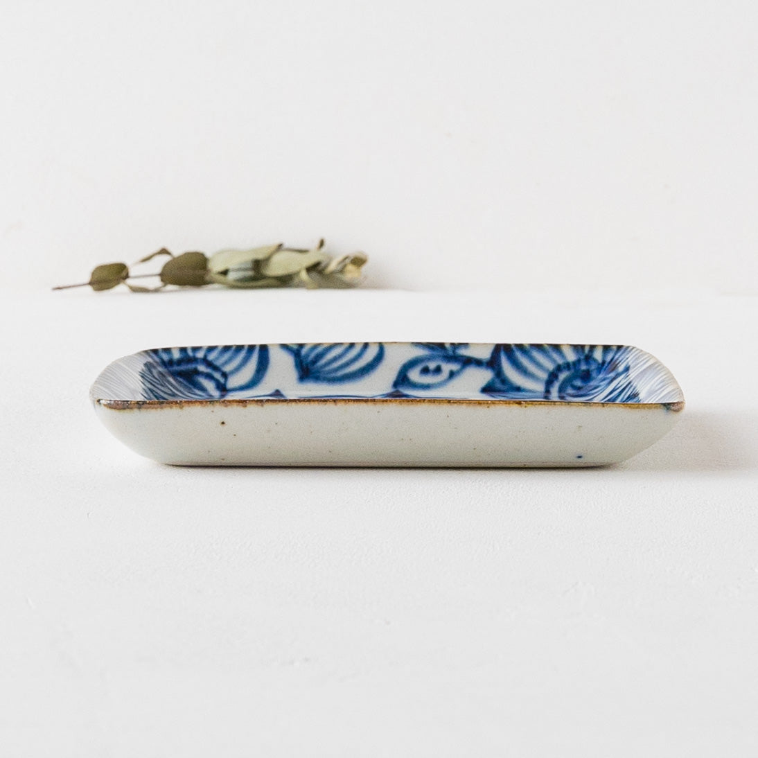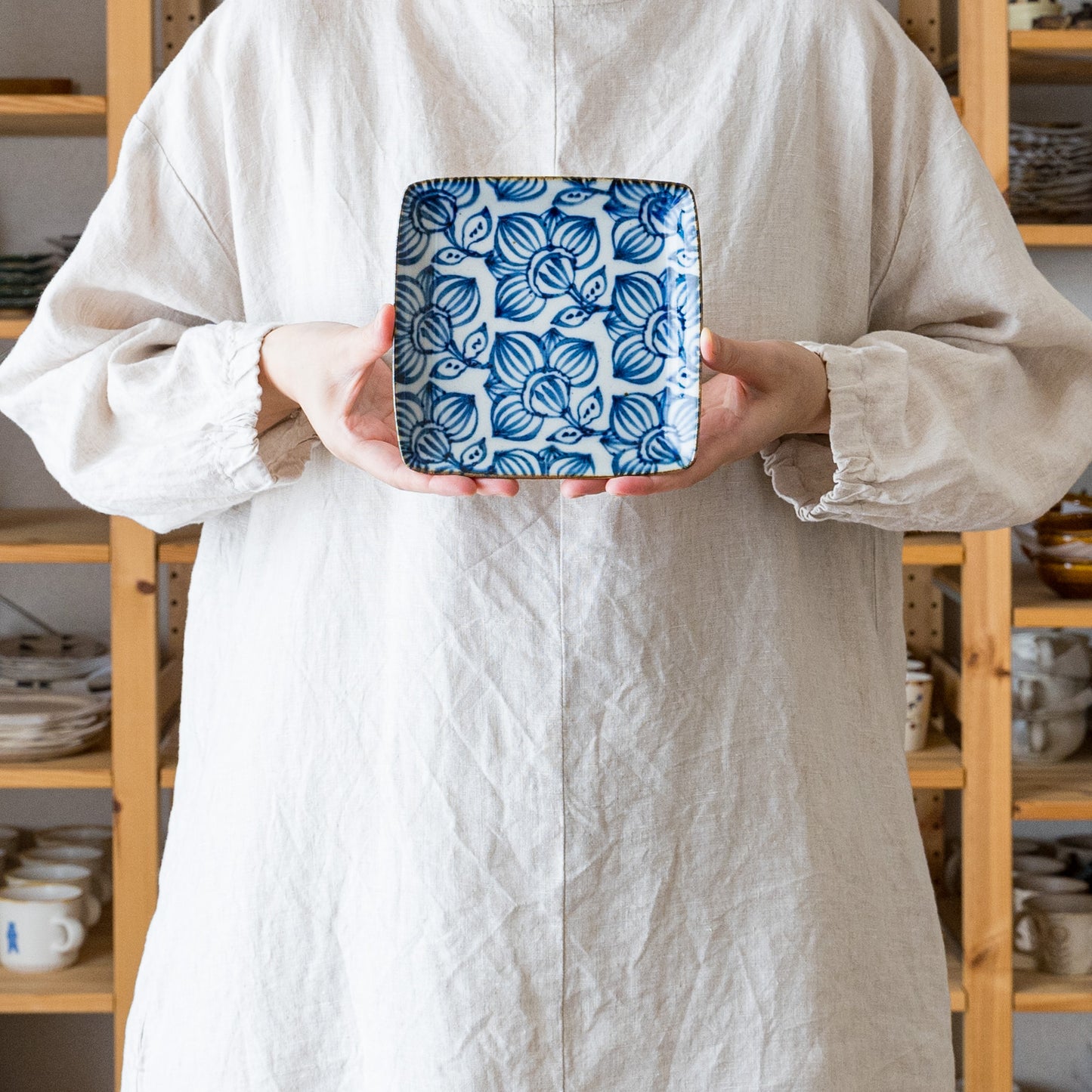 白地に映える深みのある染付の藍色。置いてあるだけで穏やかで落ち着きのある雰囲気に。食卓にすっと馴染むやさしさが伝わってくるうつわです。