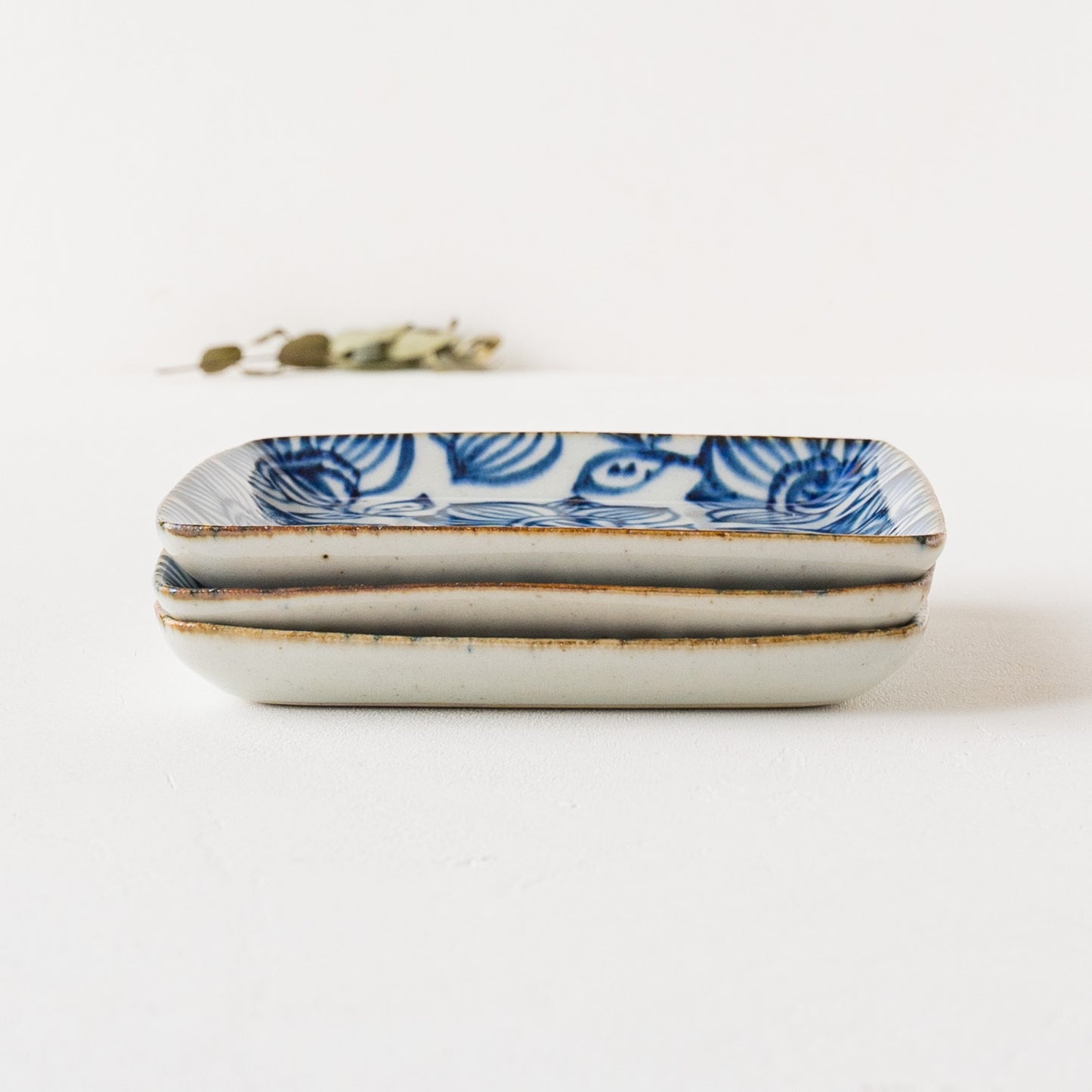 青系のうつわがあると食卓が涼やかで爽やかな雰囲気になりますね。カプレーゼやお刺身、天ぷら、スイーツなど何を載せてもかわいくおしゃれにしてくれます。