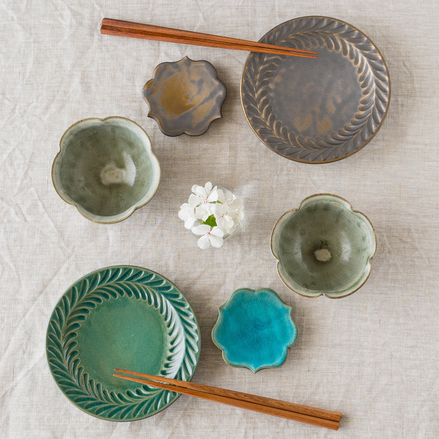 和え物、酢の物、お浸し、佃煮、お新香など食卓に欠かせない副菜の盛り付けにぴったりです。練り切りや羊羹など和菓子も素敵に映えます。