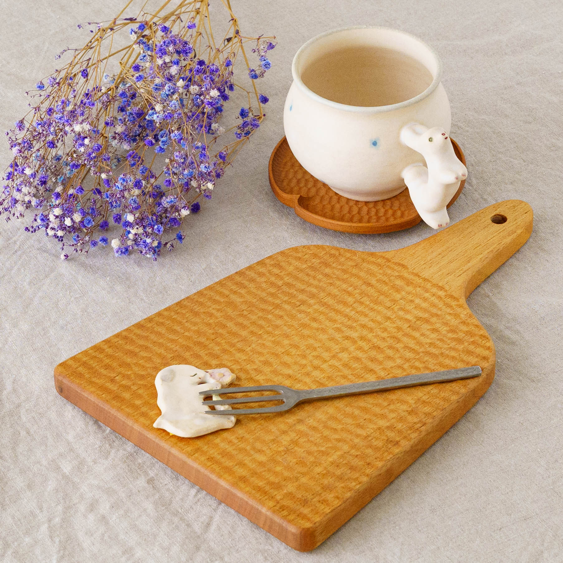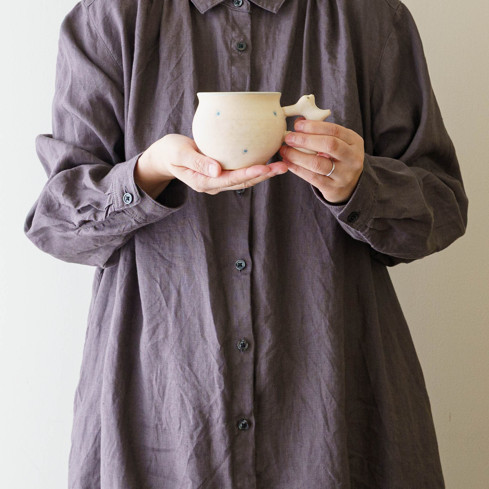 いつも見えるわけではない、どこかで息づいていそうな小さないきものたち。思わず話しかけたくなるような愛らしさがうつわやオブジェのかたちに宿り、ふんわりとした空気感とともに不思議な世界へ静かに誘ってくれます。