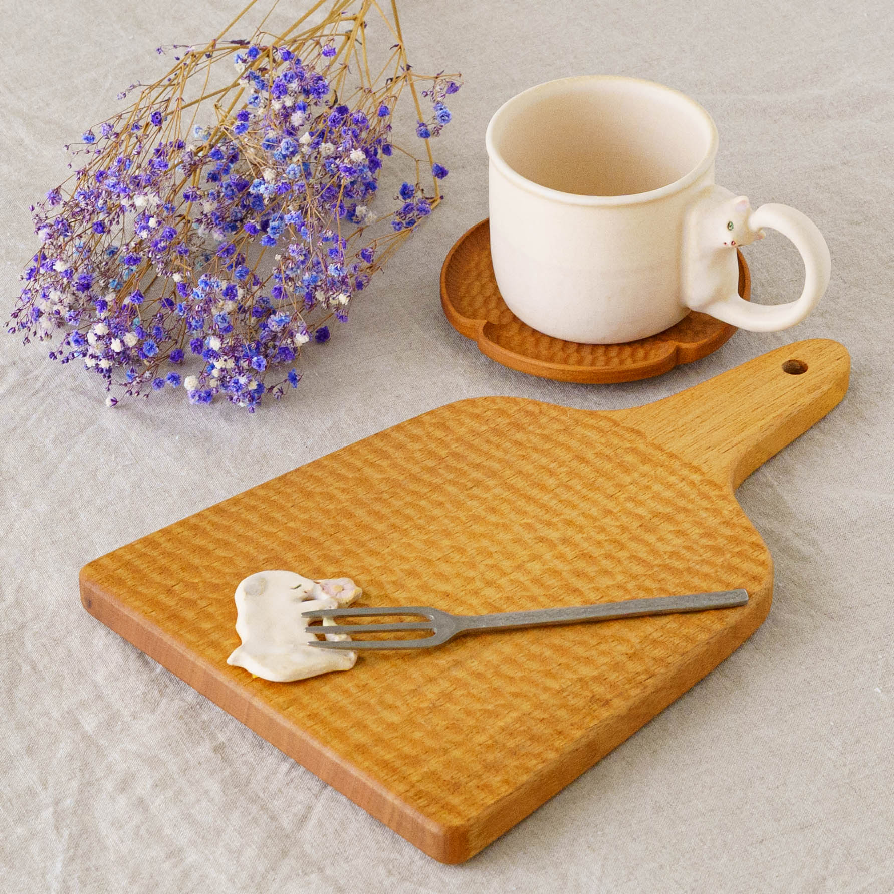 いつも見えるわけではない、どこかで息づいていそうな小さないきものたち。思わず話しかけたくなるような愛らしさがうつわやオブジェのかたちに宿り、ふんわりとした空気感とともに不思議な世界へ静かに誘ってくれます。