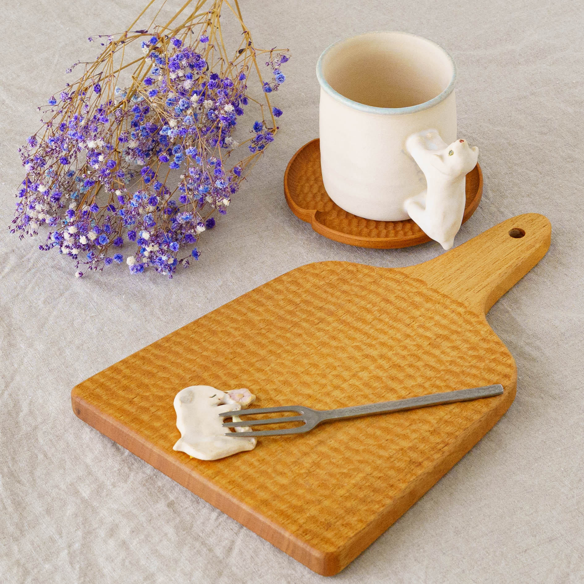 いつも見えるわけではない、どこかで息づいていそうな小さないきものたち。思わず話しかけたくなるような愛らしさがうつわやオブジェのかたちに宿り、ふんわりとした空気感とともに不思議な世界へ静かに誘ってくれます。
