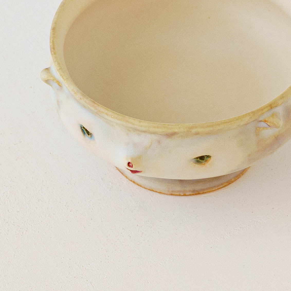 ひとつひとつ手づくりのため色味、かたち、厚み、大きさ、重さ、釉ムラ、釉だれ、釉だまり、僅かなガタつき、模様、顔の表情など個体差がございます。また、釉薬のかかり具合の違いや貫入、ピンホール、鉄粉(黒点)がみられるものもございますが、ご使用には問題ございません。手づくりならではの個性豊かな表情としてお楽しみください。どのお品が届くかはお選びできませんが、お手元に届くまでお楽しみにお待ちいただければ幸いです。気になる方は発送前にご連絡いただければ別途お写真をメールいたしますのでお気軽にご連絡ください。