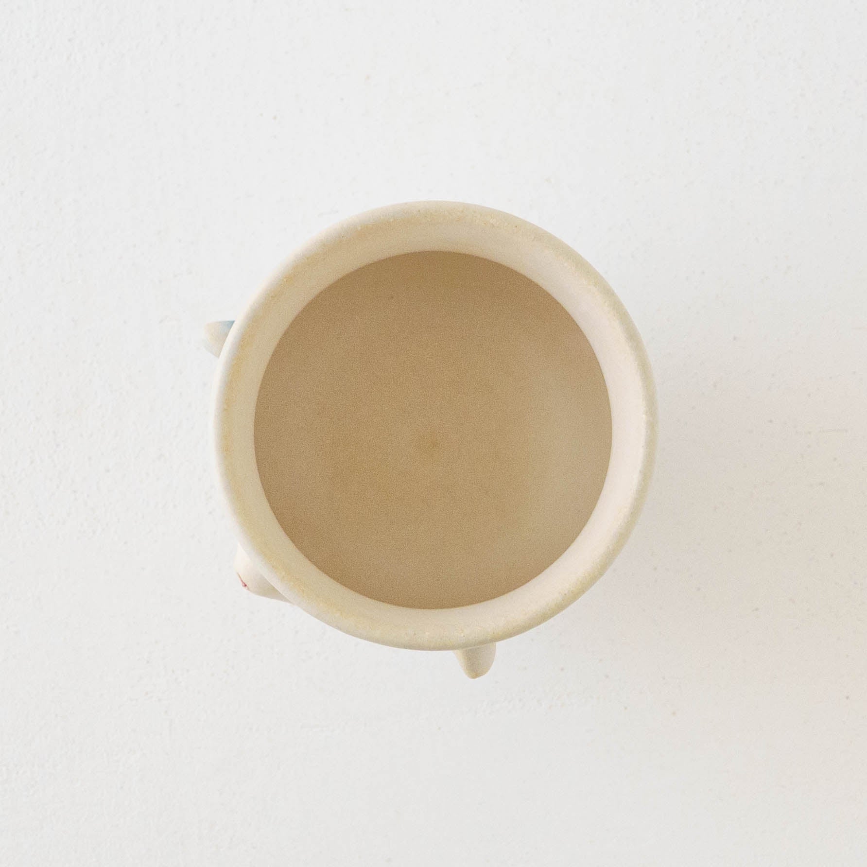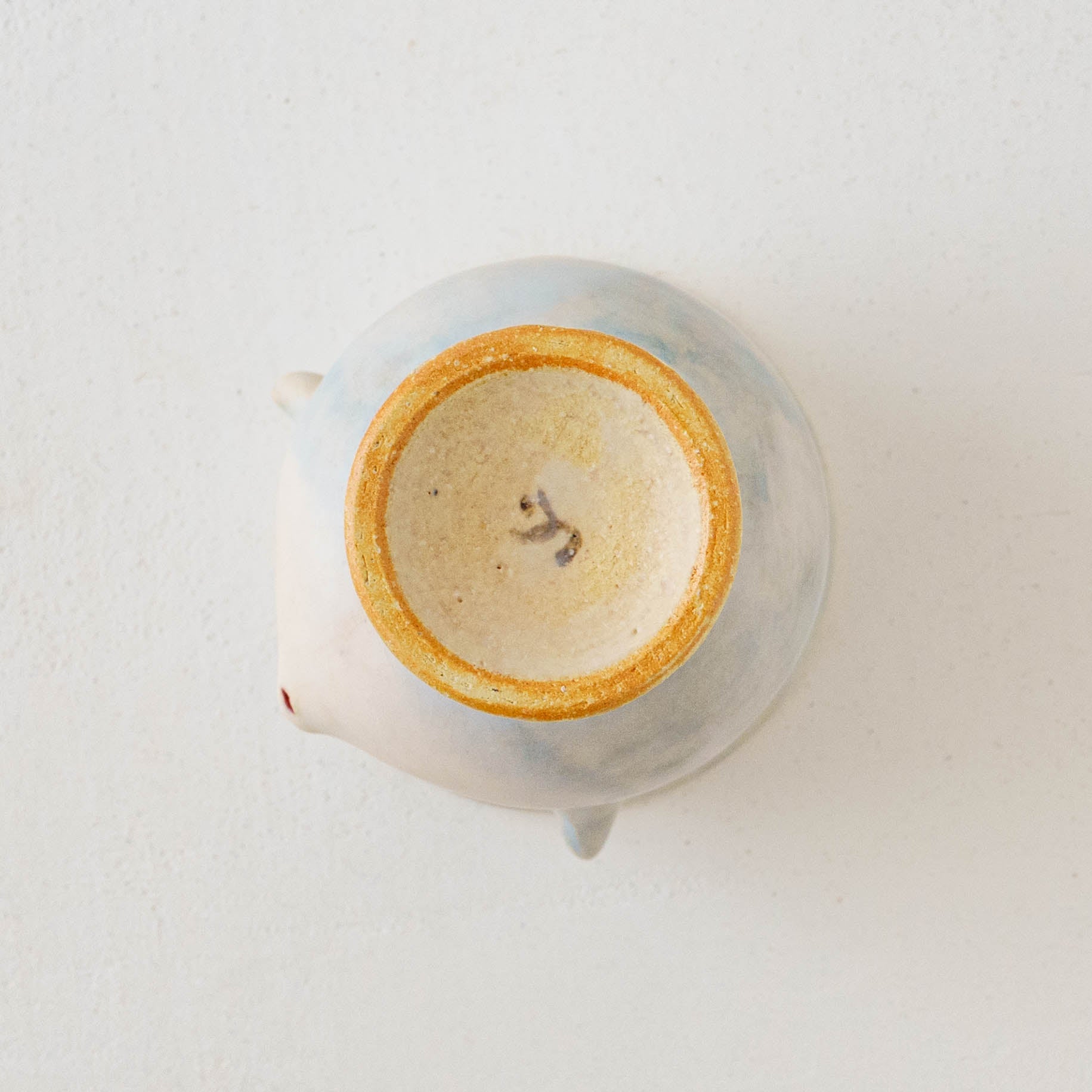 すべすべしっとりとした陶土に重ねられた淡くやわらかな色彩。手びねりとろくろを組み合わせ、削りや色の重なりで生まれる表情は、夢の中で出会ういきもののように幻想的。そっと見つめていると、心がふわりとほどけていくような、やさしい世界に包まれます。