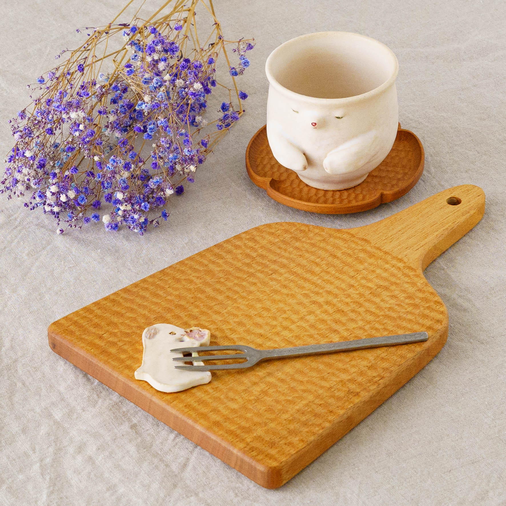 いつも見えるわけではない、どこかで息づいていそうな小さないきものたち。思わず話しかけたくなるような愛らしさがうつわやオブジェのかたちに宿り、ふんわりとした空気感とともに不思議な世界へ静かに誘ってくれます。