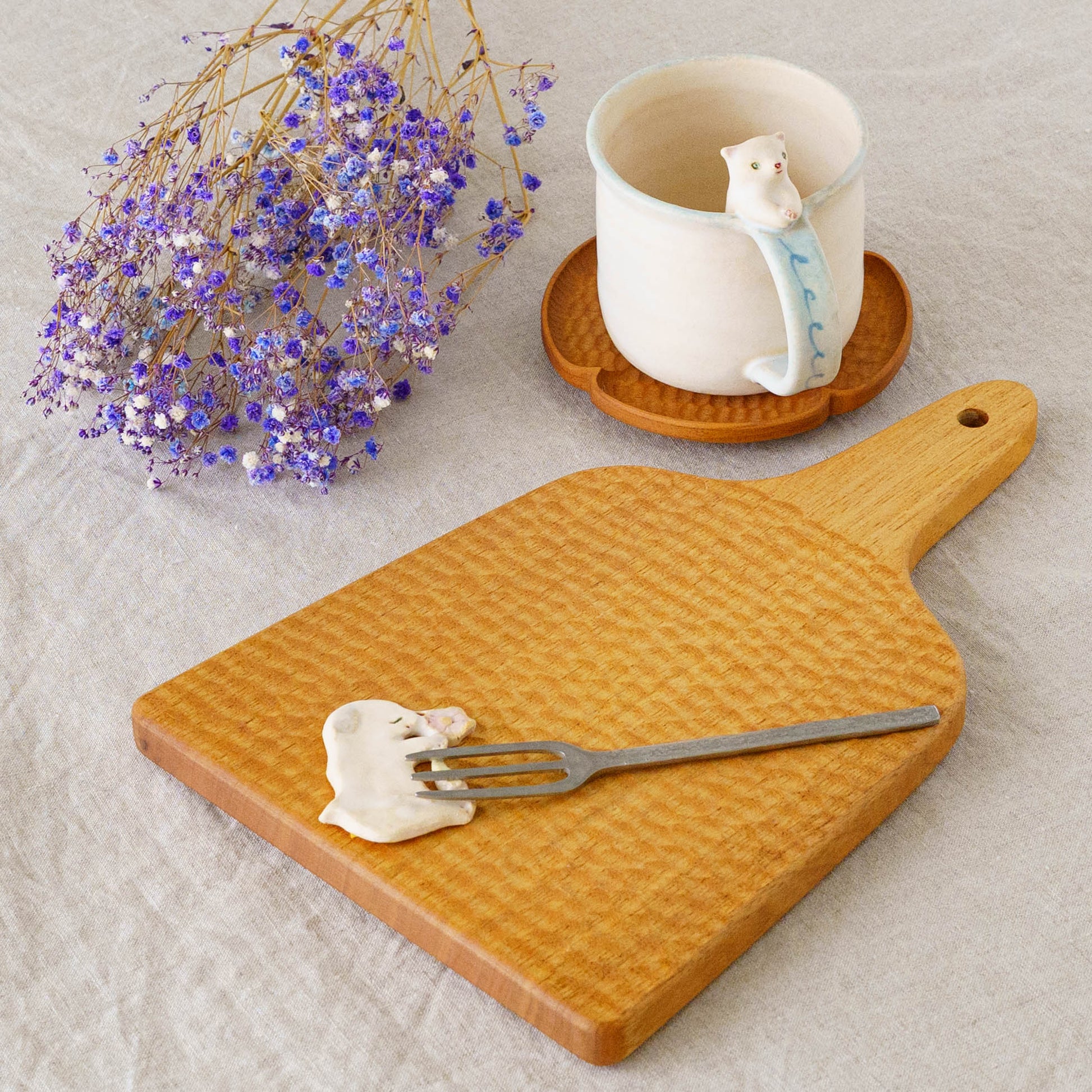 いつも見えるわけではない、どこかで息づいていそうな小さないきものたち。思わず話しかけたくなるような愛らしさがうつわやオブジェのかたちに宿り、ふんわりとした空気感とともに不思議な世界へ静かに誘ってくれます。