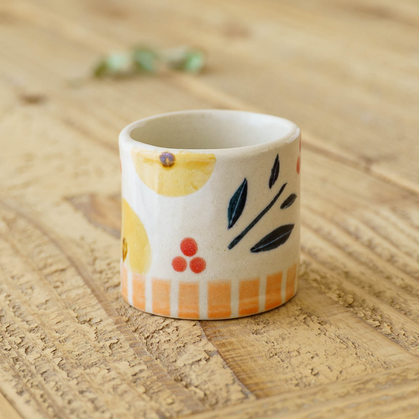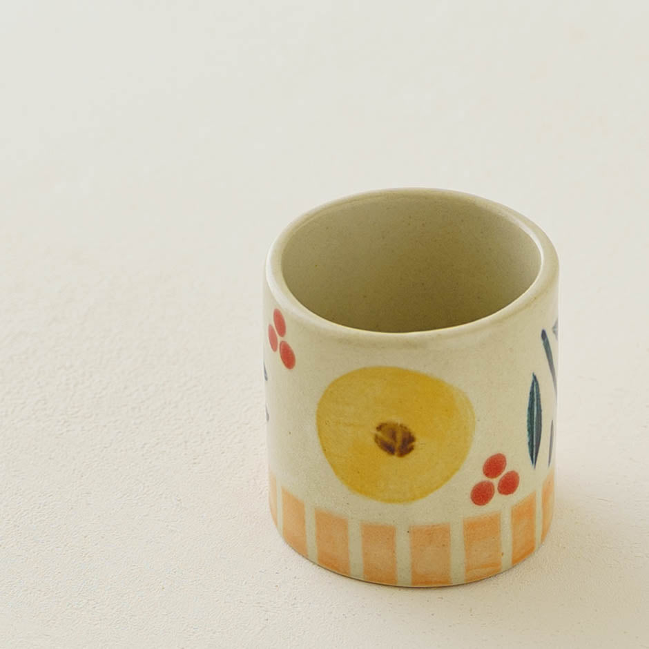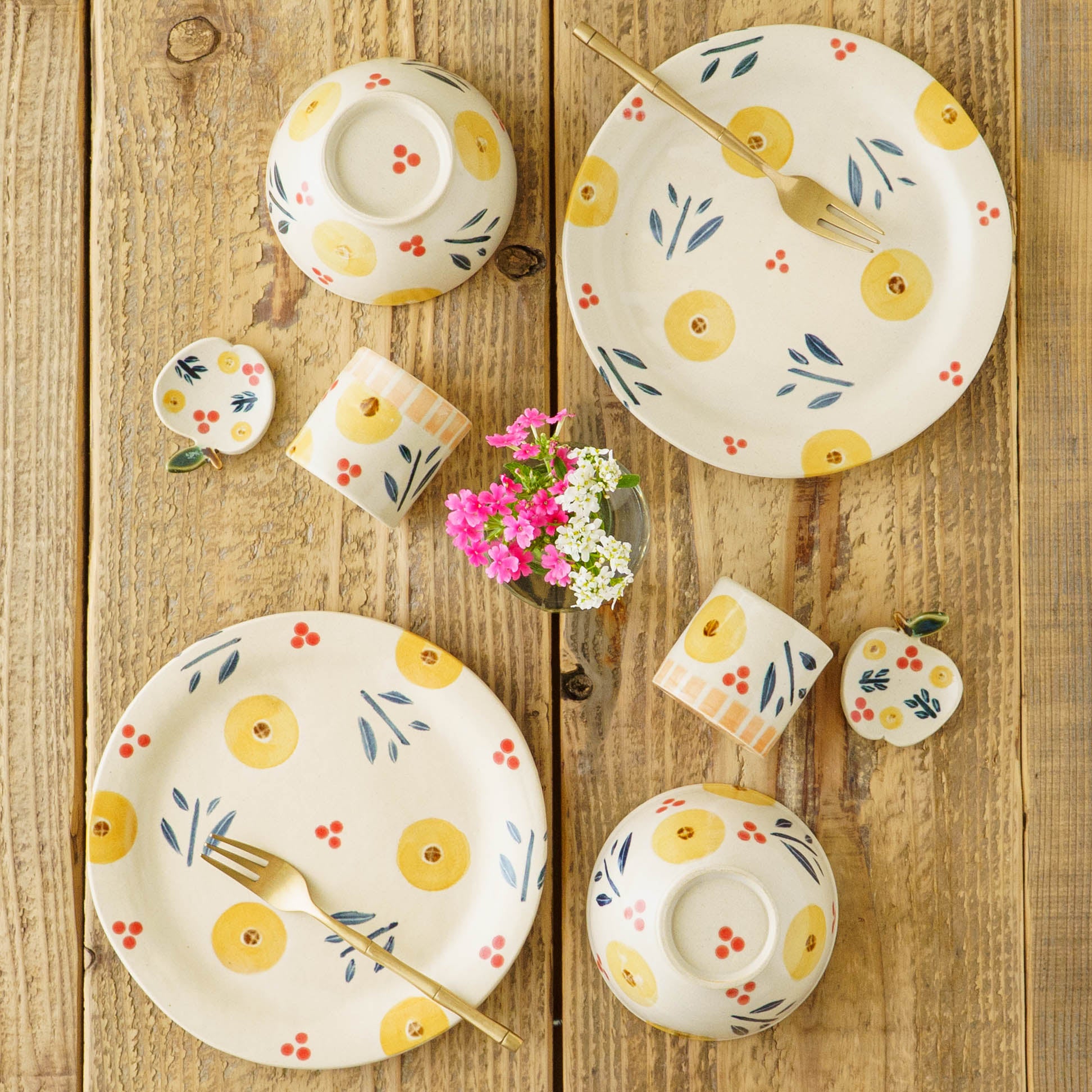 手にした時の指先に伝わる滑らかさと、存在感のある素朴な質感の対比が、土そのものと対話しているような感覚を与えてくれます。手に取るだけで心が自然と明るくなり、食卓を楽しく軽やかに演出してくれるそんなうつわです。
