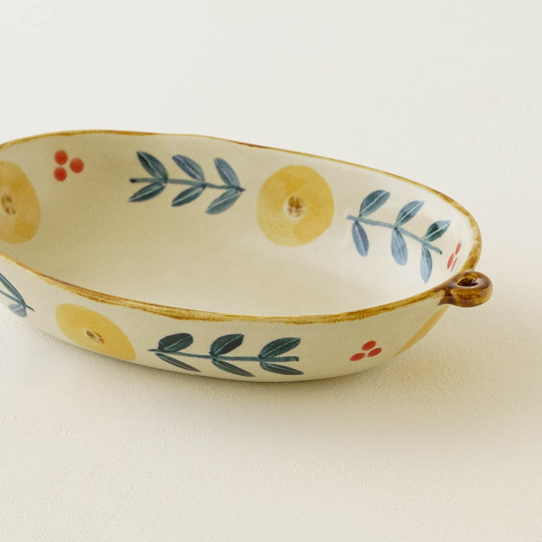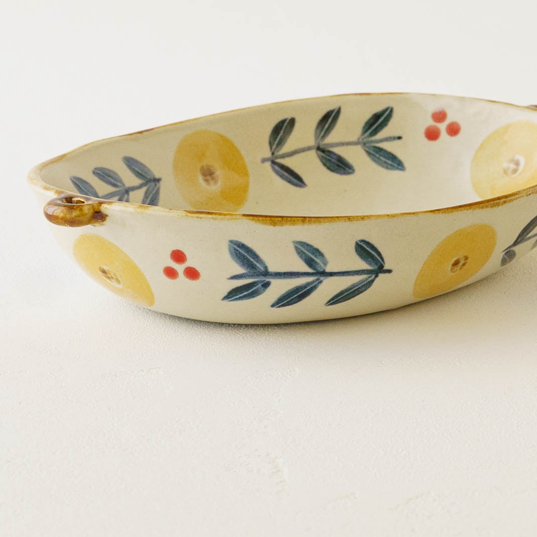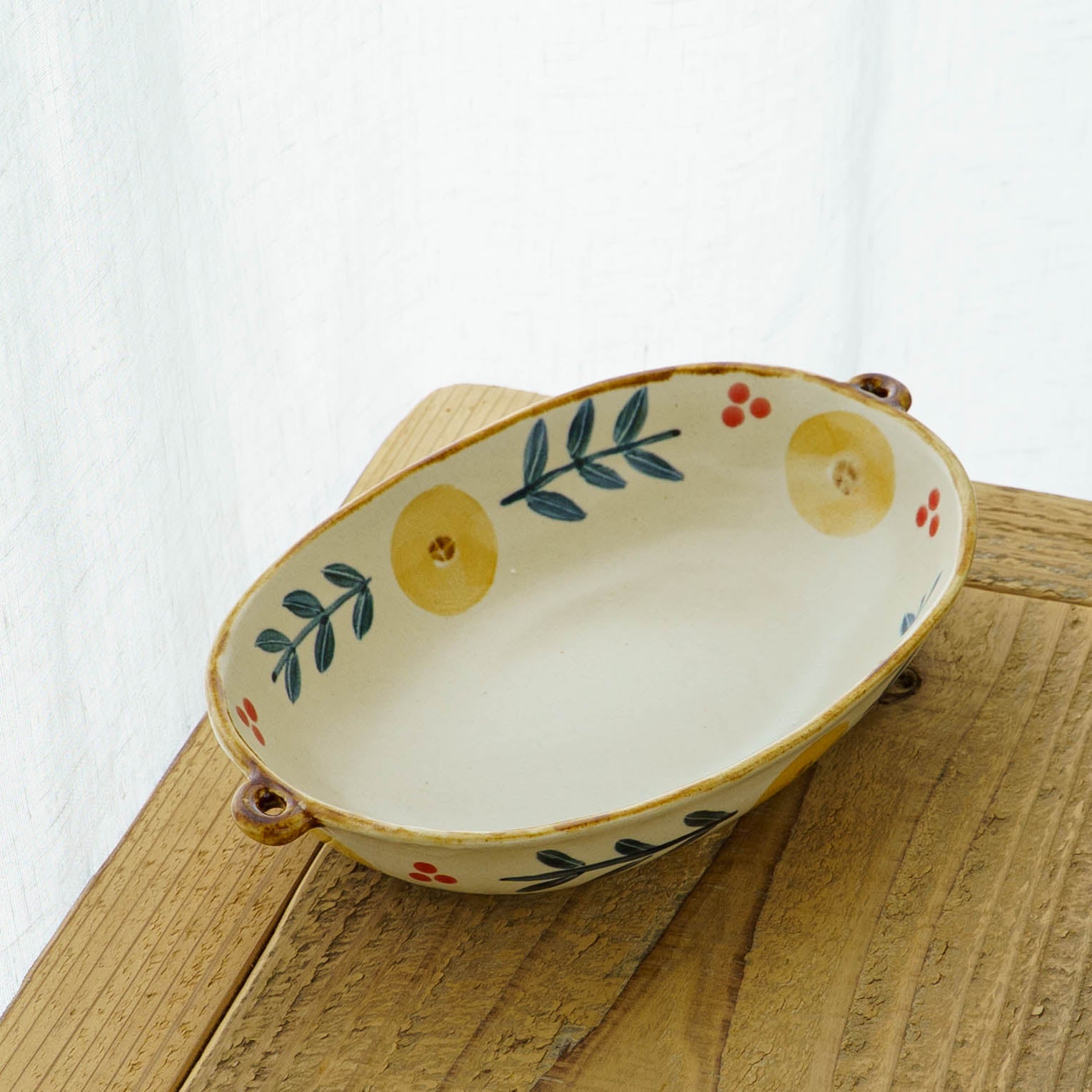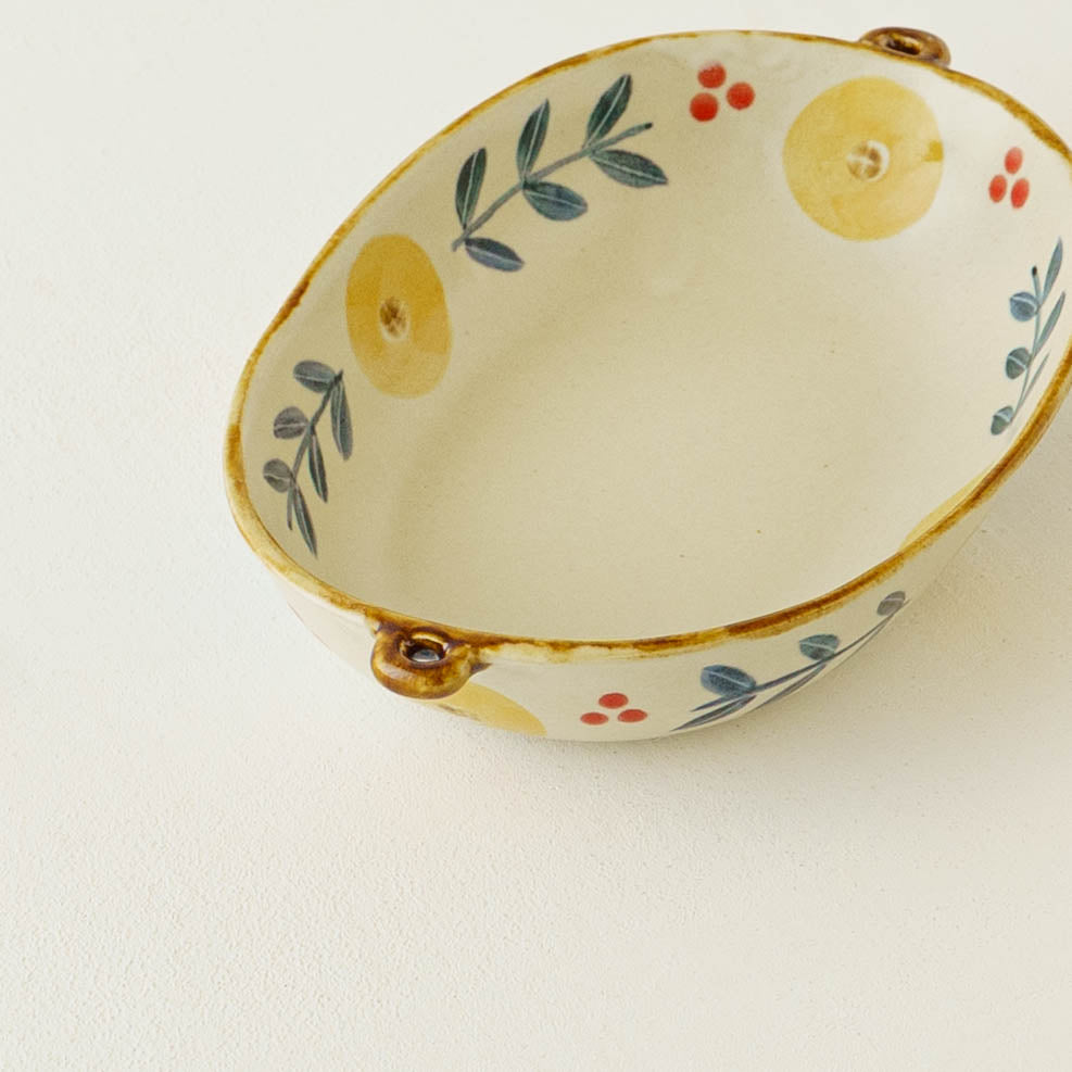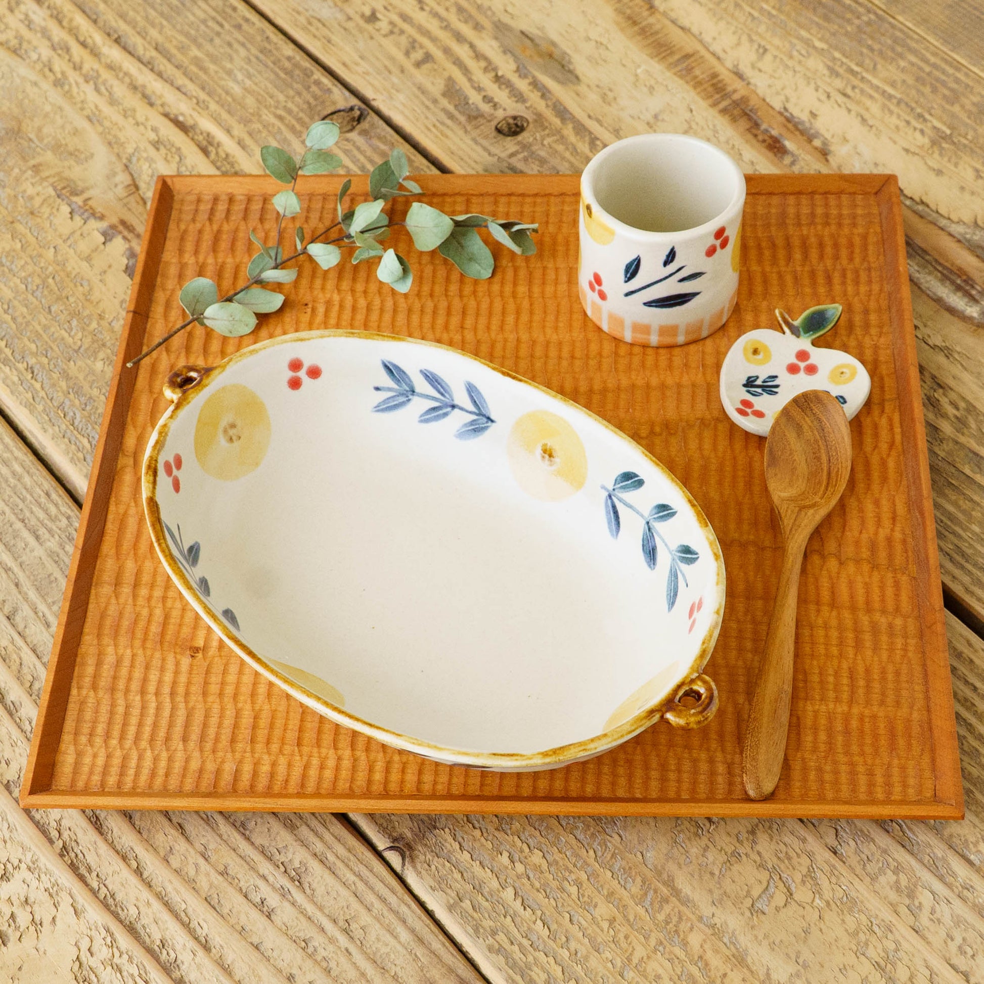 手にした時の指先に伝わる滑らかさと、存在感のある素朴な質感の対比が、土そのものと対話しているような感覚を与えてくれます。手に取るだけで心が自然と明るくなり、食卓を楽しく軽やかに演出してくれるそんなうつわです。