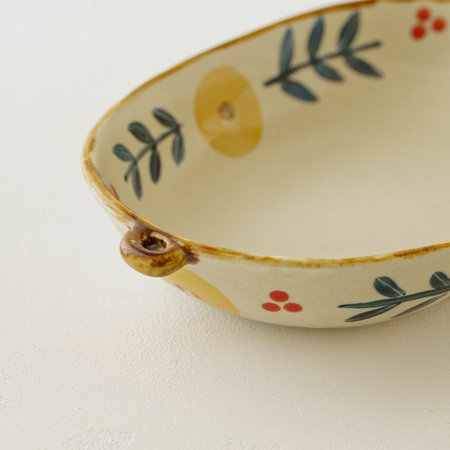 ろくろや板づくりを併用しながらひとつひとつ丁寧にかたちを整え、絵の具や釉薬を筆で絵付けし、さらに上から釉薬をかけていく、そんな手間ひまをかけた工程から生まれる心がこもった作品は、深みとあたたかみのある表情をもたらしています。