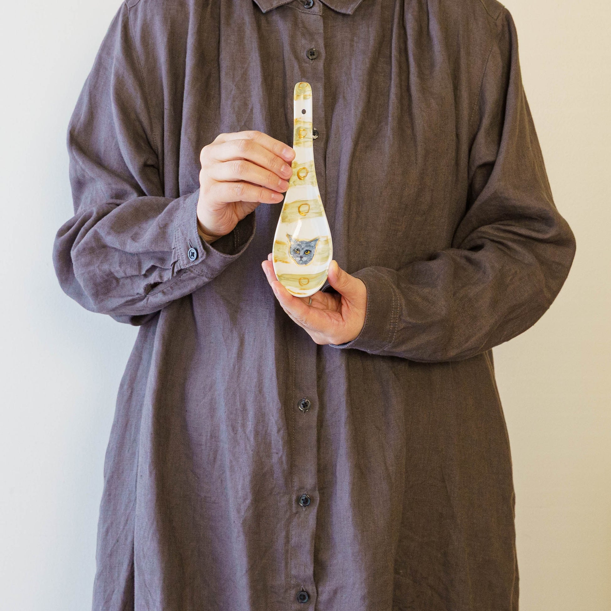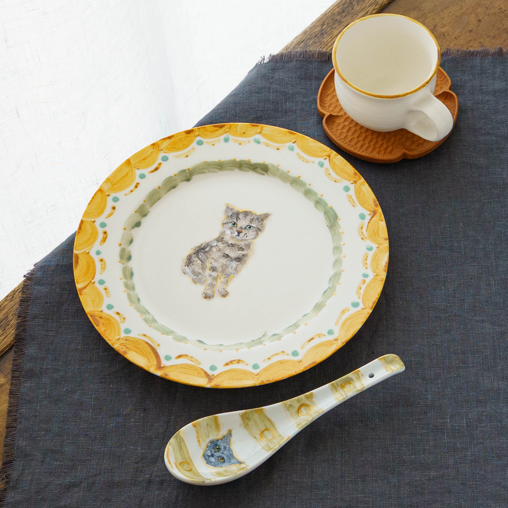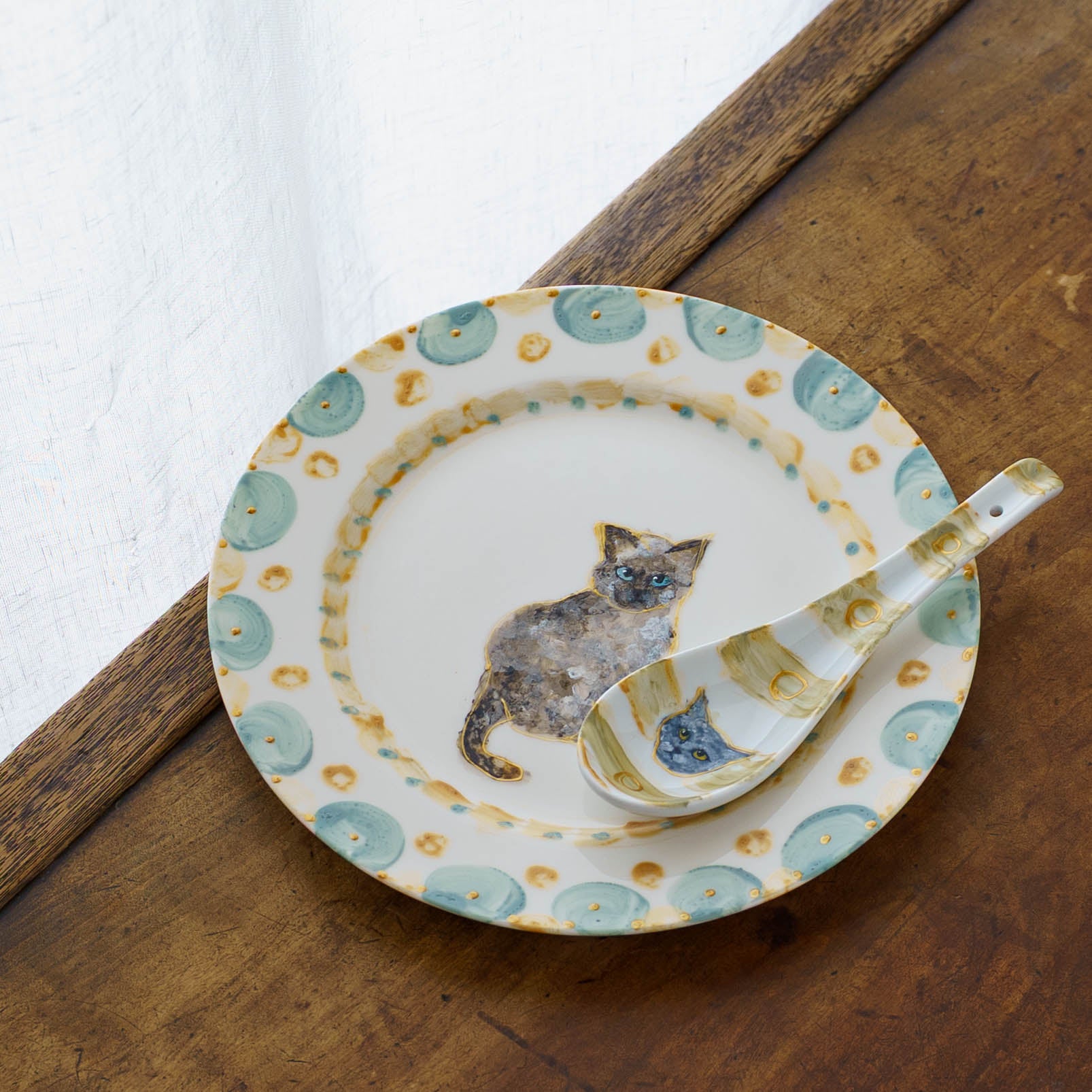 表情豊かな木彫りの猫から、のびやかな猫のポーズやふわふわの毛並みが軽やかに描かれたうつわやガラスへの絵付け。木彫りと絵付け、行き来する制作の中で、互いに刺激を受けながら猫の世界は少しずつ広がっています。