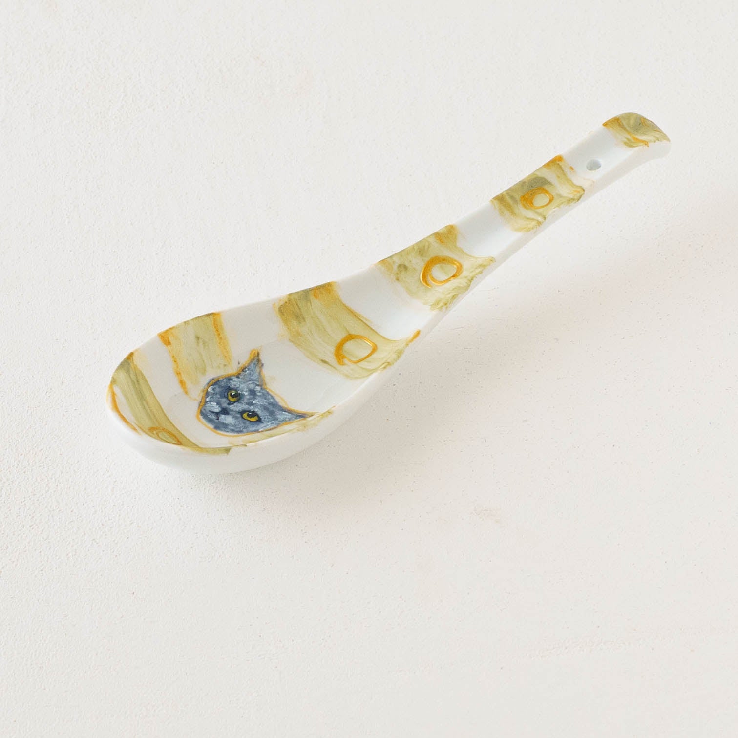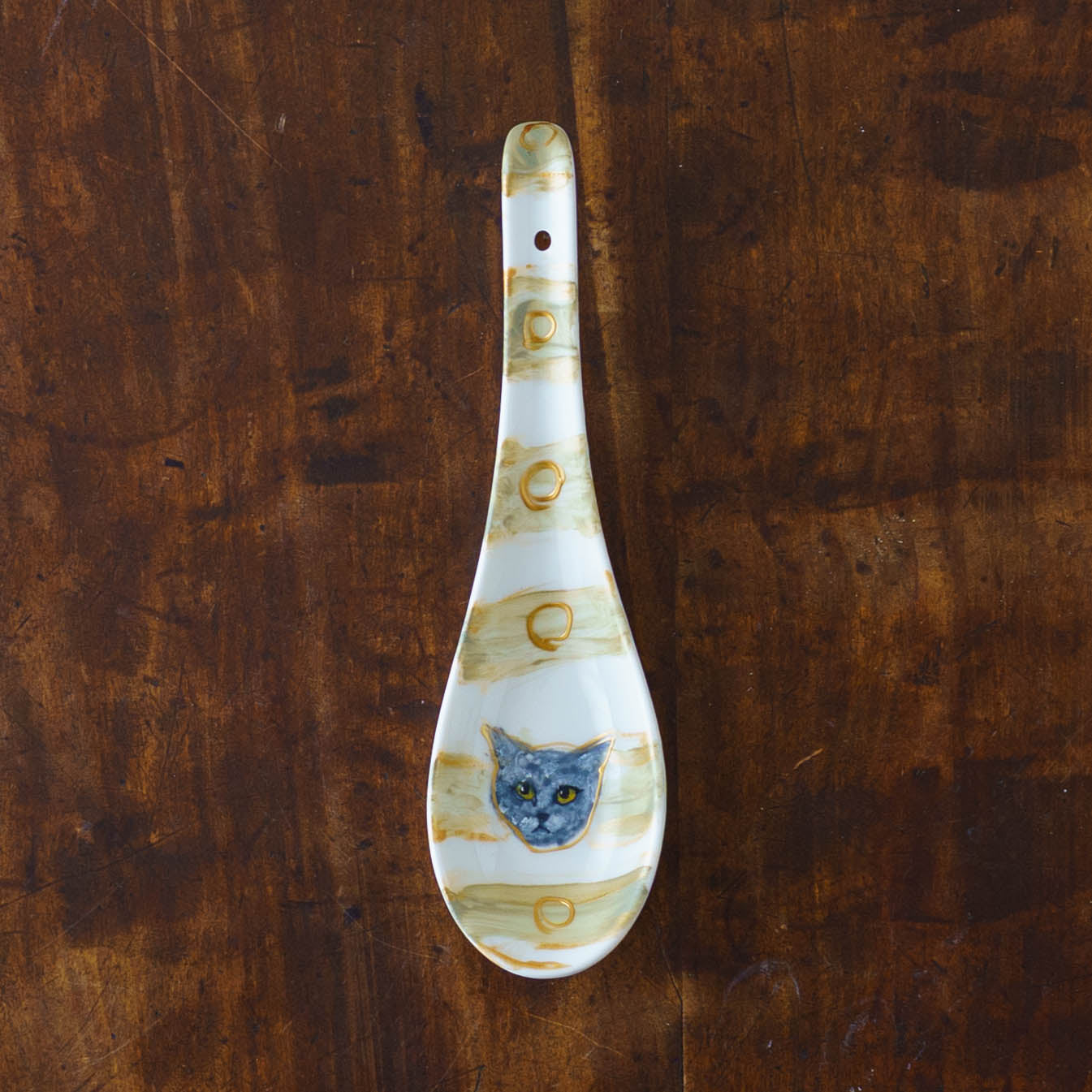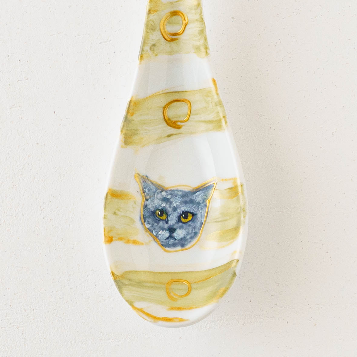 表情豊かな木彫りの猫から、のびやかな猫のポーズやふわふわの毛並みが軽やかに描かれたうつわやガラスへの絵付け。木彫りと絵付け、行き来する制作の中で、互いに刺激を受けながら猫の世界は少しずつ広がっています。