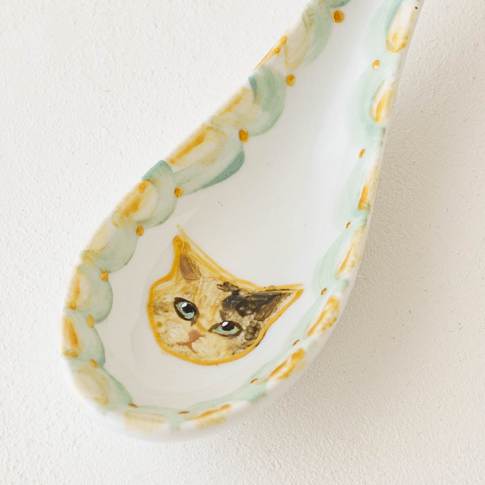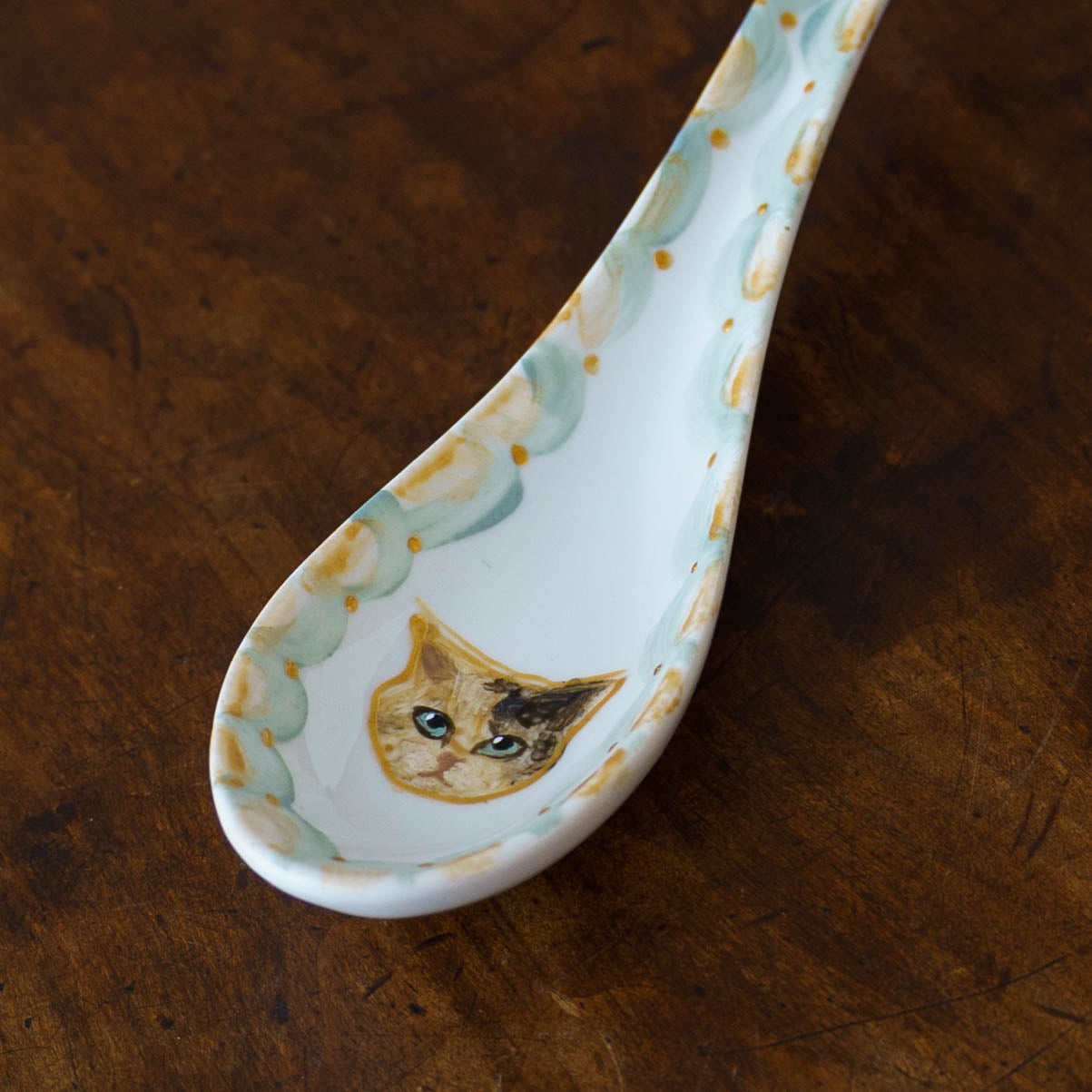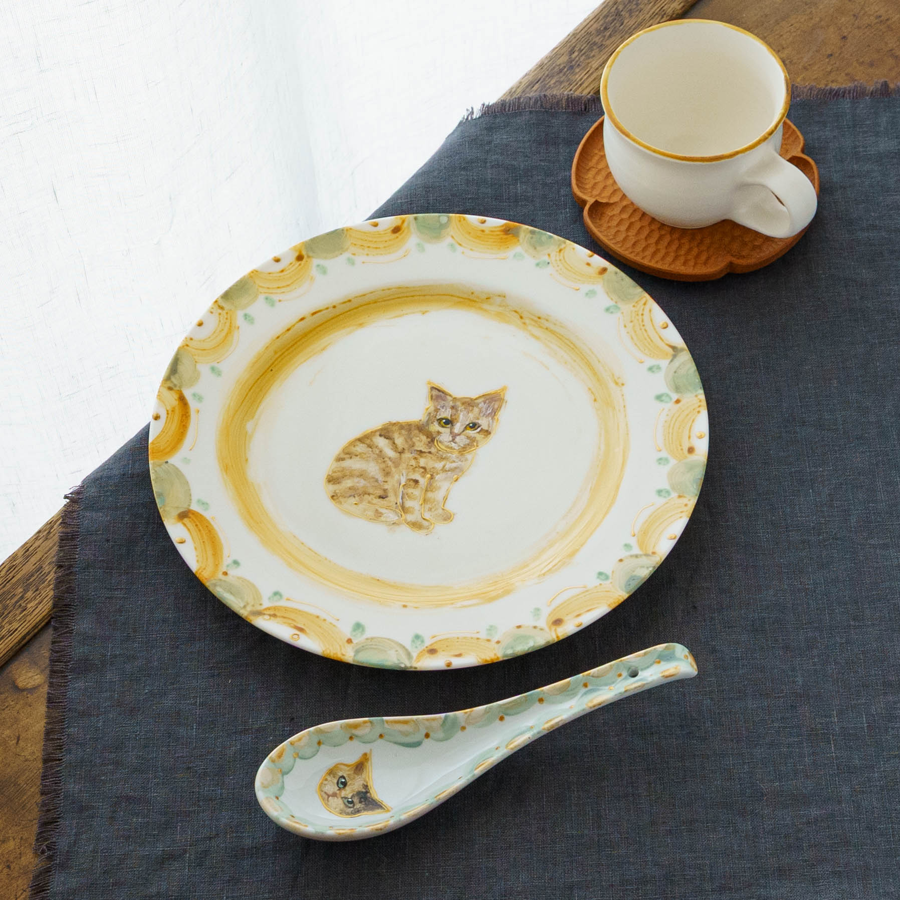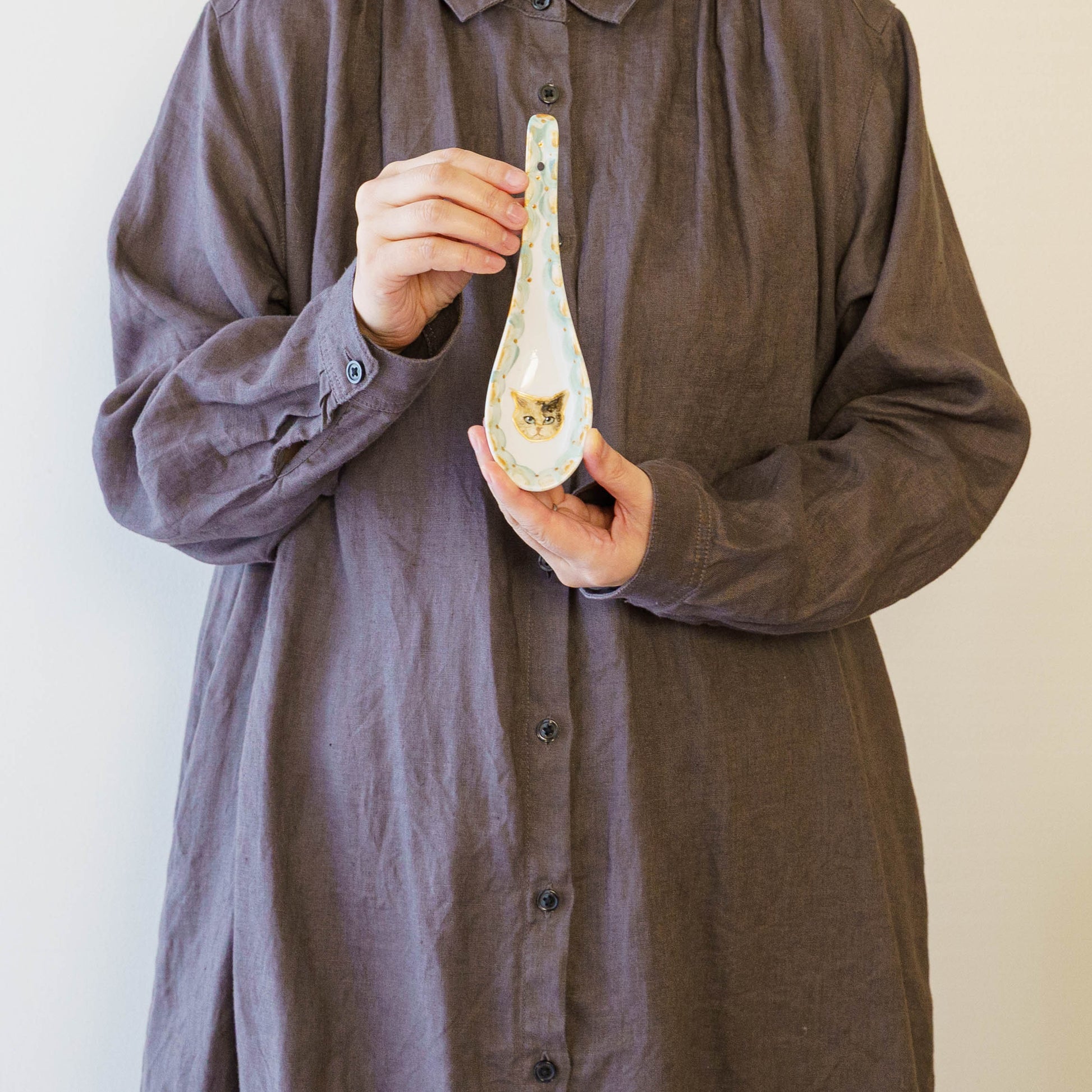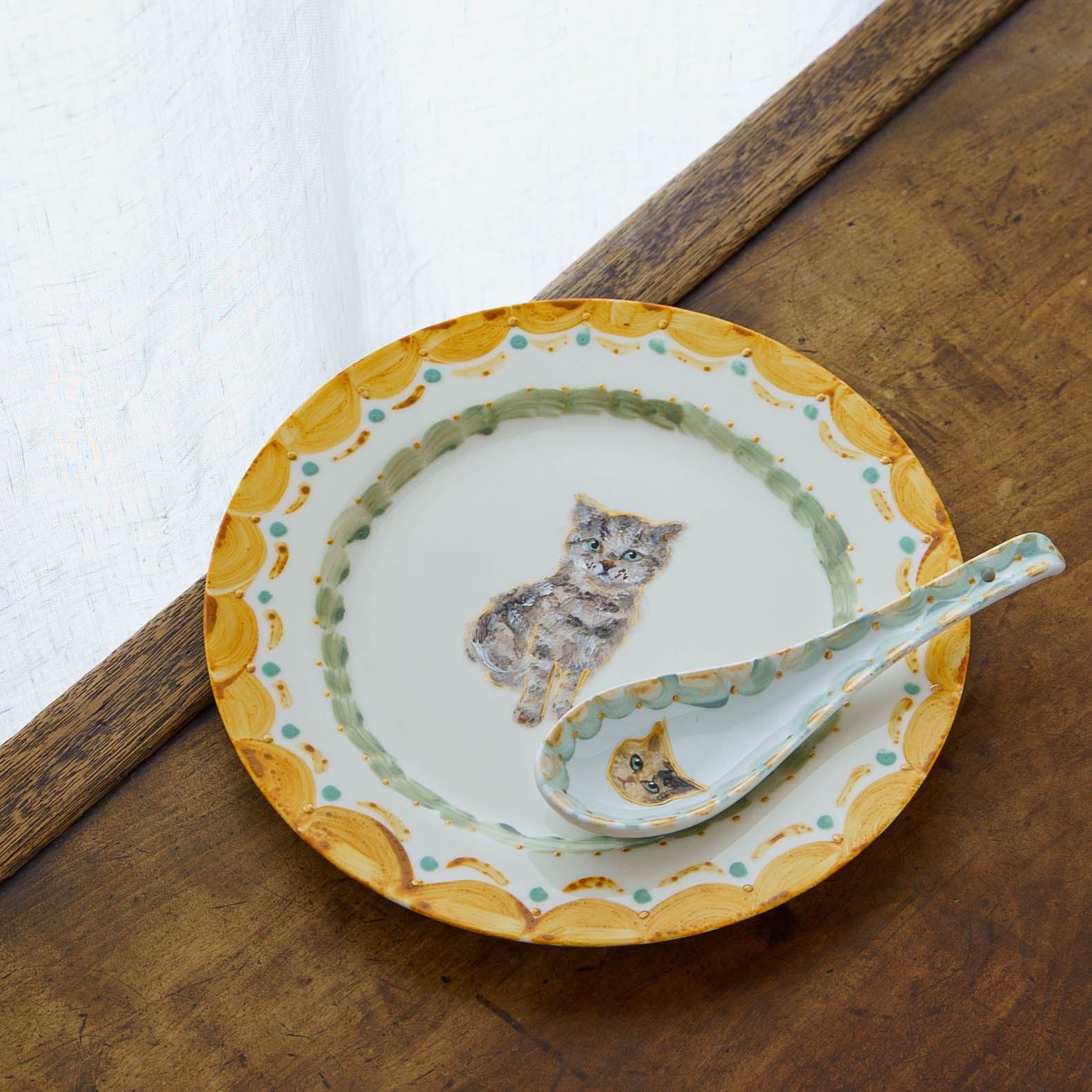 表情豊かな木彫りの猫から、のびやかな猫のポーズやふわふわの毛並みが軽やかに描かれたうつわやガラスへの絵付け。木彫りと絵付け、行き来する制作の中で、互いに刺激を受けながら猫の世界は少しずつ広がっています。
