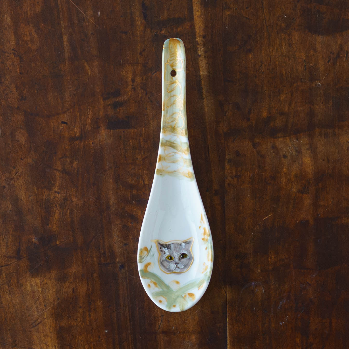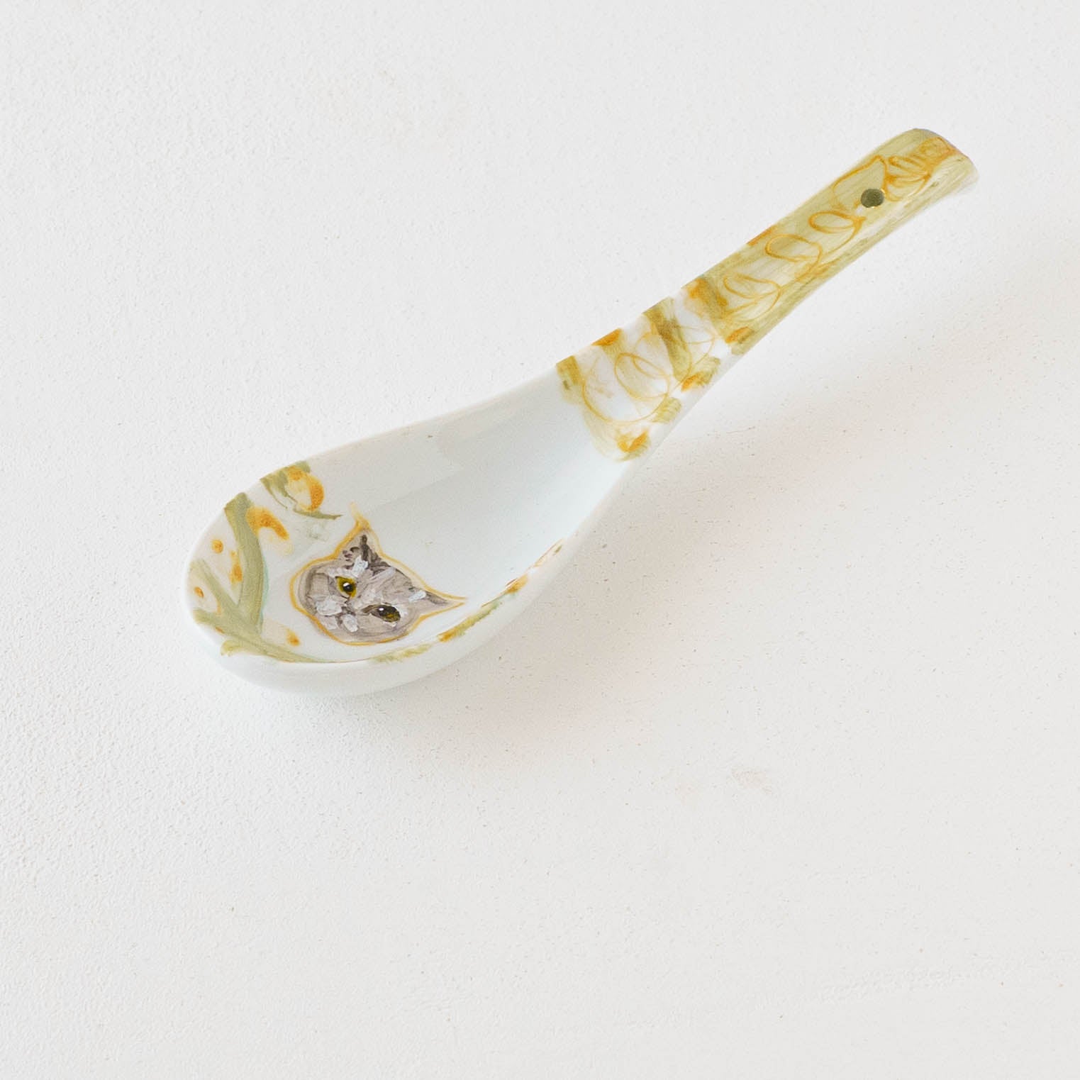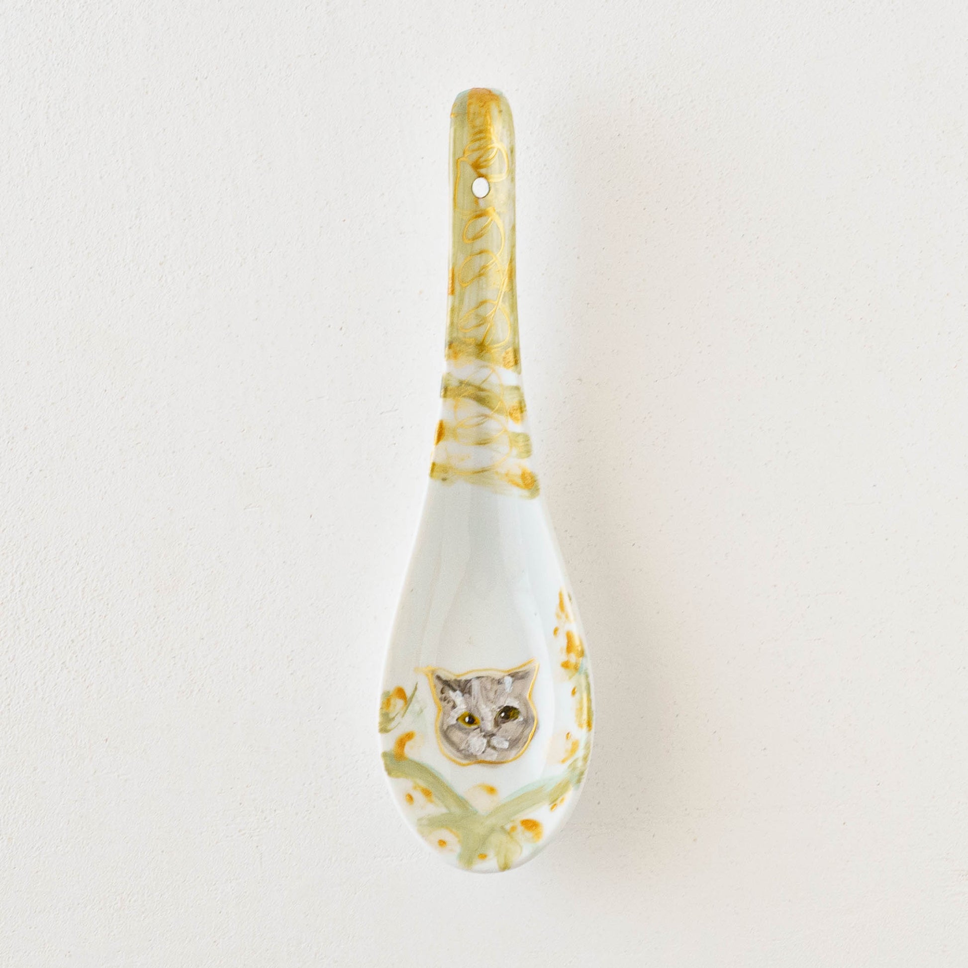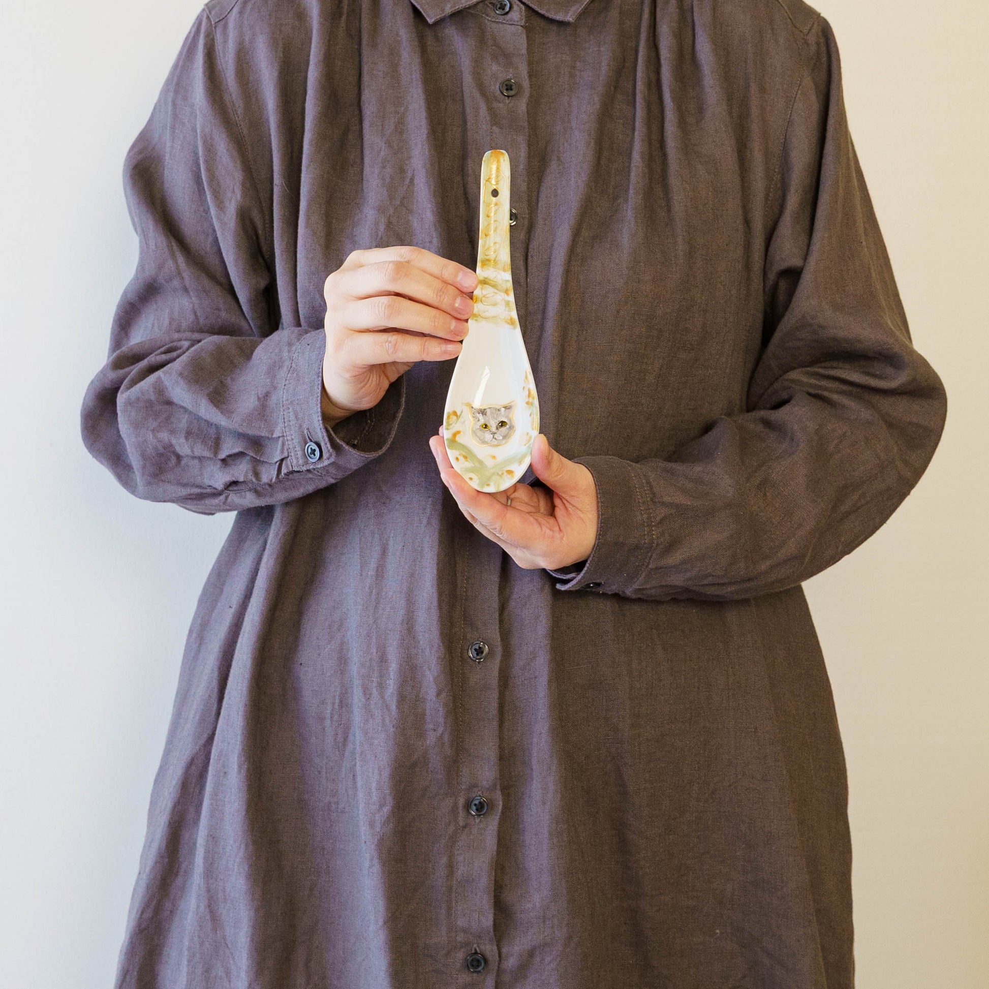 表情豊かな木彫りの猫から、のびやかな猫のポーズやふわふわの毛並みが軽やかに描かれたうつわやガラスへの絵付け。木彫りと絵付け、行き来する制作の中で、互いに刺激を受けながら猫の世界は少しずつ広がっています。