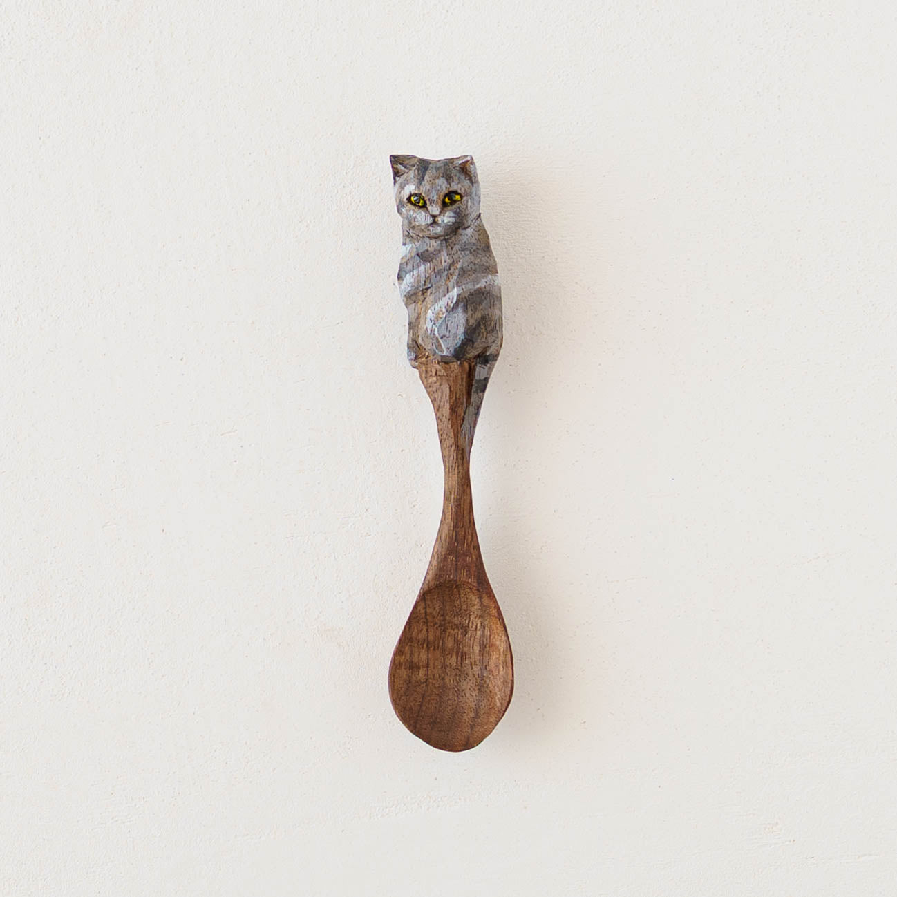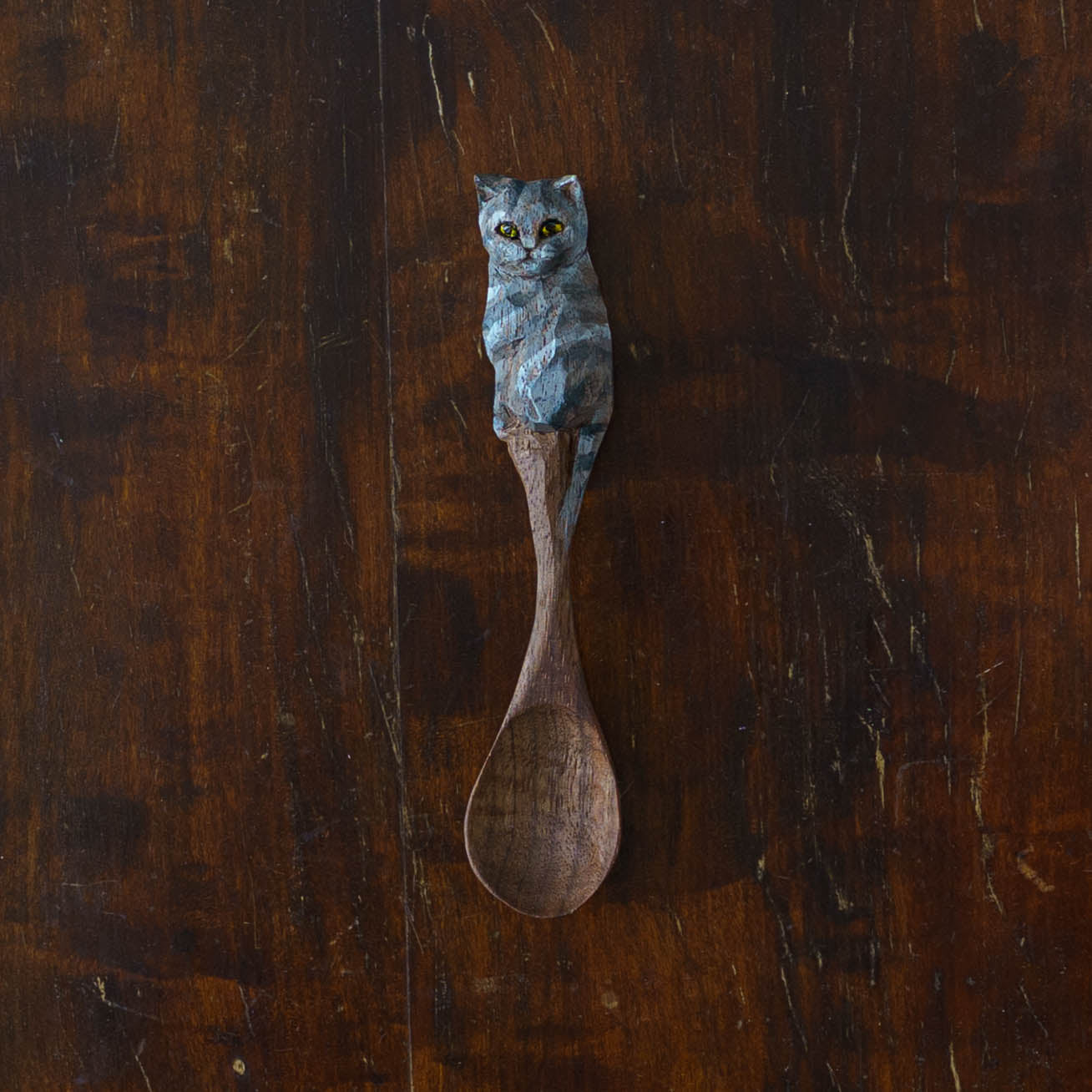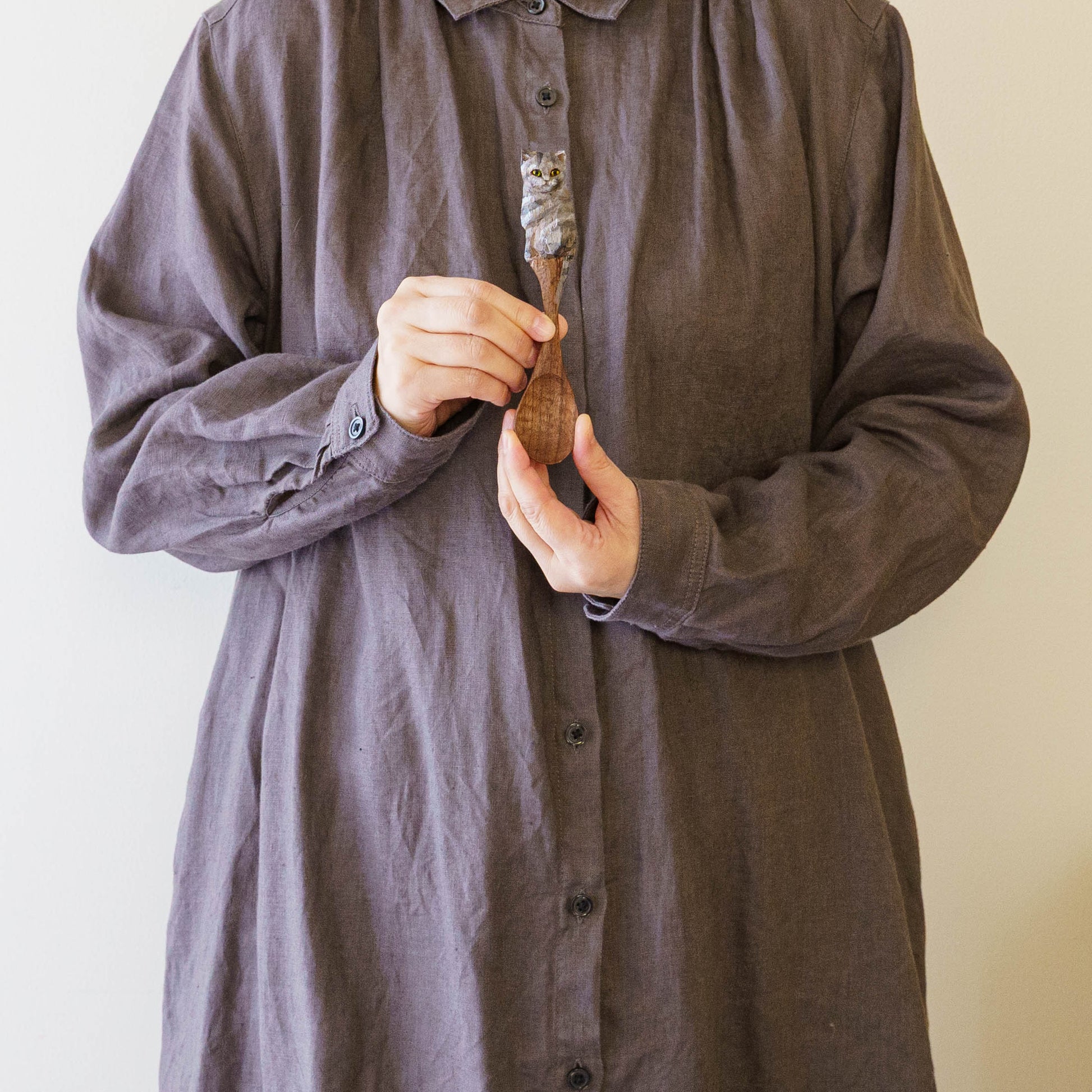 表情豊かな木彫りの猫から、のびやかな猫のポーズやふわふわの毛並みが軽やかに描かれたうつわやガラスへの絵付け。木彫りと絵付け、行き来する制作の中で、互いに刺激を受けながら猫の世界は少しずつ広がっています。