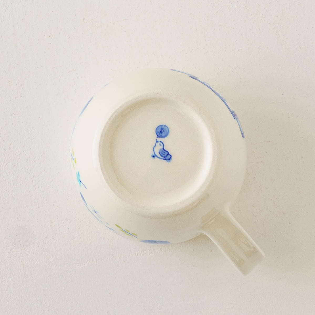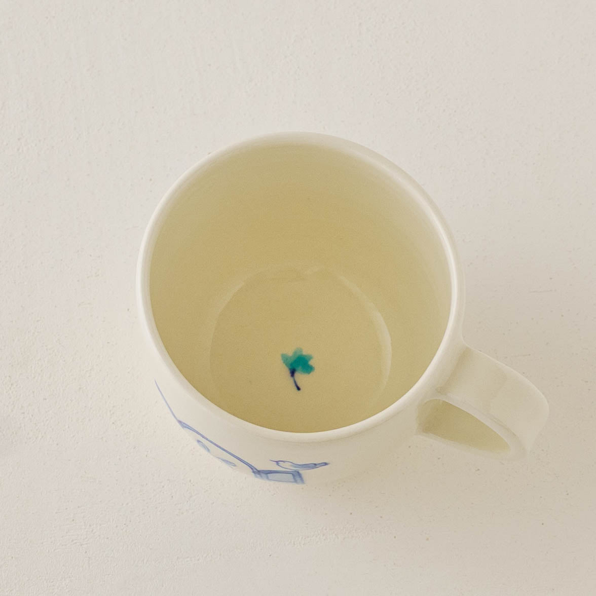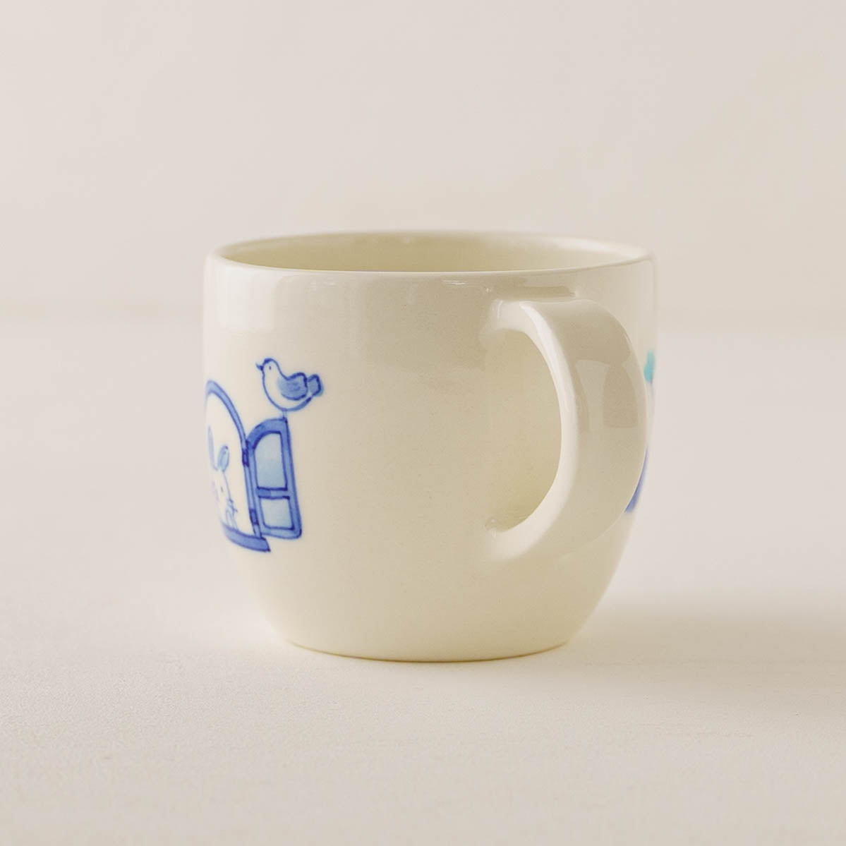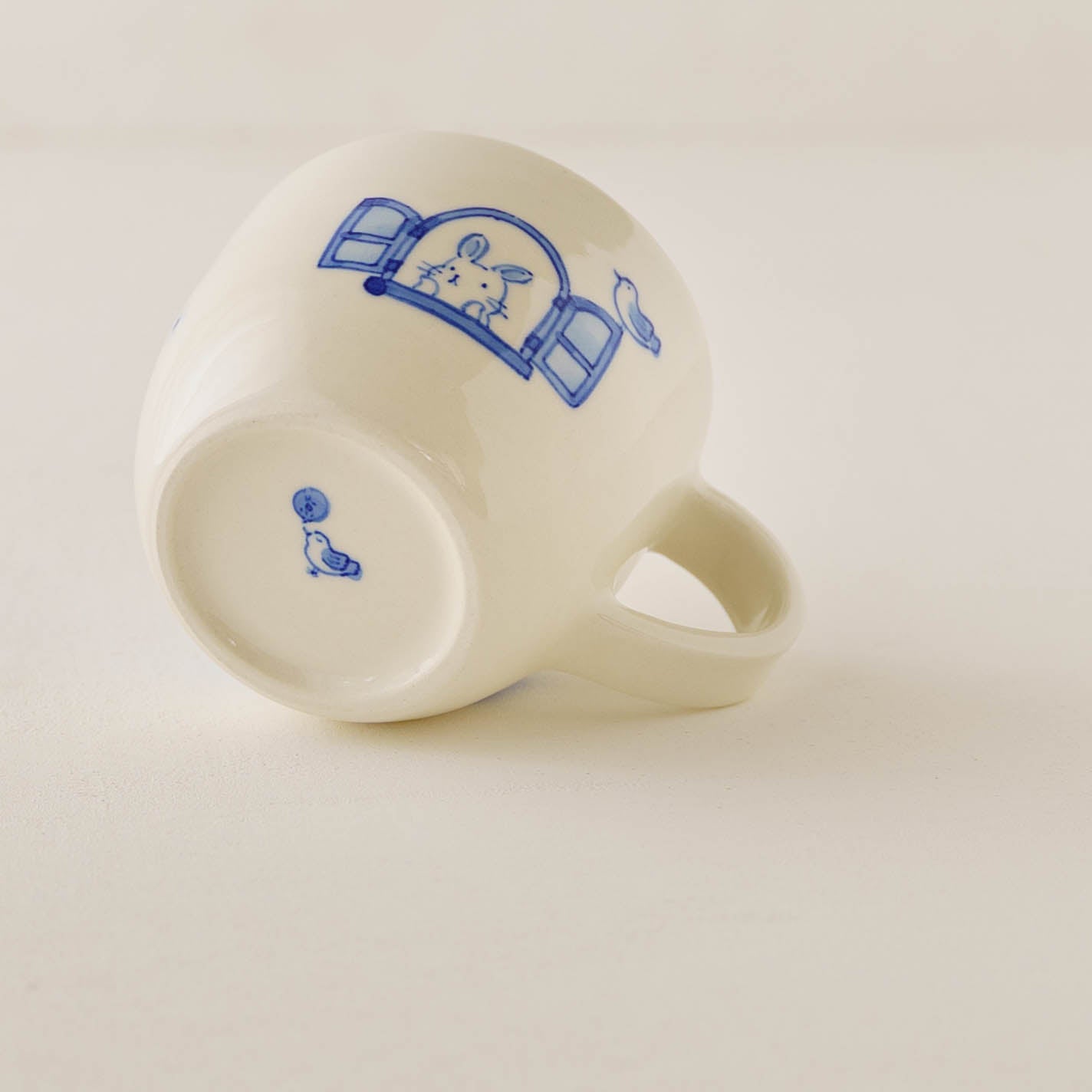 2匹の愛猫と暮らすなかで生まれた発想と、古い染め付けのうつわに対する愛情を大切にしながら、染め付け技法を用いてやさしいタッチでのびやかに描いています。どこかお茶目な表情のどうぶつたちが、いたるところに描かれ、まるでかくれんぼしているような面白さが散りばめられています。手に取るたびにほっこりあたたかな気持ちにしてくれます。