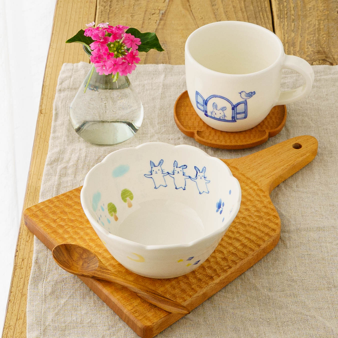 手をつないで海水浴をしていたり、のんびり窓の外をめていたり、じっと見つめているいじらしい表情など、見ているだけで思わずくすっと笑ってしまう愛らしいどうぶつたち。食卓に並べれば、楽しい世界が広がり、毎日の食事がもっと特別な時間にしてくれます。