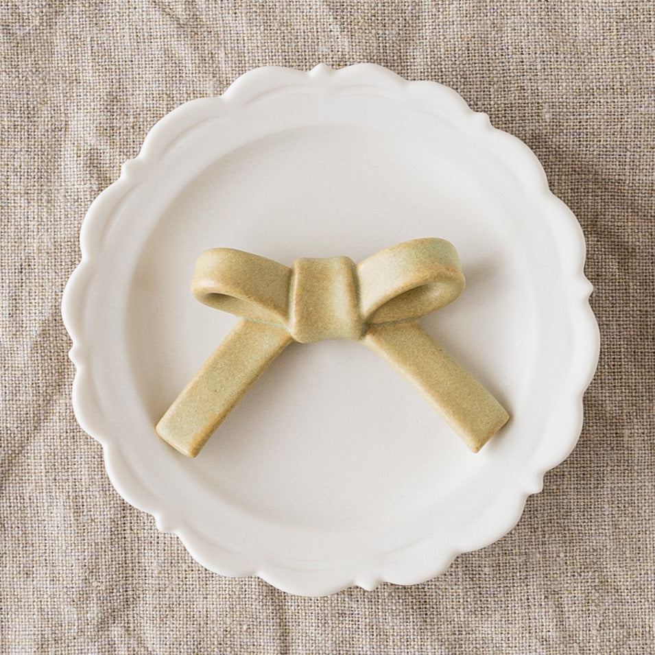 思わず「かわいい!」と声が出てしまうなんとも愛らしいペールグリーンーのリボンの箸置き。食卓にちょこんと置くだけで明るくなって可愛い雰囲気を演出してくれます。