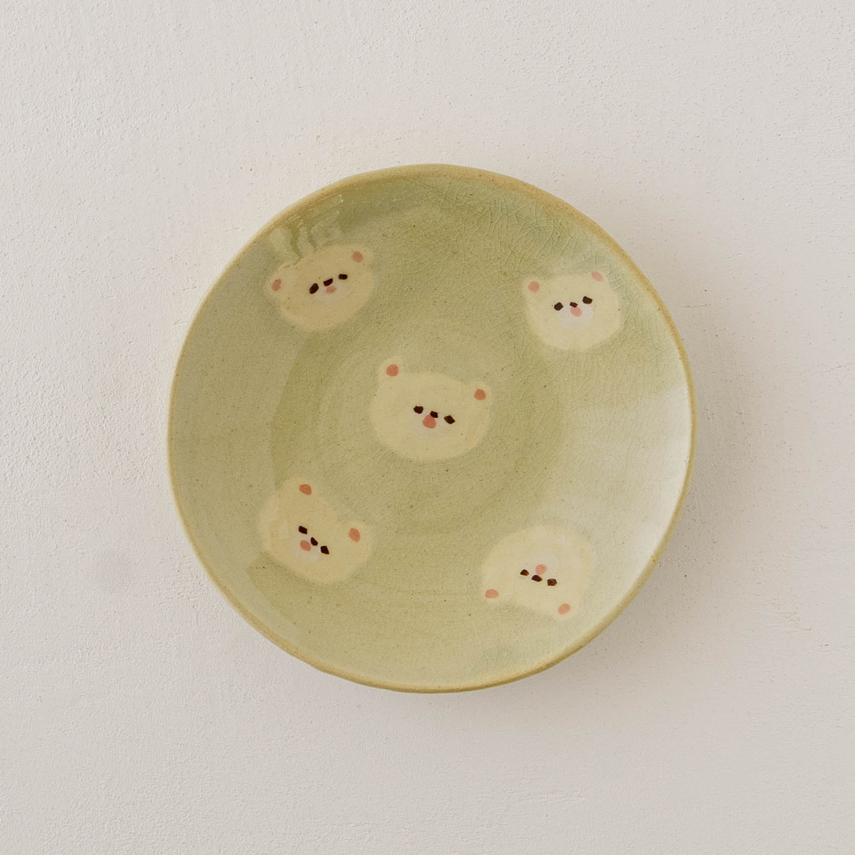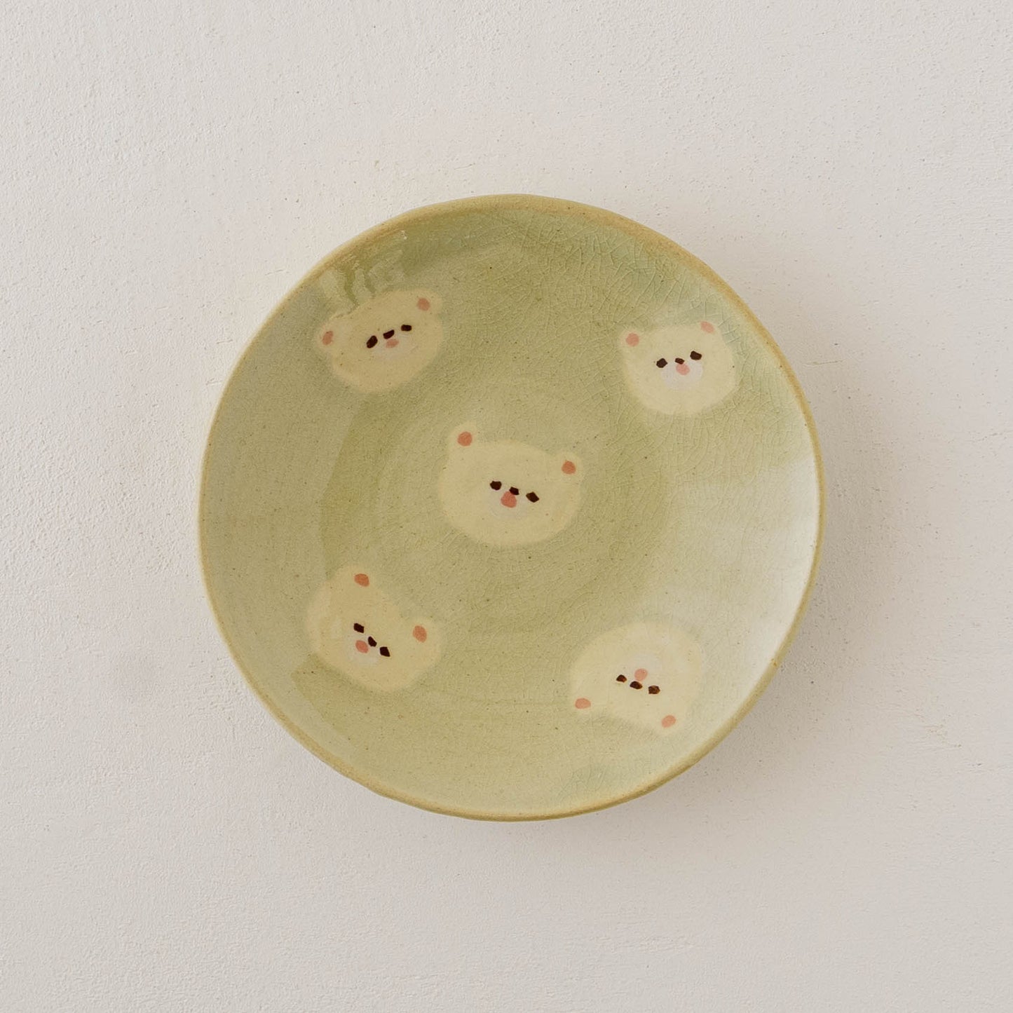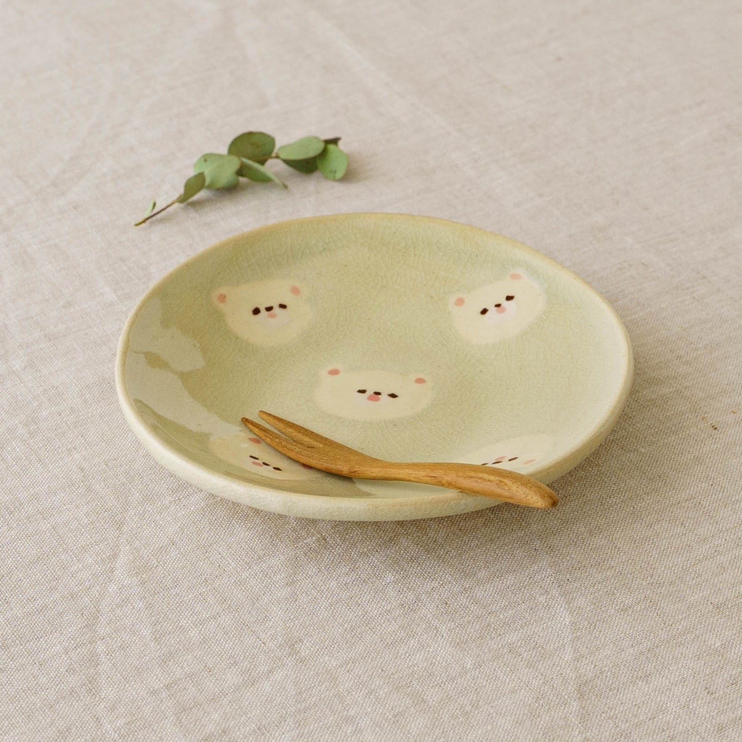クマの顔が散りばめられたなんとも愛らしい取皿。おかずの取り皿はもちろん、お団子や大福、焼き菓子やカップケーキなど載せるとかわいさが増して楽しいおやつタイムにしてくれます。