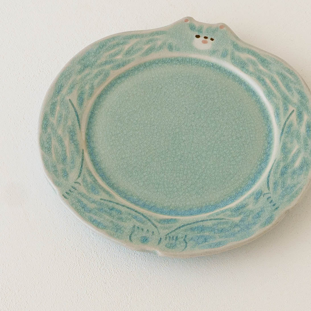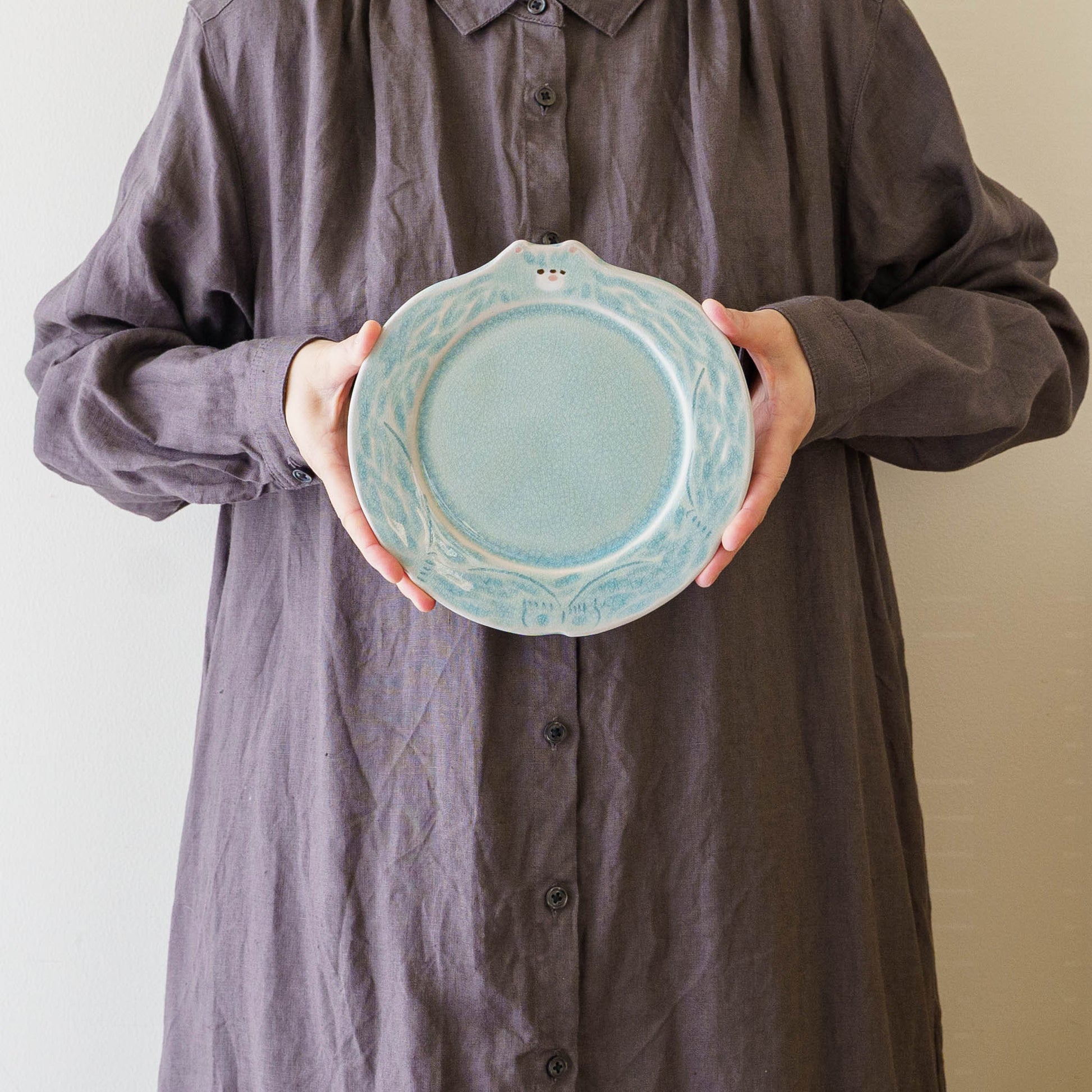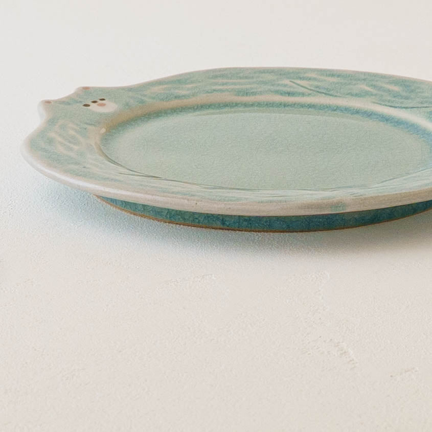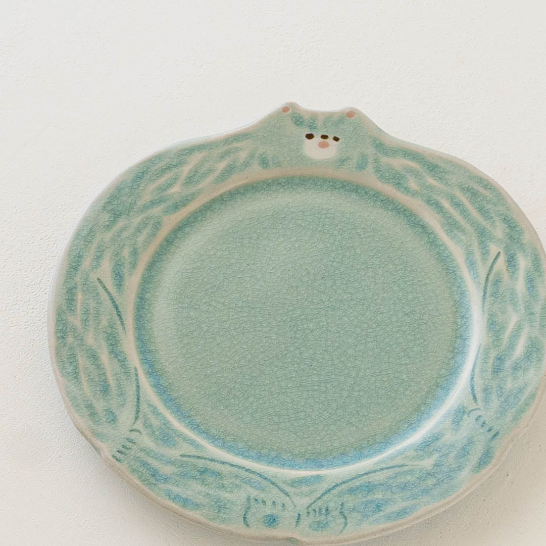 ほけっとしたクマの表情がキュートなリム皿。トースト、ハムエッグ、サラダを載せてモーニングプレートにしたり、シフォンケーキやミルフィーユなどおやつタイムを楽しんだりなど、どんな時も気分が上がって特別なひとときにしてくれます。