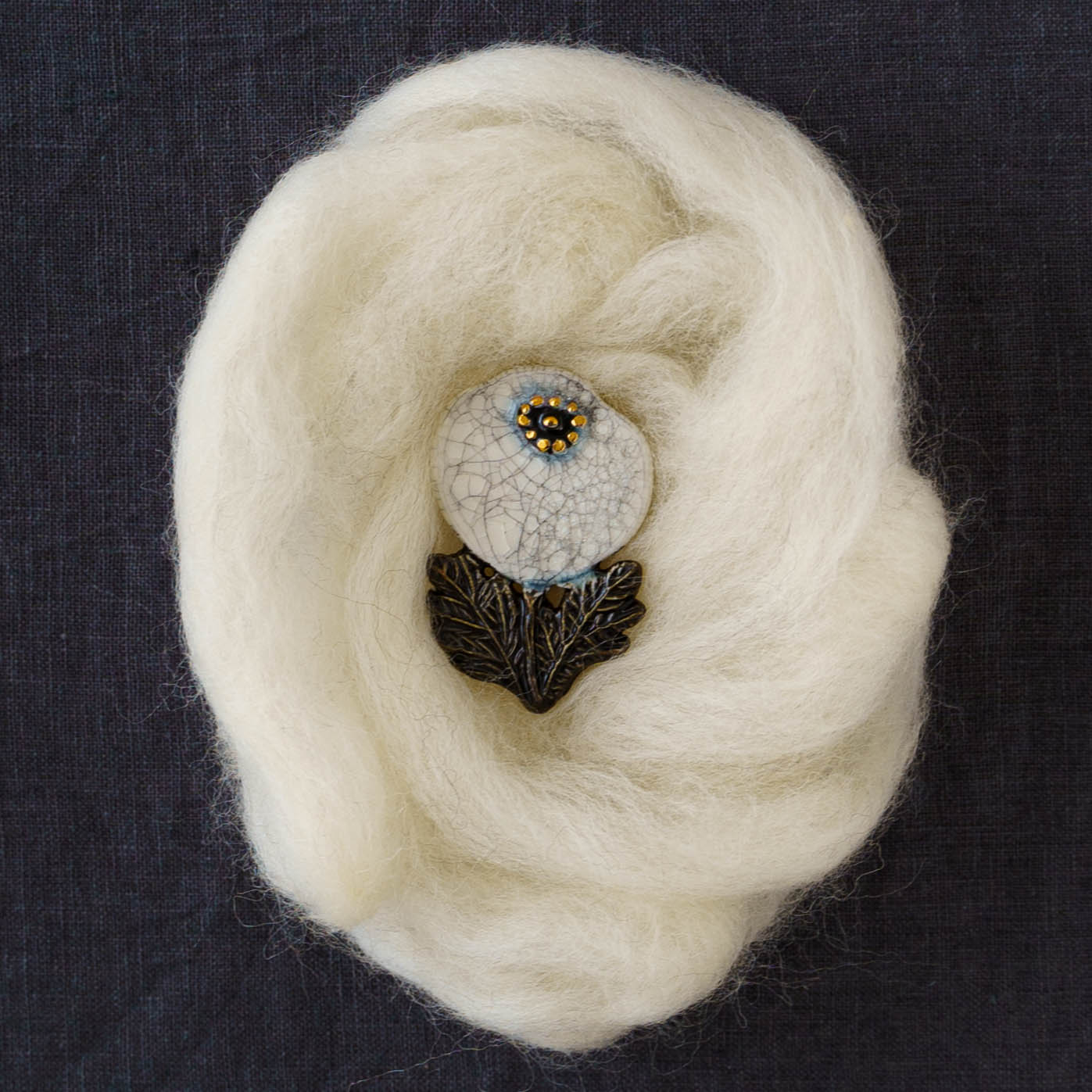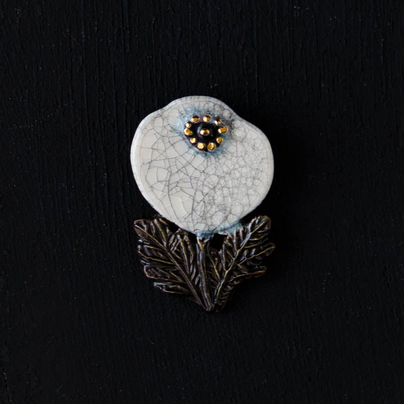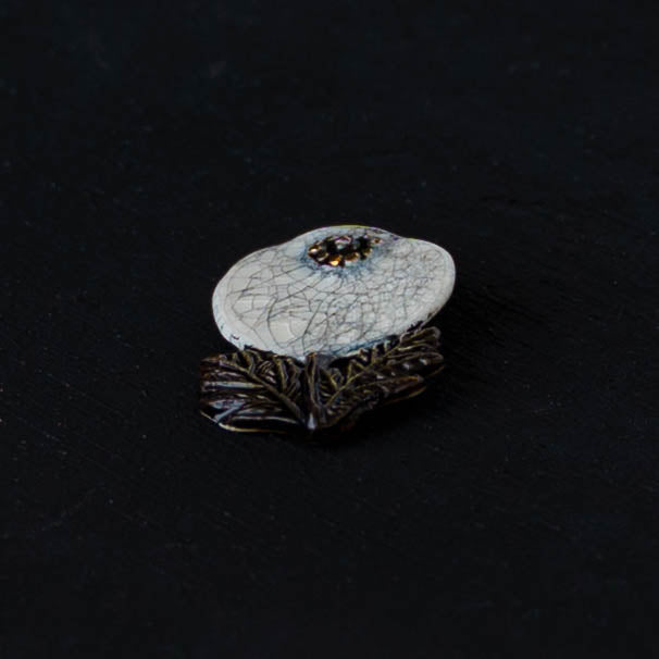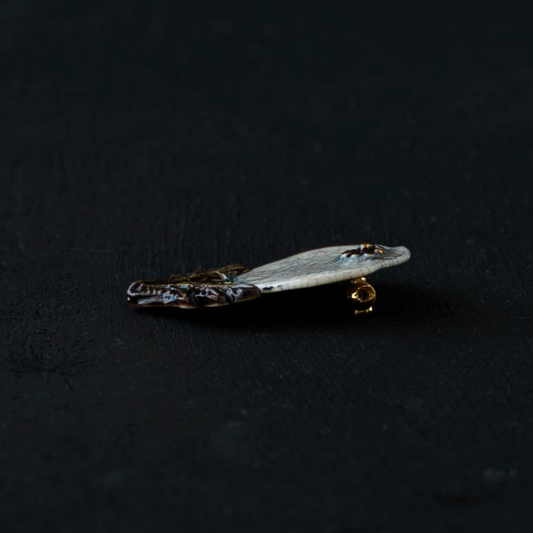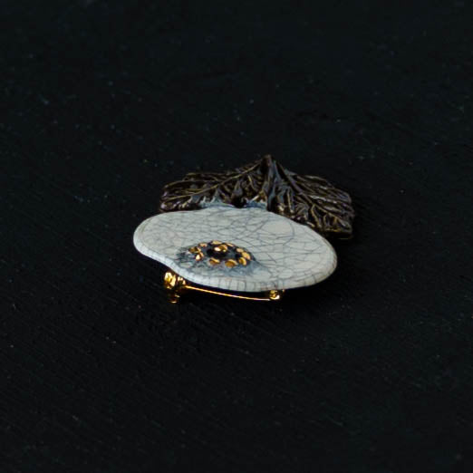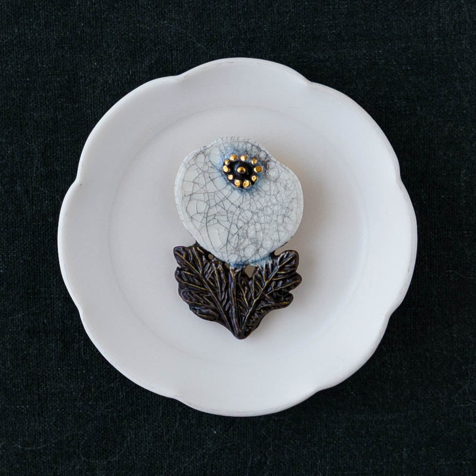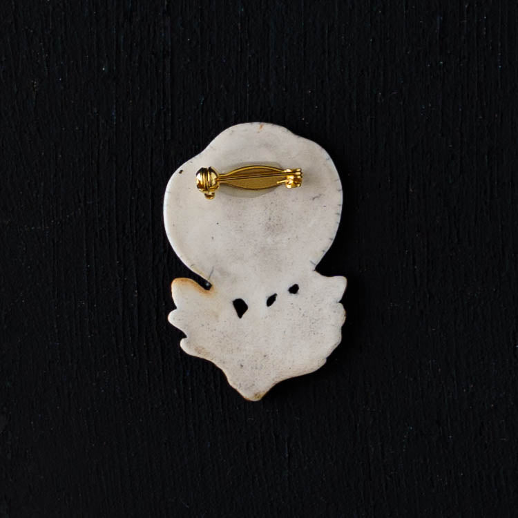 クラシカルな雰囲気と上品な可愛らしさを併せ持った素敵な陶製のブローチ。胸元をかわいく華やかに演出してくれます。ブローチ金具は真鍮に金メッキとなります。