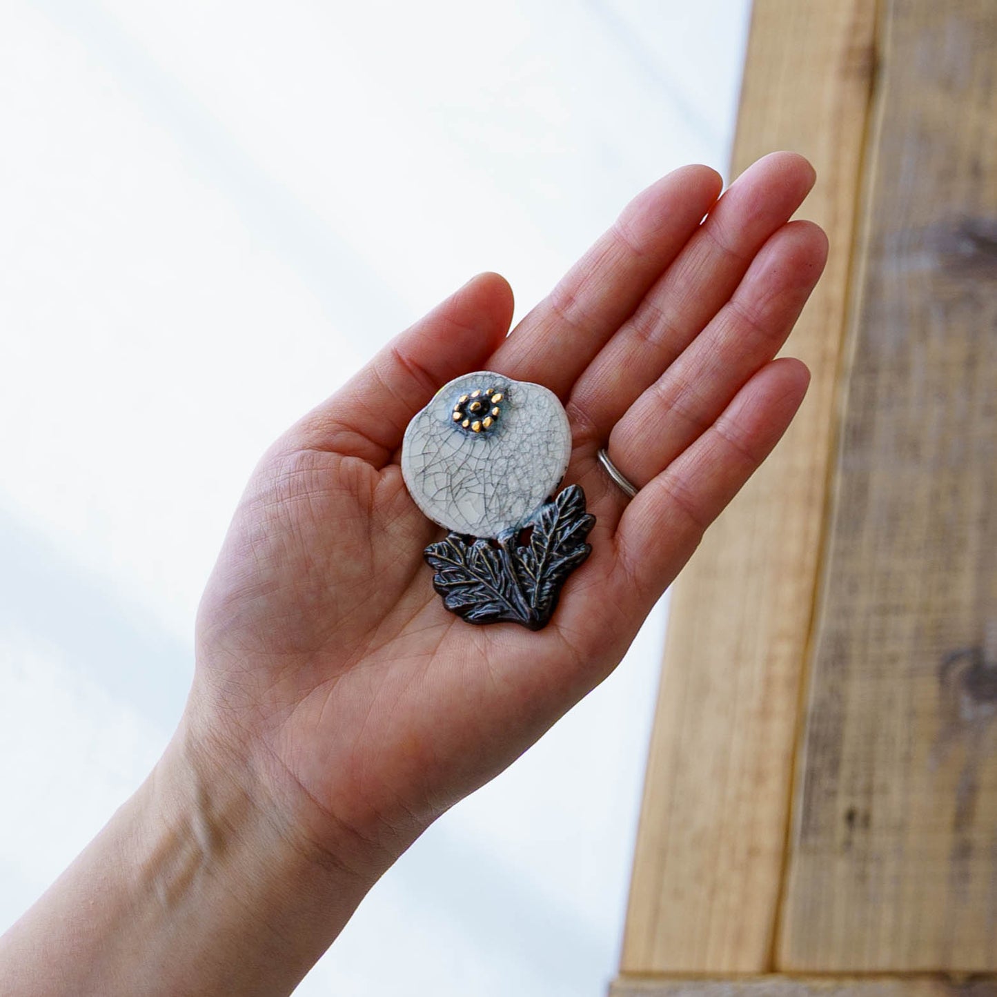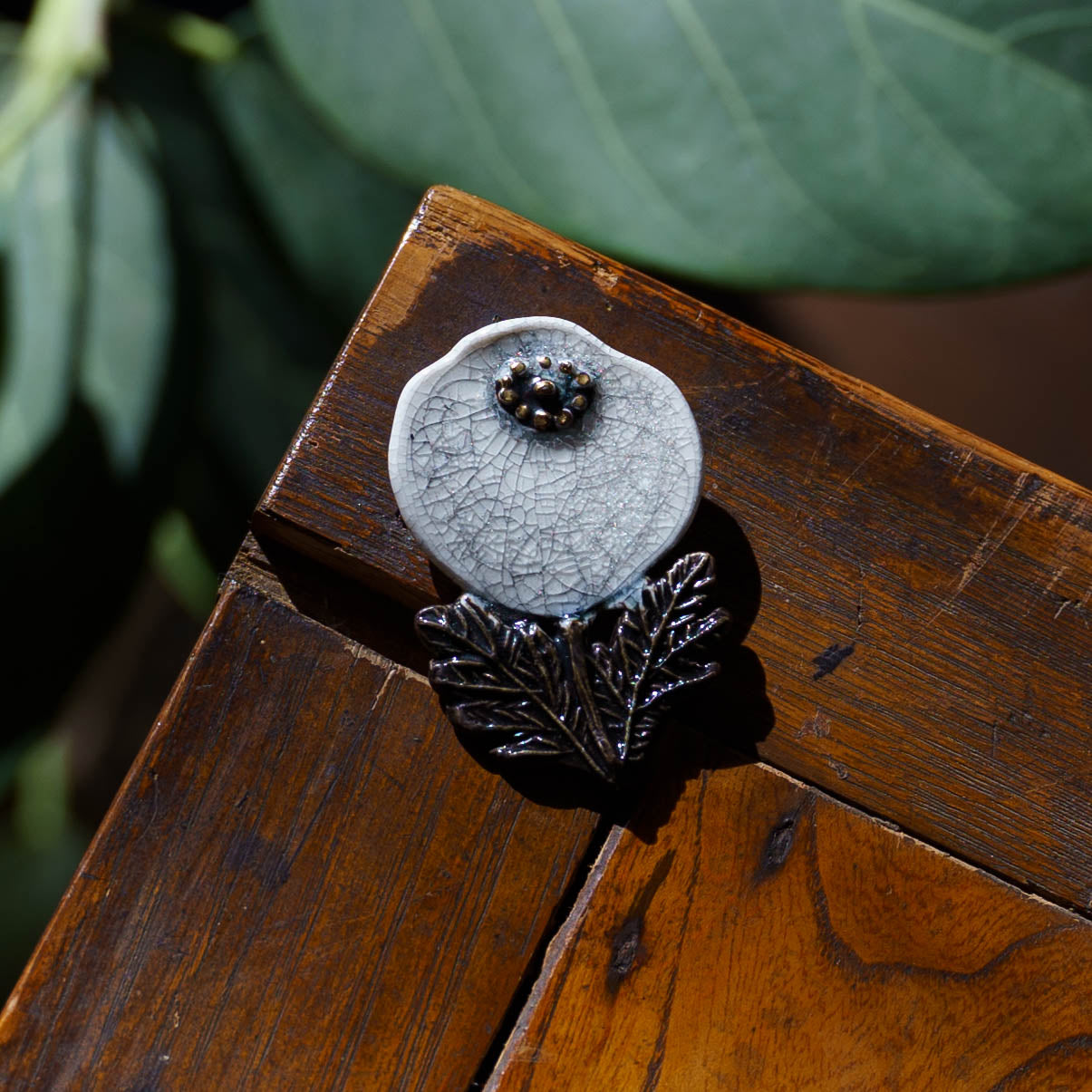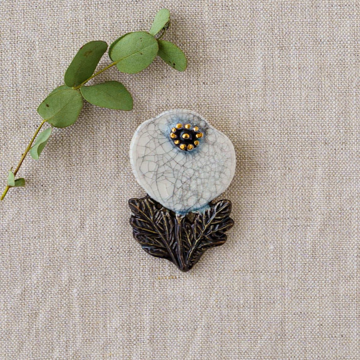 クラシカルな雰囲気と上品な可愛らしさを併せ持った素敵な陶製のブローチ。胸元をかわいく華やかに演出してくれます。ブローチ金具は真鍮に金メッキとなります。