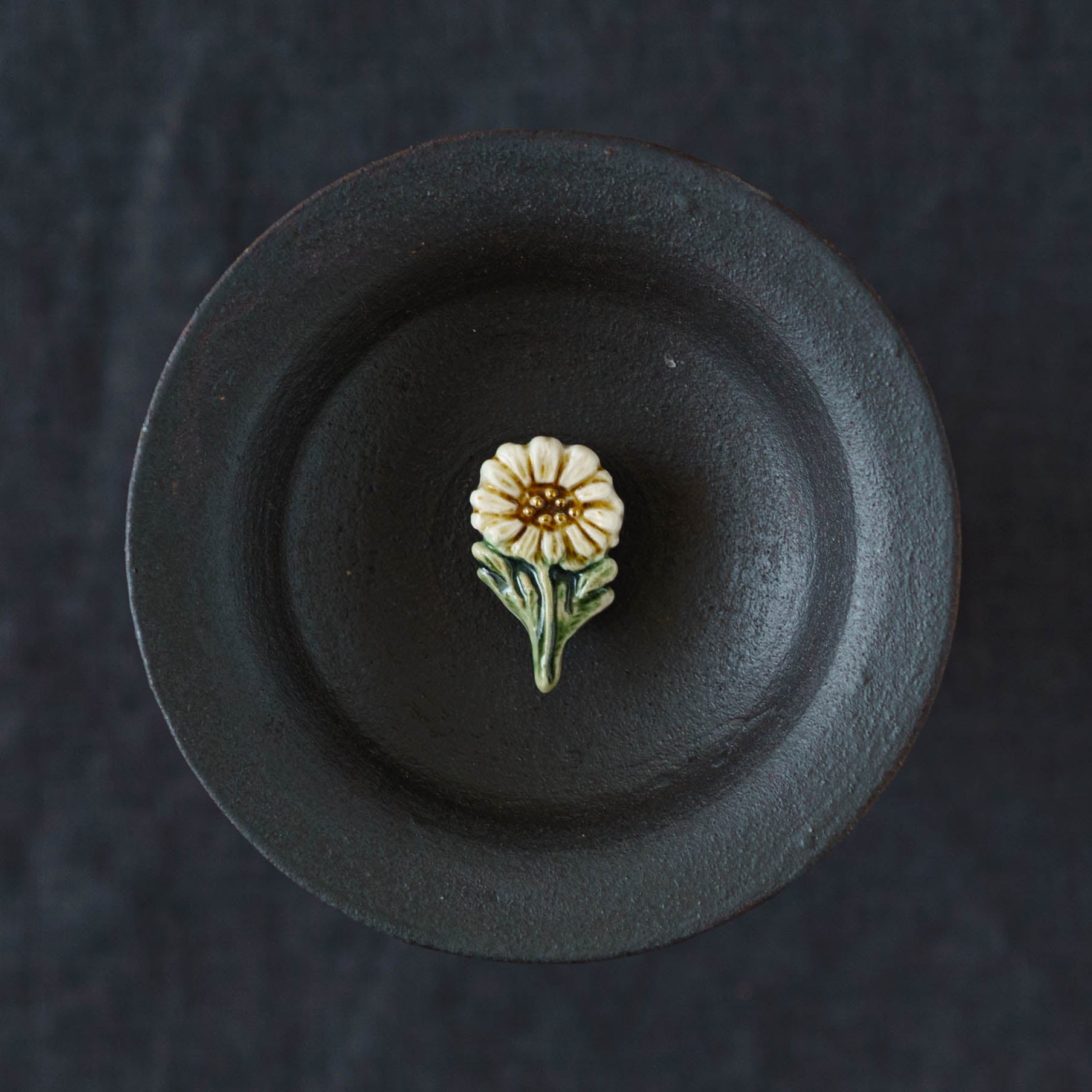 クラシカルな雰囲気と上品な可愛らしさを併せ持った素敵な陶製のブローチ。胸元をかわいく華やかに演出してくれます。ブローチ金具は真鍮に金メッキとなります。