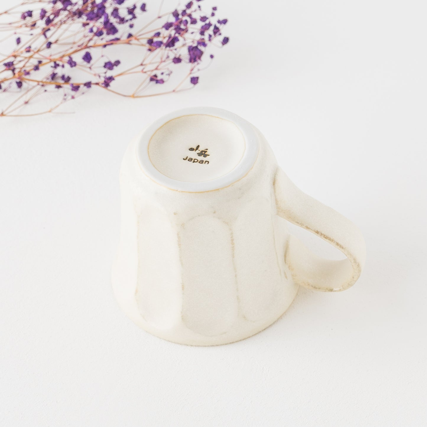 手づくりのぬくもりが感じられる白練のマグカップ。磁器なのに陶器のような土ものを感じさせる仕上がりになっています。白いカップは季節やシーン選ばず使えて、どんなうつわとも相性が良く、お料理をより一層おいしく見せてくれます。