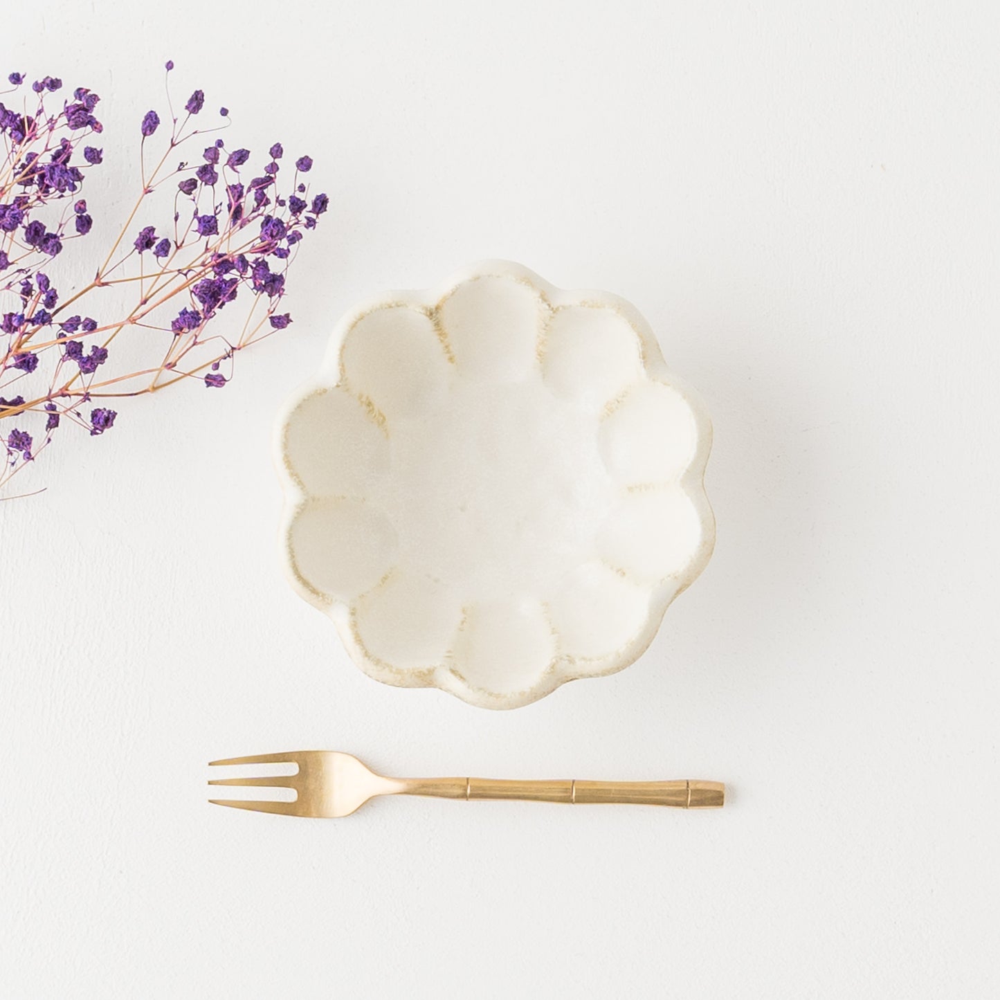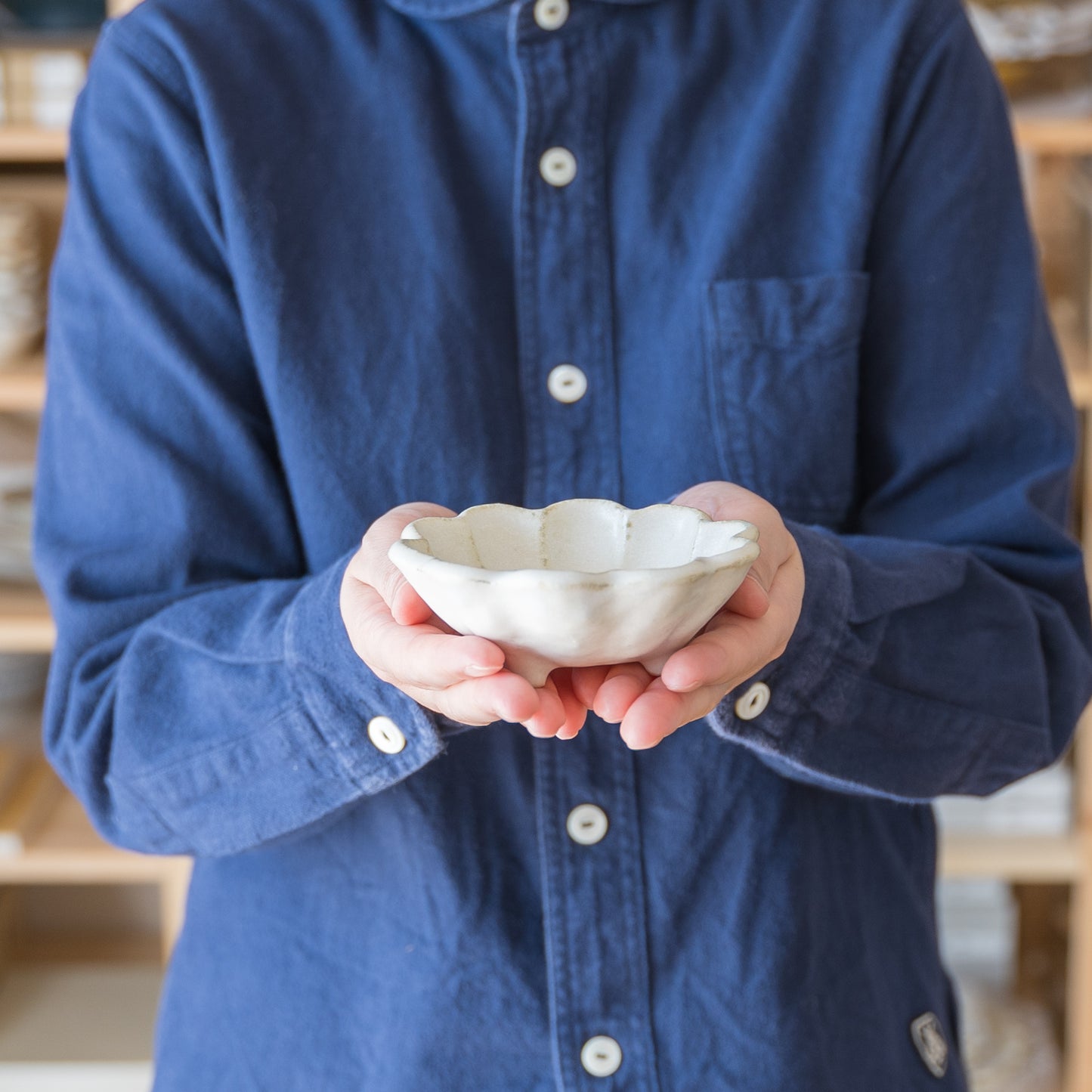 お料理を引き立ててくれる華やかで愛らしい輪花の小鉢。和にも洋にも合わせやすく、料理が映えるうつわです。