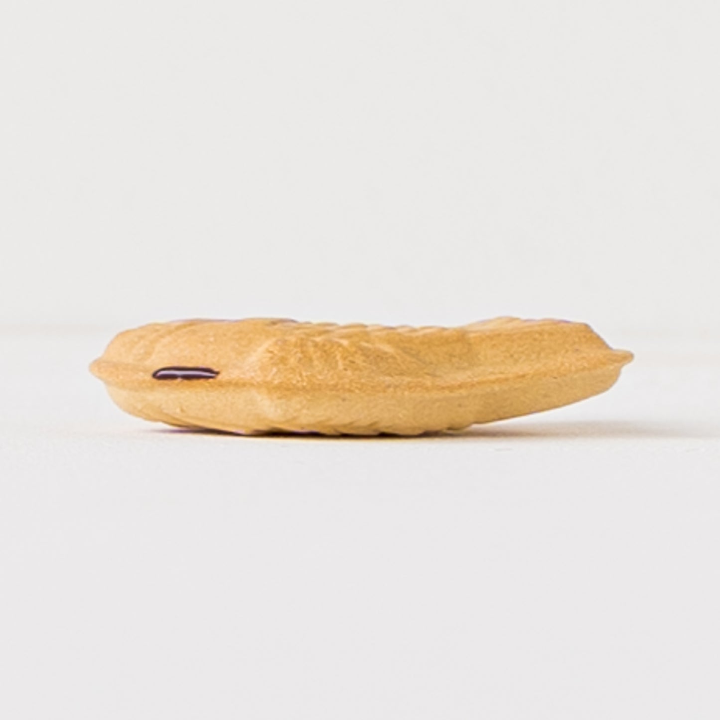 あんこのはみ出し具合も愛らしいたい焼きくん。縁の生地もしっかりとかたどられているのがすばらしい。土の配合でたい焼き生地を表現しているのも絶妙です。