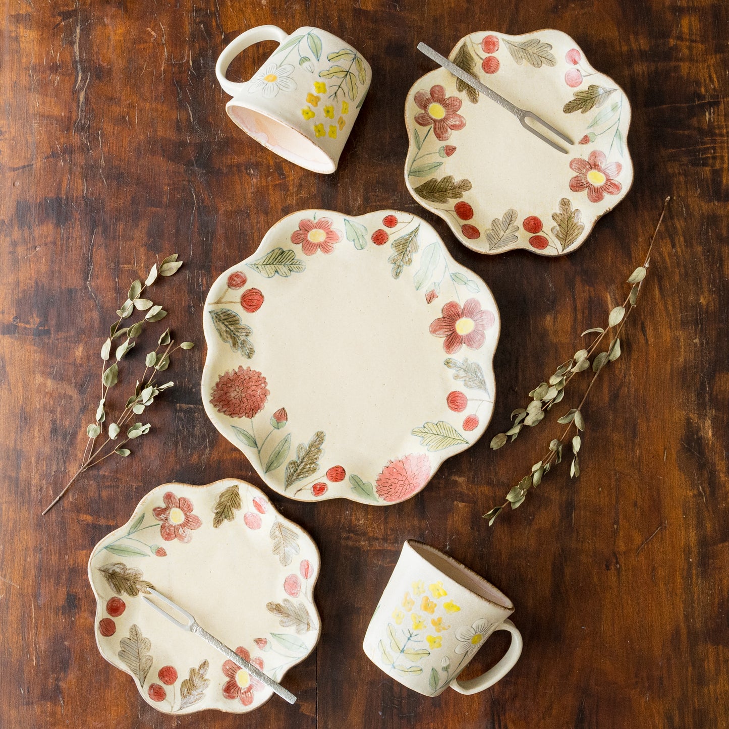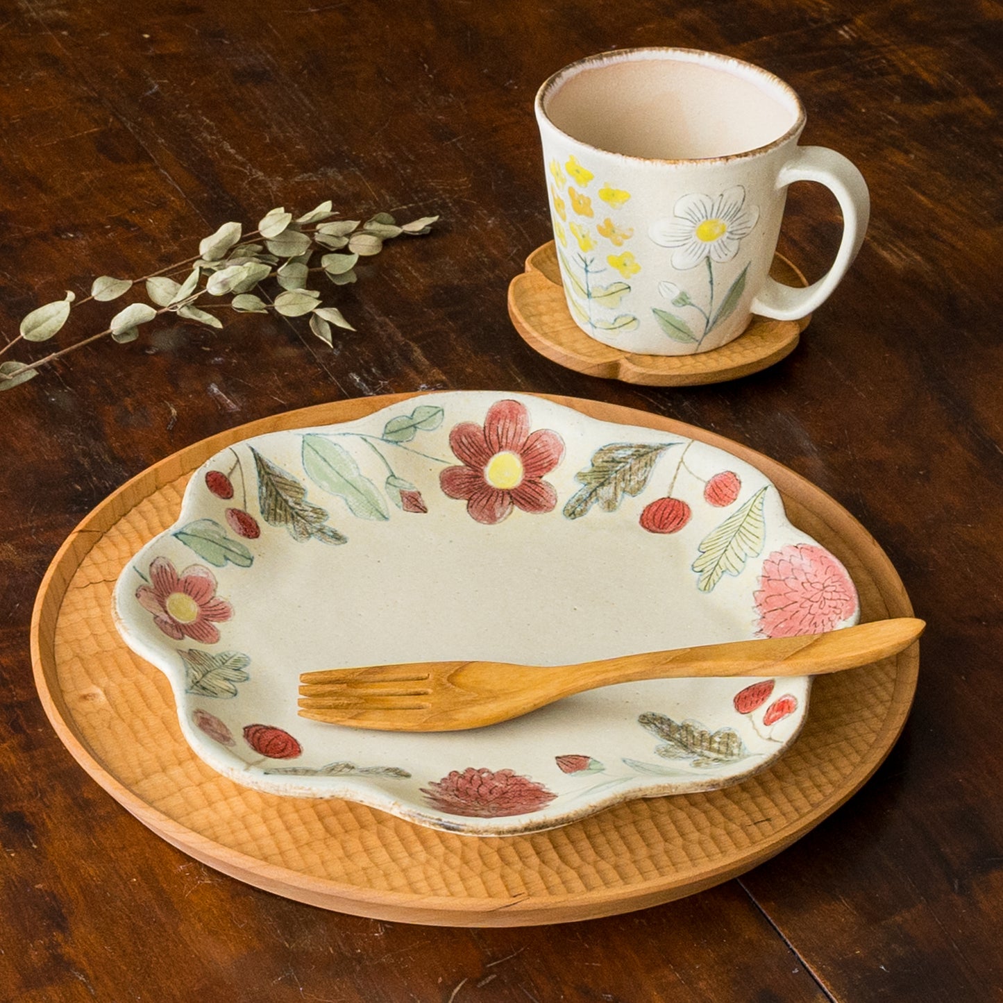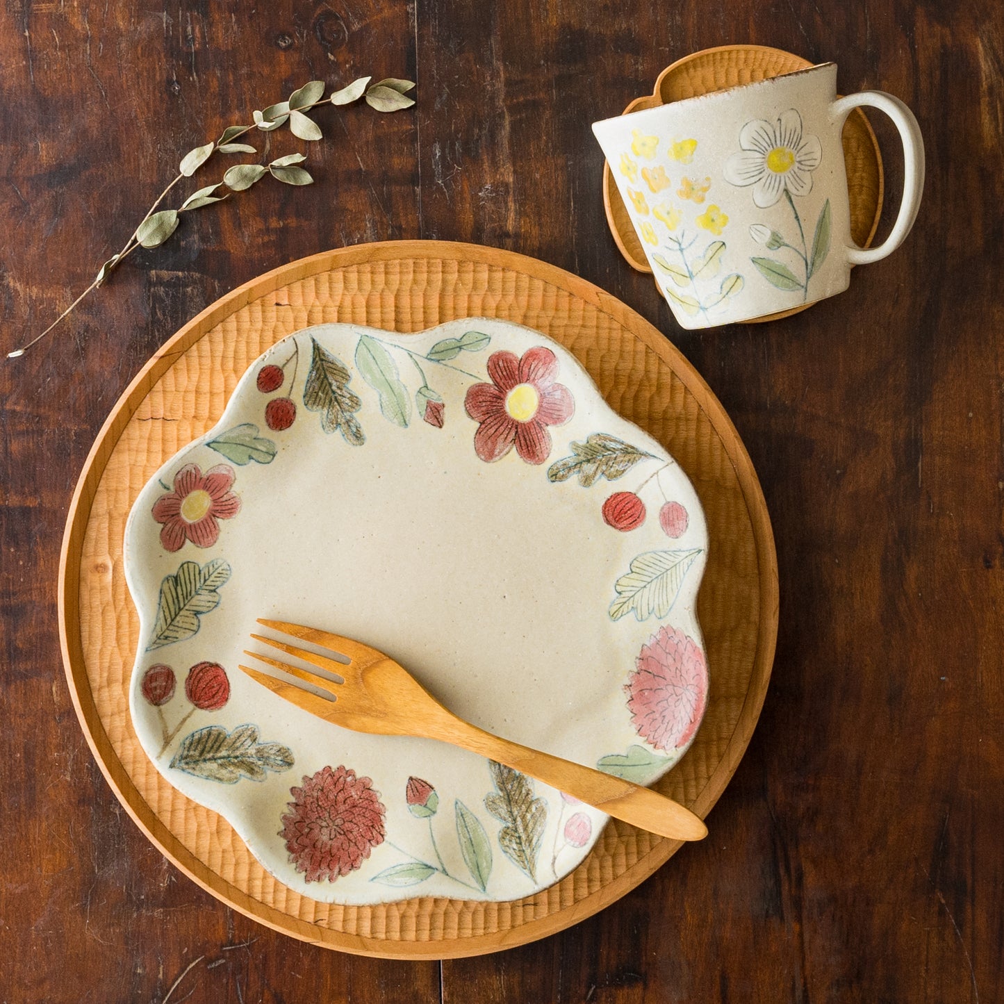 ふんわり優しいお花模様のうつわが食卓に置いてあるだけで、ぱっと明るく彩ってくれます。盛り付けたお料理をより華やかに引き立ててくれるのでテーブルコーディネートがより楽しくなります。