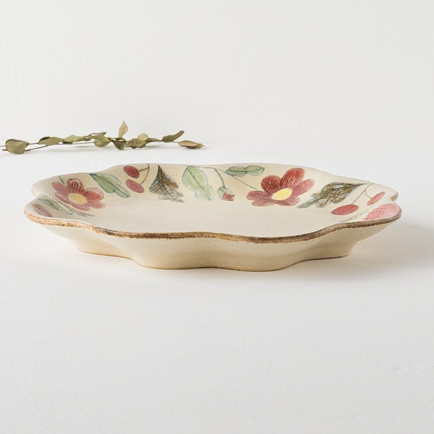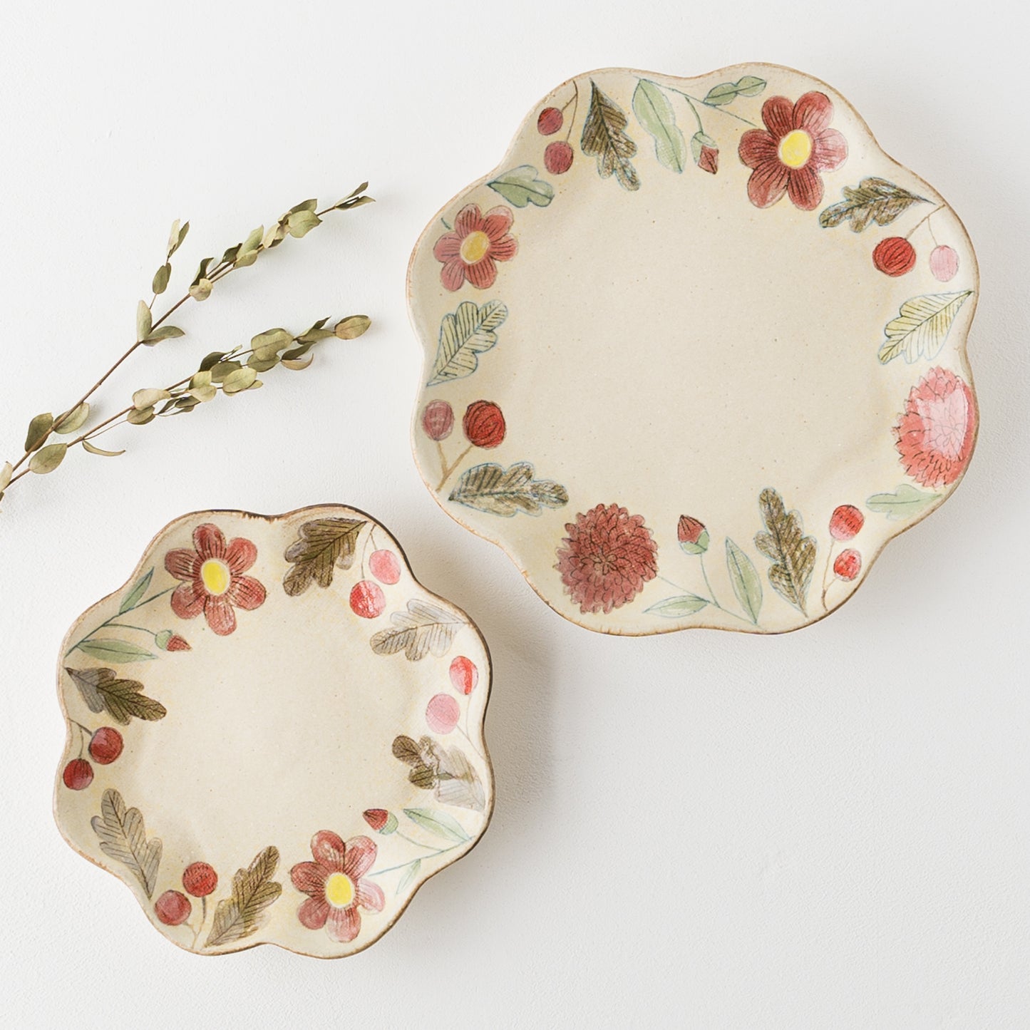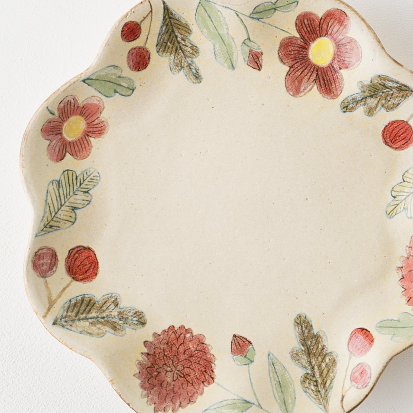ふんわり優しいお花模様のうつわが食卓に置いてあるだけで、ぱっと明るく彩ってくれます。盛り付けたお料理をより華やかに引き立ててくれるのでテーブルコーディネートがより楽しくなります。