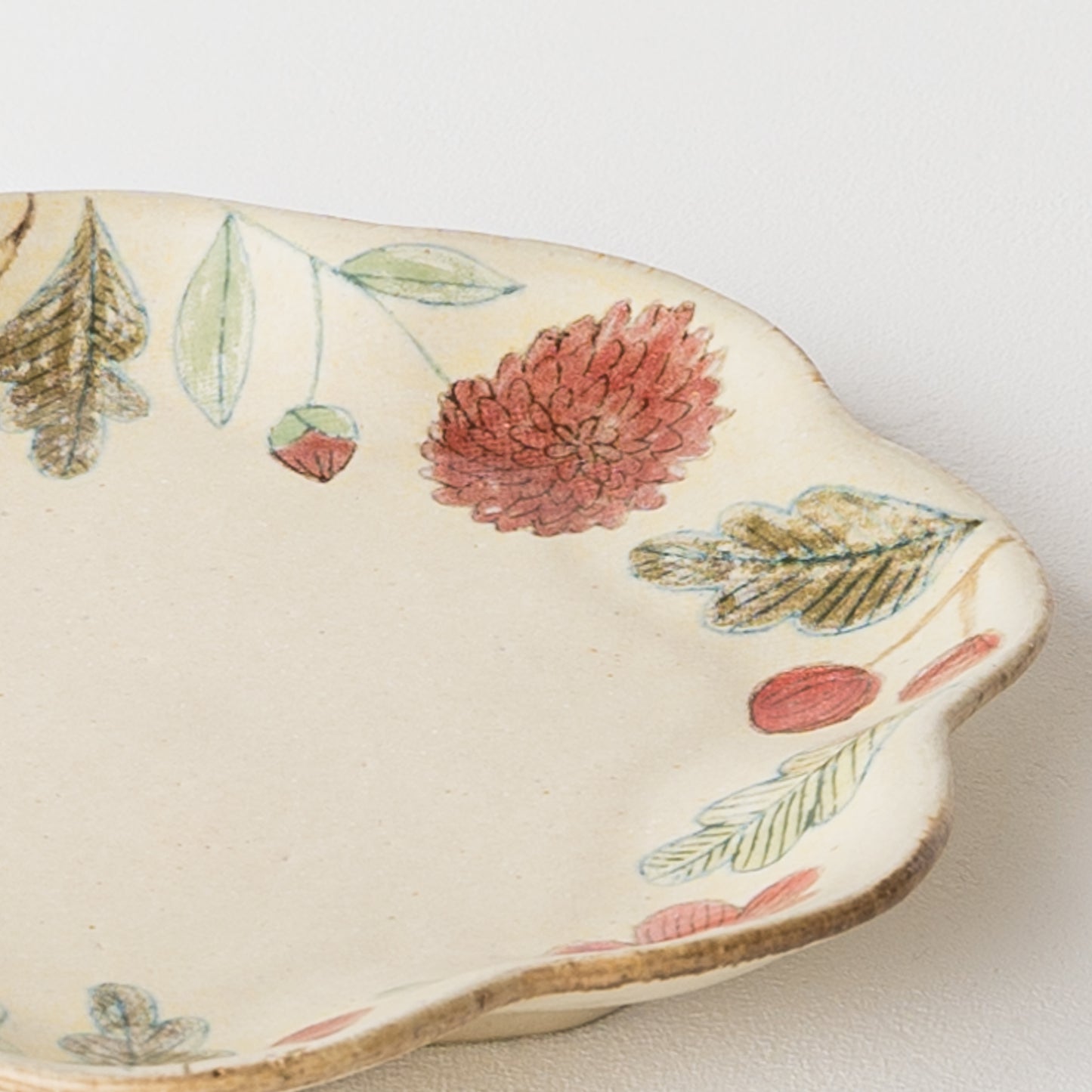 お散歩している時に目にする草花や生き物などをモチーフに絵付けをされています。毎日必ず手にするうつわ。使っていて楽しくなるうつわづくりをいつも心がけていらっしゃるその言葉のとおり、温かくて楽しい気持ちにしてくれます。